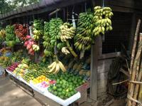 Nach dem Auschecken begeben wir uns auf die Fahrt hinaus aus Colombo. Weit kommen wir nicht, denn wir bleiben in einem dicken Stau hängen. Es dauert jedoch nicht lange und unsere Fahrer-Crew beschließt, zu wenden und einen anderen Weg zu wählen. Auf der Fahrt zeigt Anande sein umfangreiches Wissen und berichtet und ausführlich über das Leben in Sri Lanka. An einem Ananas-Stand legen wir einen kurzen Stopp ein. Der Verkäufer freut sich über den plötzlichen Umsatz und zaubert uns aus den ihn umgebenen Ananas-Bergen eine kleine Verkostung für uns. Zum Mittagessen halten wir in Kurunegala. Das Restaurant befindet sich an einem See. Wir sitzen am Ufer zwischen Palmen und genießen die Aussicht auf den Elefantenfelsen mit dem darauf sitzenden Buddha sowie die köstlichen frisch gepressten Säfte. Am Nachmittag gelangen wir nach Dambulla, wo wir zunächst an einem modernen Tempel mit einer großen goldenen Buddha-Statue halten und dann die berühmten Felshöhlen besuchen. 241 Stufen müssen bewältigt werden, bevor wir unsere Schuhe abgeben und die Höhlen besichtigen können. Neugierig beobachten einheimische Makaken unsere Treiben. Wieder beeindruckt Anande mit seinem umfassenden Wissen. Lange vor unserer Zeitrechnung lebten hier bereits Mönche, die 102 v.Chr. ihren König vor den Feinden versteckten. Nachdem der seine Gebiet zurück erobert hatte, zeigte er sich den Mönchen gegenüber dankbar und verwandelte ihre Höhlen in prachtvolle Tempel und sorgte dafür, dass diese zu Wallfahrtsstätten wurden. Wir bewundern die noch heute prachtvollen Malereien und die vielen Buddha-Statuen. Bevor wir uns auf den Rückweg begeben, genießen wir den herrlichen Ausblick auf die uns zu Füßen liegende grüne Ebene. Für den Abstieg wählen wir unterschiedliche Wege, die Einen steigen die Stufen hinab und Andere den etwas abseits gelegenen schmalen Pfad ohne Stufen. Wir übernachten im Hotel Chaaya Village, dessen Buffet noch um einiges prächtiger ist als das im „Mount Lavinia".