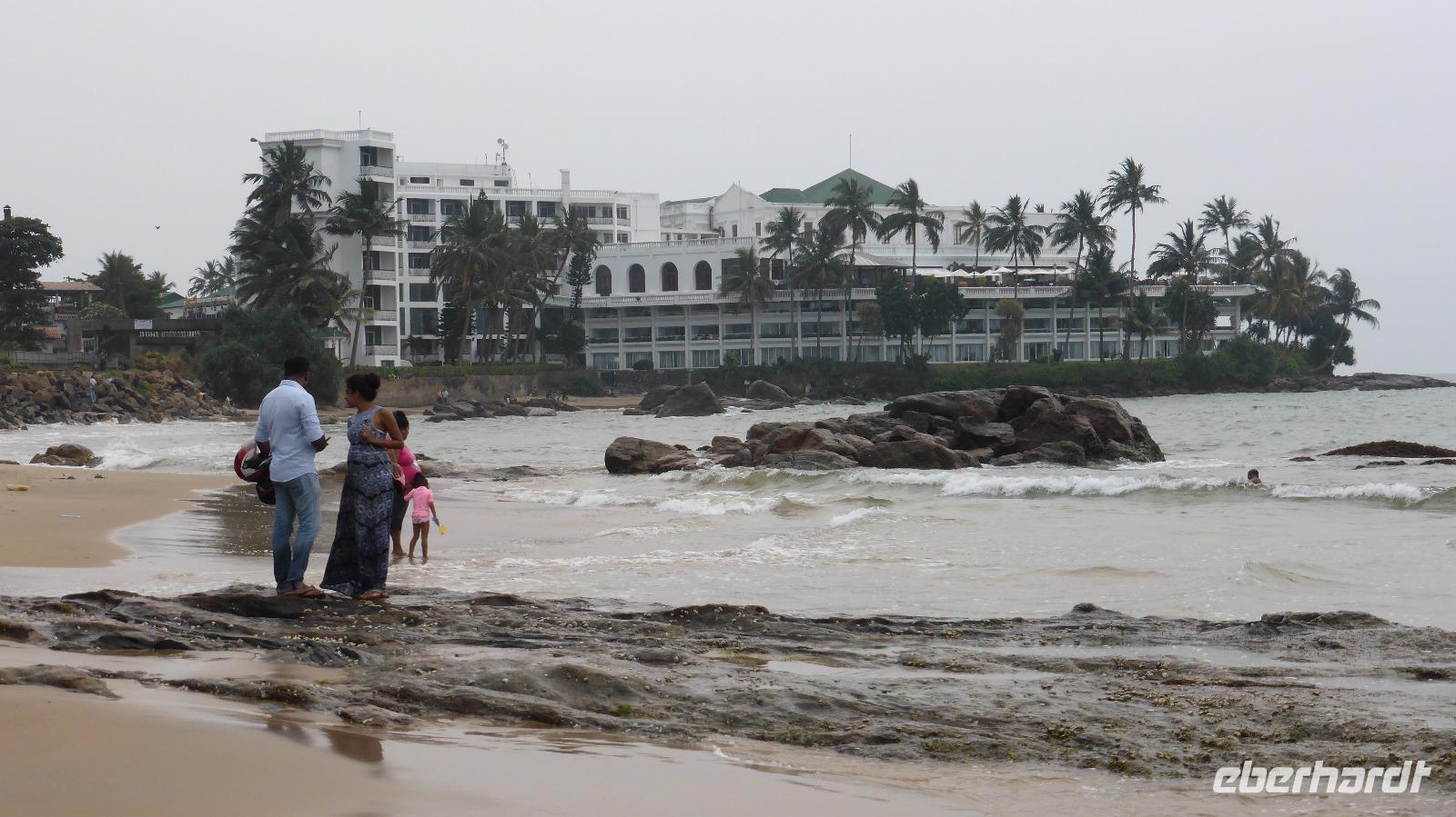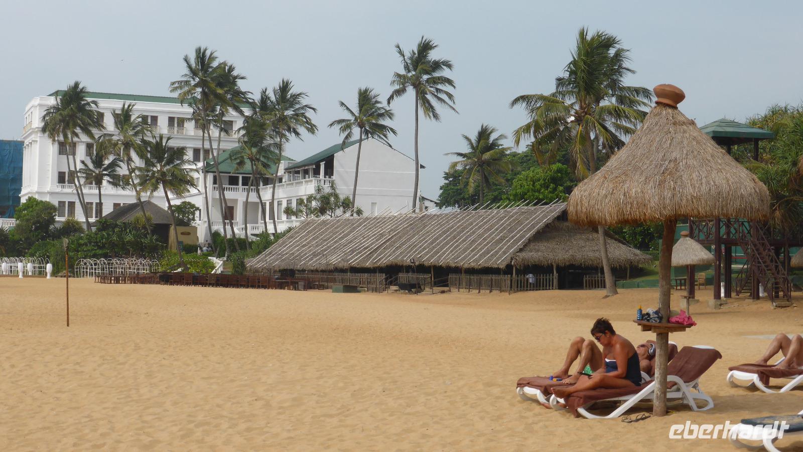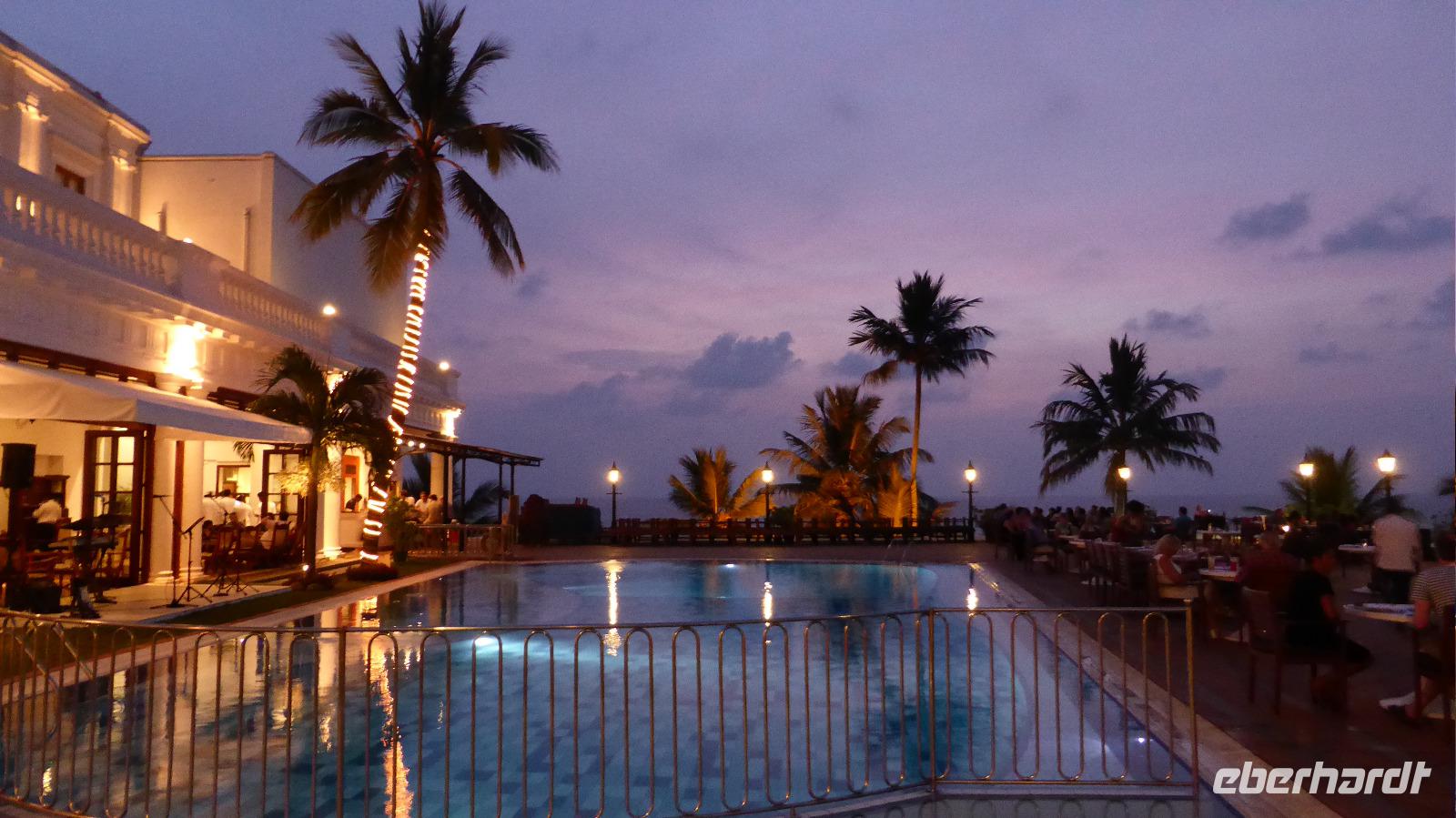 Wir steigen im legendären Mount Lavinia Hotel ab. Vor etwa 200 Jahren von den Engländern im typischen Kolonialstil errichtet, strahlt es noch etwas von den alten Zeiten aus. Sicher tragen die weißen Kolonialuniformen des Personals zu diesem Flair bei. Andererseits bietet unser Hotel alle Annehmlichkeiten unserer Zeit vom Internet bis zum Spa. Für den Rest des Tages können wir uns hier gut erholen, vom nächtlichen Flug ausruhen, im Meer baden, Strandspaziergänge unternehmen u. a. m.