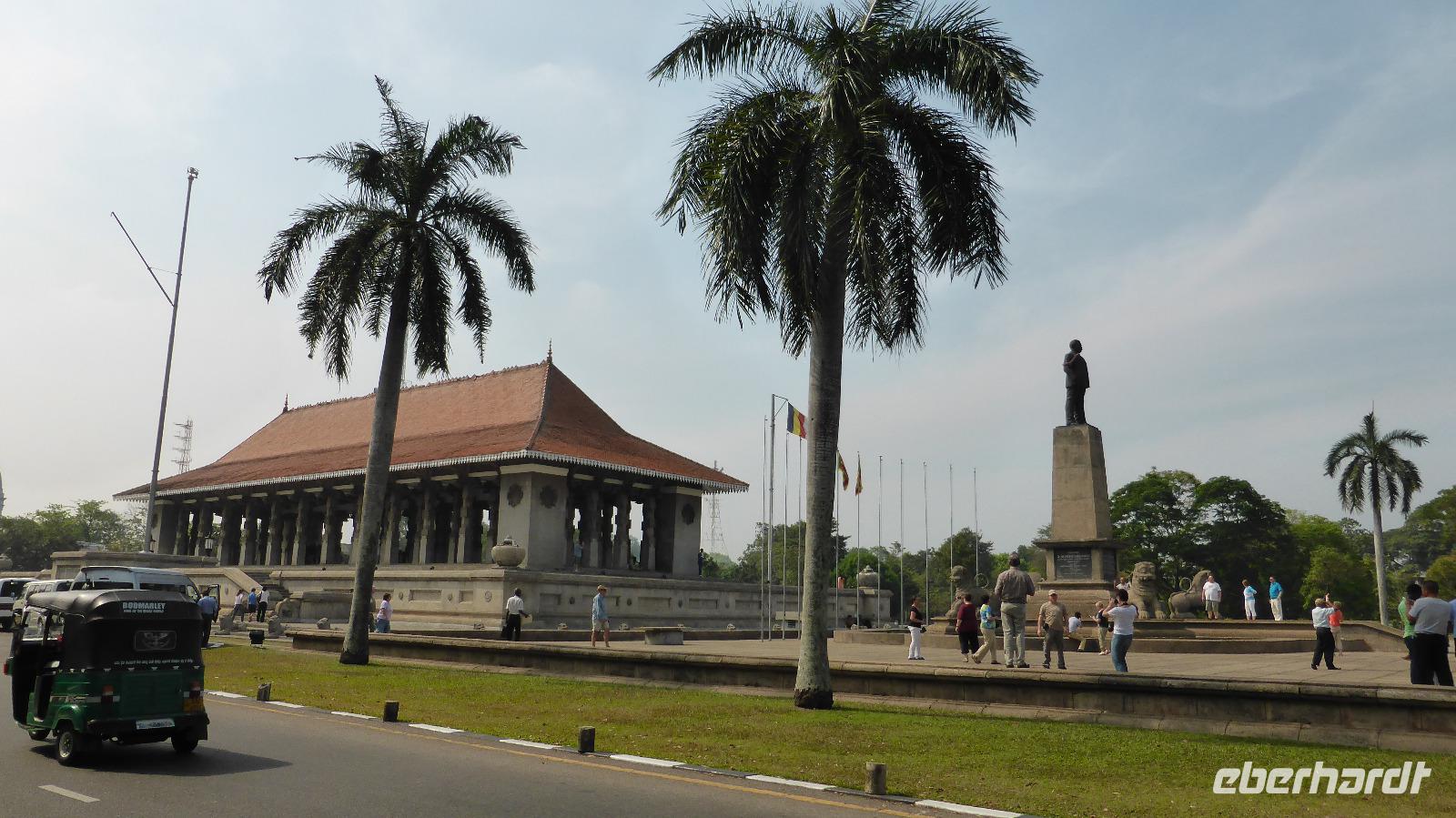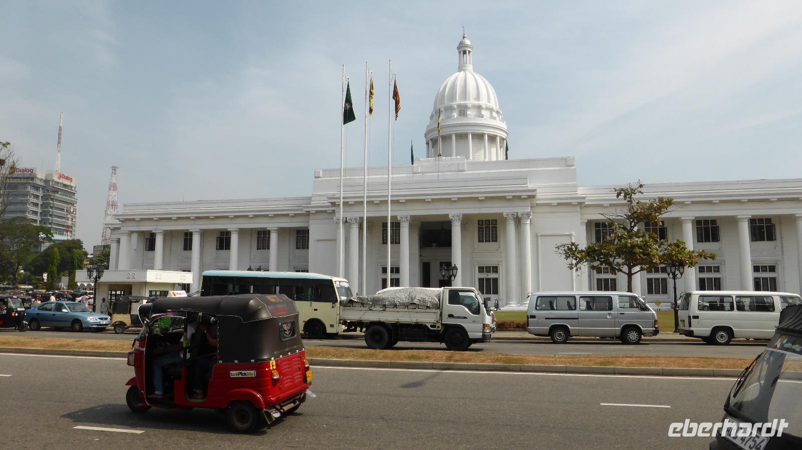 • die große Konferenzhalle (Bandaraneike Memorial Conference Hall), gegenüber steht eine riesige Buddhastatue in segnender Haltung, daneben befindet sich die chinesische Botschaft;