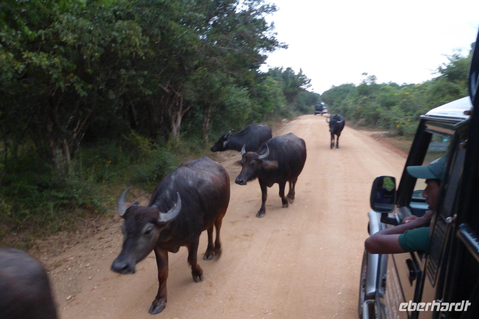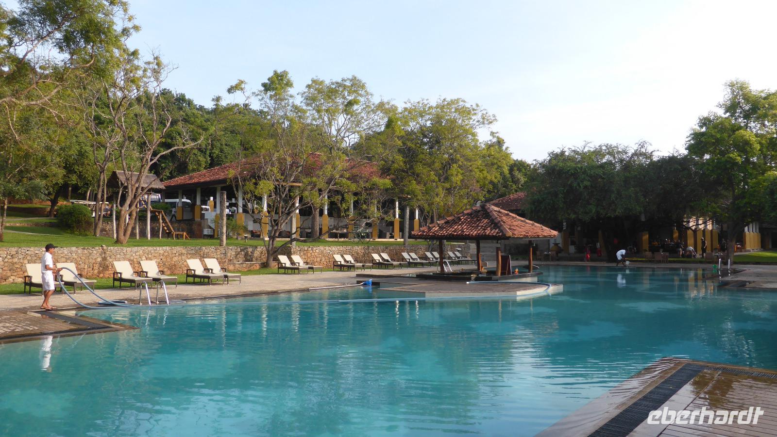 Am Abend erreichen wir unser Hotel am Rande des Yala Nationalparks. Da die Tiere keine Nationalparkgrenzen kennen und die weitläufige Hotelanlage nicht eingezäunt ist, dürfen wir uns zwischen Bungalows und Hauptgebäude nur in Begleitung von Personal bewegen. Es heißt, dass manchmal auch Elefanten durch die Anlage kämen.