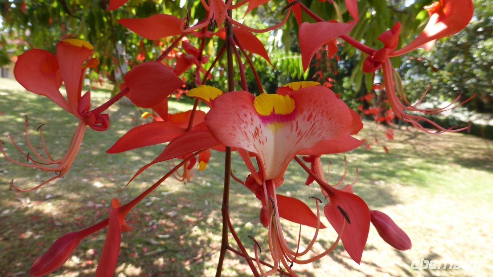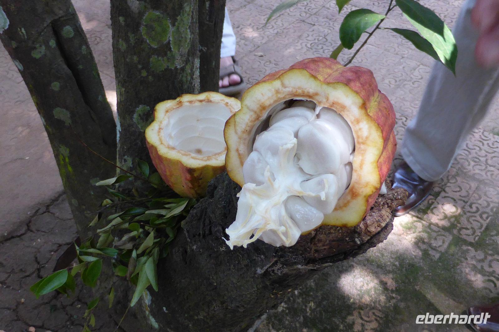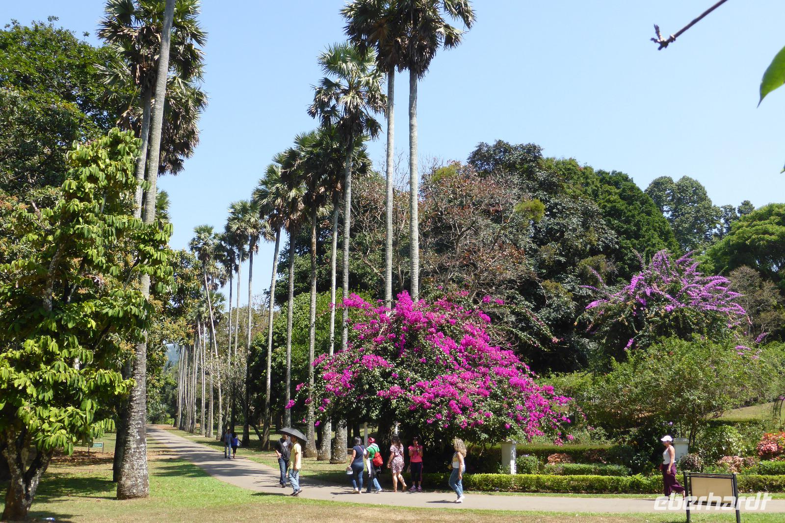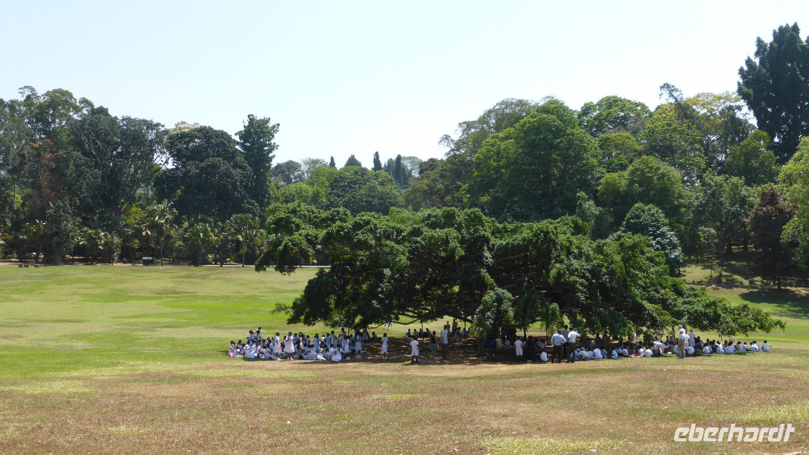 Aus dem geplanten Mittagessen im Botanischen Garten von Kandy wird mangels Sitzplätzen im Restaurant ein Mittagsspaziergang. Wir lernen exotische Pflanzen kennen, wie zum Beispiel den rot blühenden Pride of Burma oder den Pink Shower, 1967 vom Bundeskanzler Kiesinger gepflanzt. Und im orchideenhaus gibt es ein seltenes Exemplar - eine Orchidee deren Blüten nach Schokolade duften.