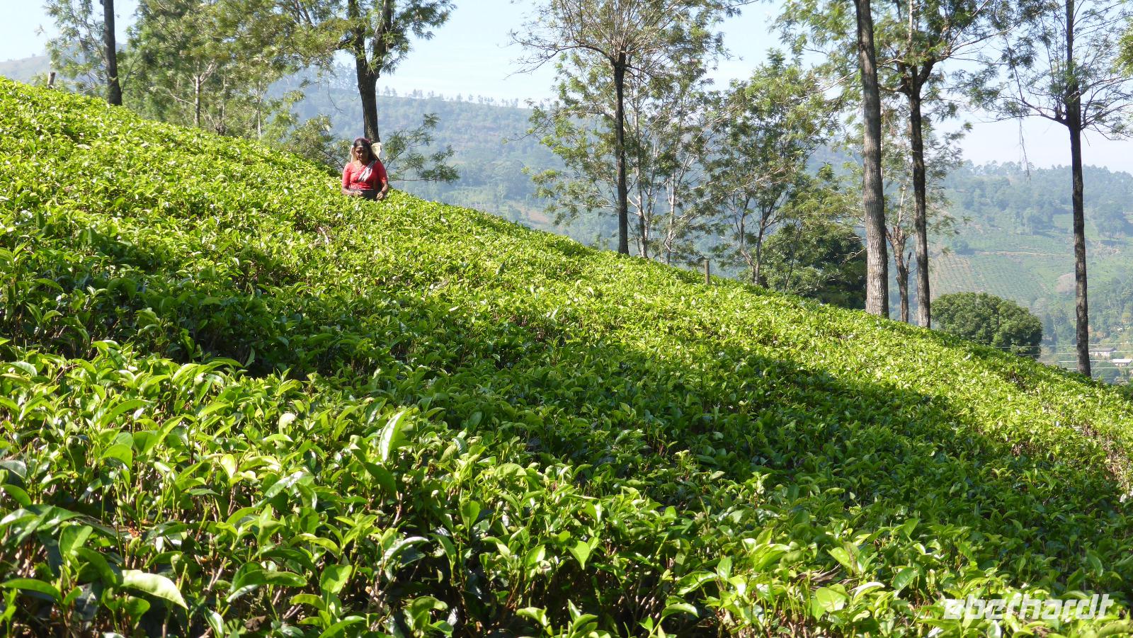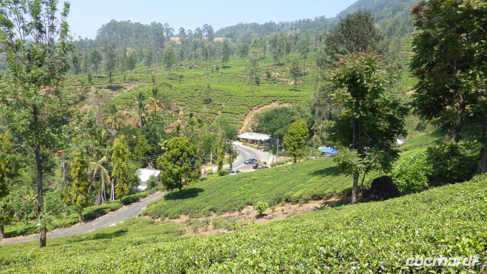 Heute wird der Tee im Mittelpunkt unserer Reise stehen. Schon bald nach Kandy tauchen die ersten Plantagen im Hügelland auf. Daya erzählt, dass es etwa 20.000 Pflückerinnen gibt. Einige von ihnen sehen wir. Bei einem Stopp versuchen wir ein paar Fotos von ihnen einzufangen. So 30 bis 40 Kilogramm sammelt eine Frau am Tag. Daraus werden dann etwa 6 bis 8 Kilogramm Tee. Wie aus den Blättern der Tee entsteht, zeigt uns Daya in der Glenloch Teefabrik. Neben den dem klassischen schwarzen Tee in verschiedenen Qualitäten werden hier auch grüner, weißer und Früchtetee hergestellt. Nach einer Kostprobe des schwarzen Tees nehmen wir noch ein paar Packungen für zu Hause mit.