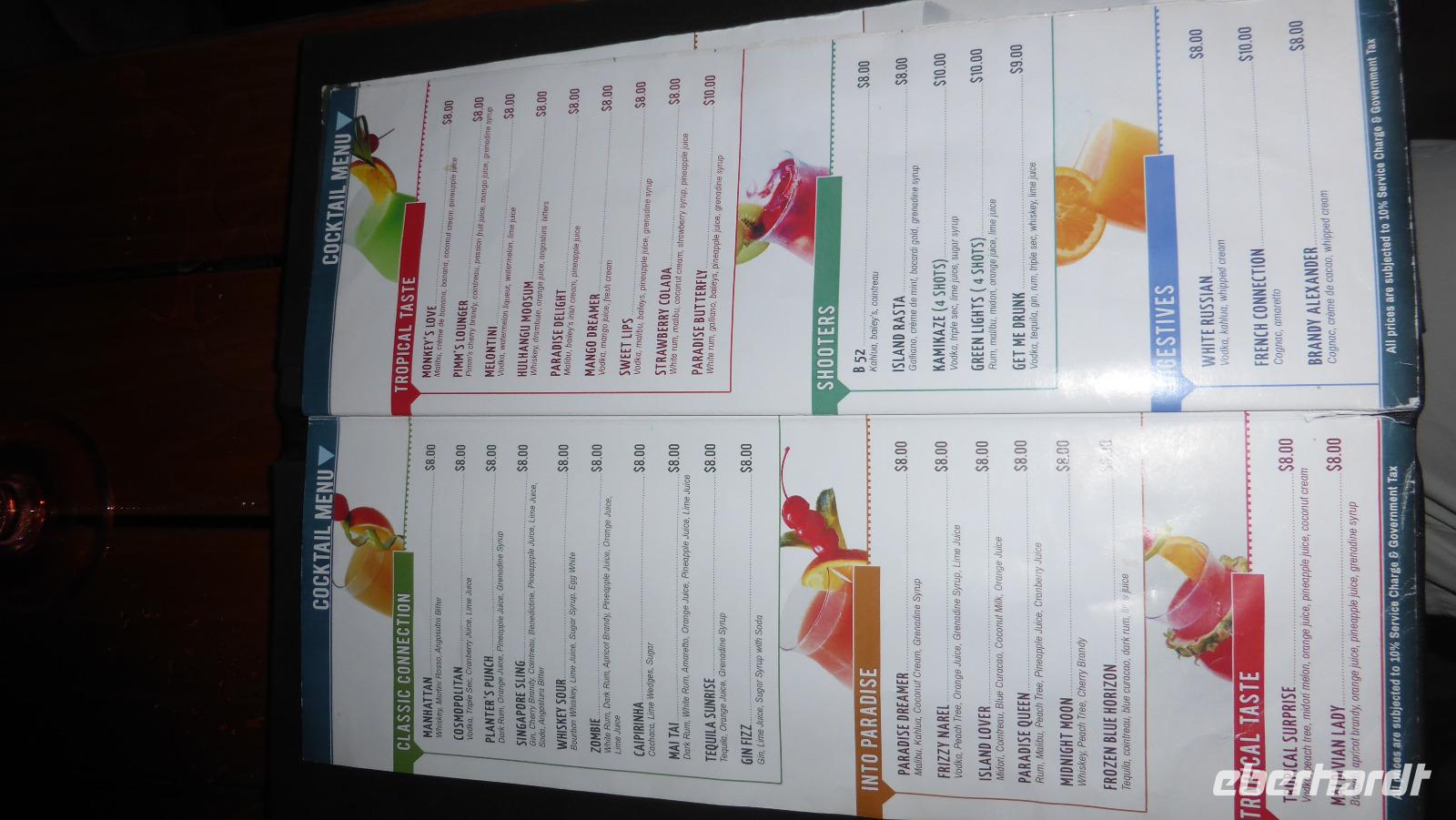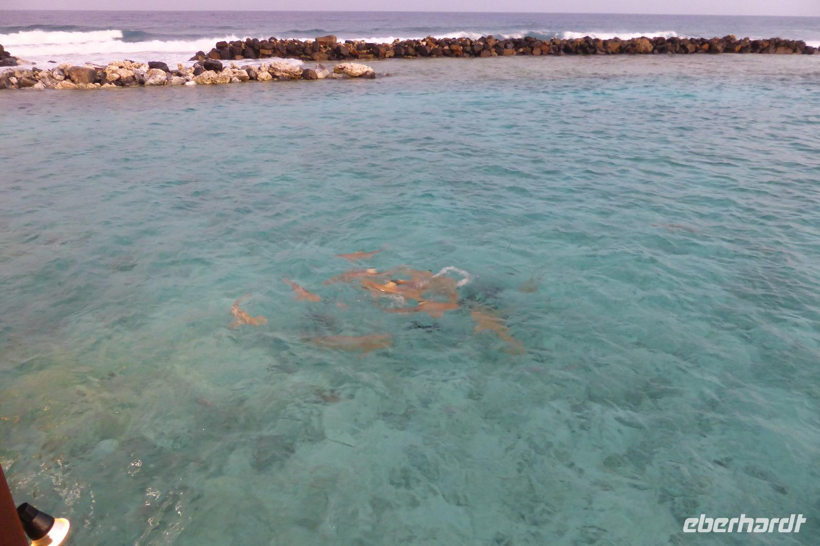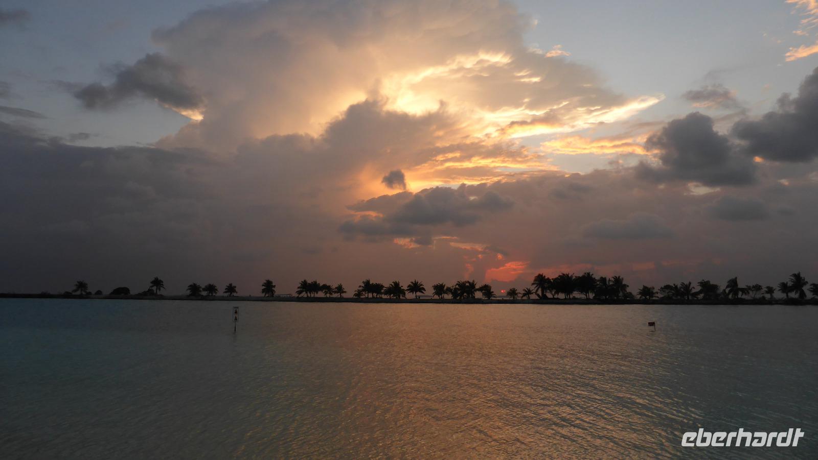 Den Nachmittag nutzen wir für ein erstes Bad in „unserer" Lagune. Zum Abendessen belegen wir unseren Stammtisch mit Stammkellner Ahmed im Hauptrestaurant. Beim anschließenden Barbesuch lassen wir uns von den Preisen die Laune nicht verderben. Standardpreis für einen Cocktail 8 Dollar plus Steuern und Service Charge sind das dann rund 10 Dollar...man gönnt sich ja sonst nichts.
