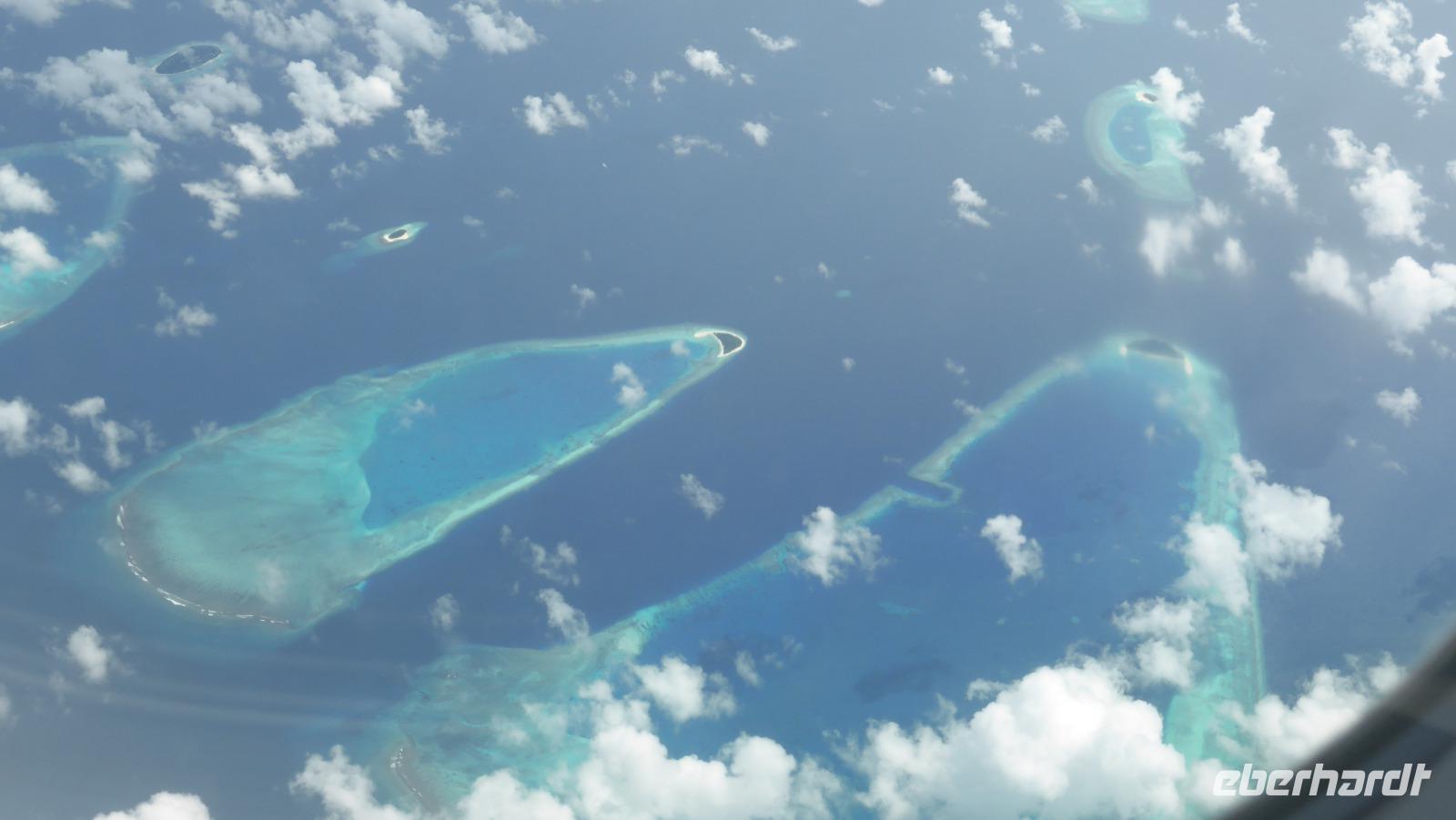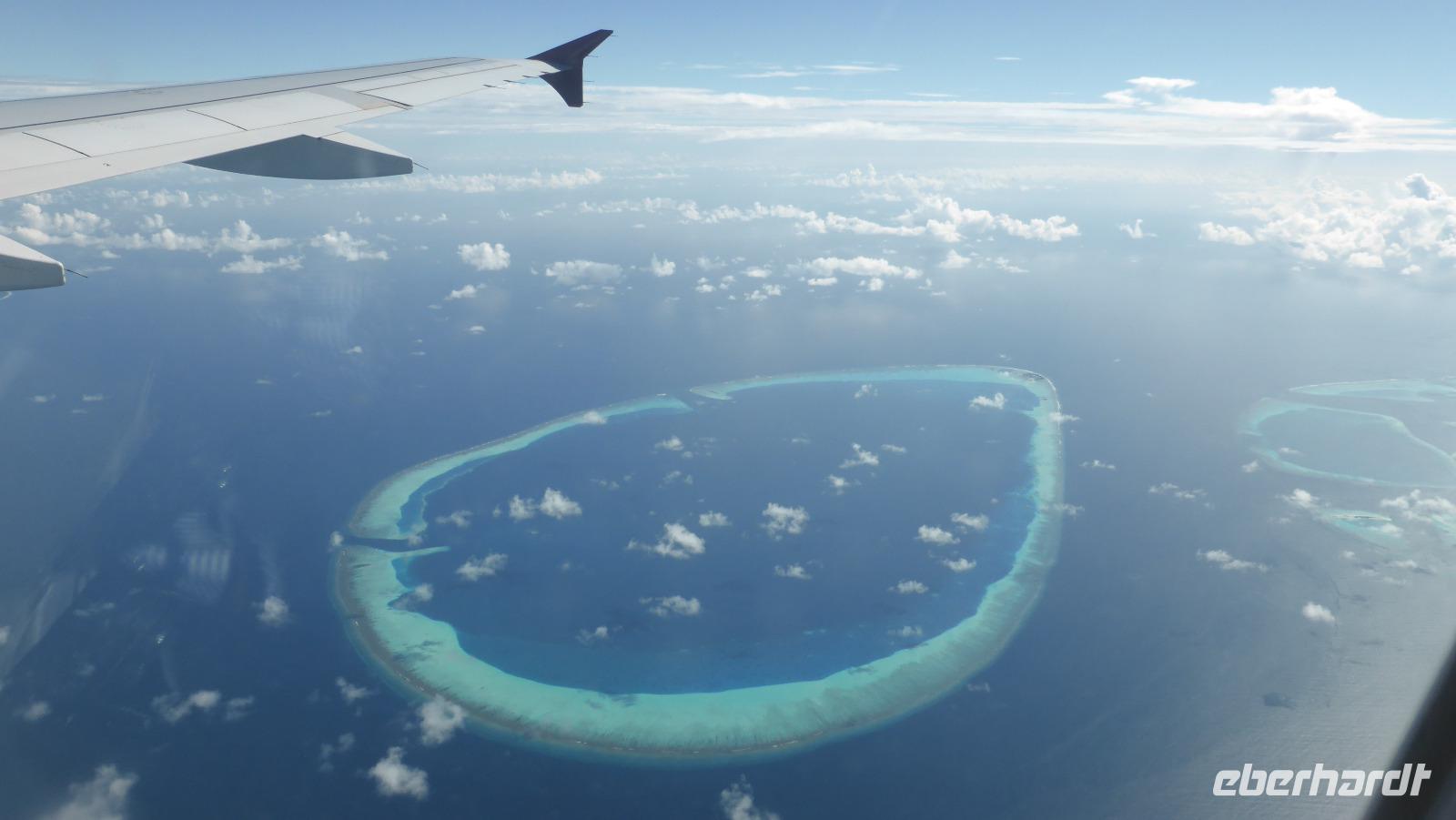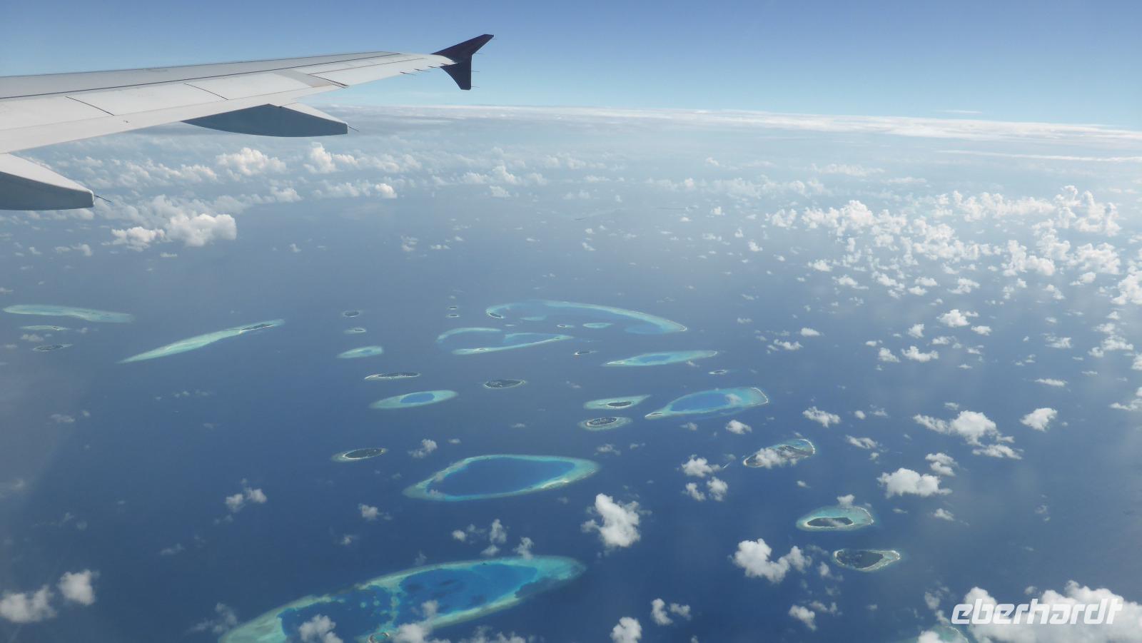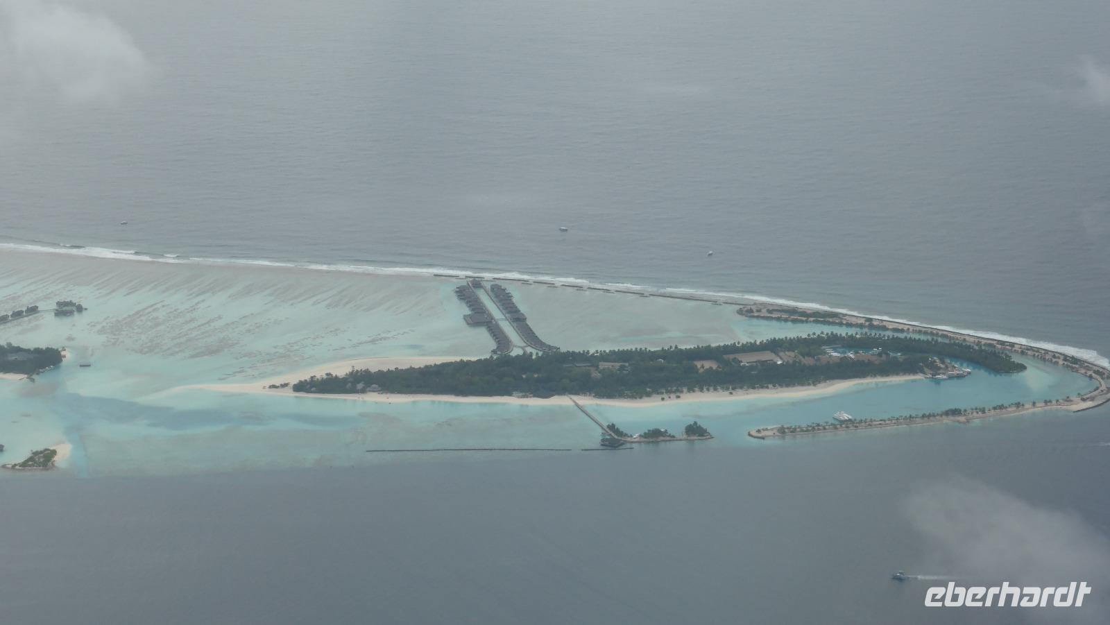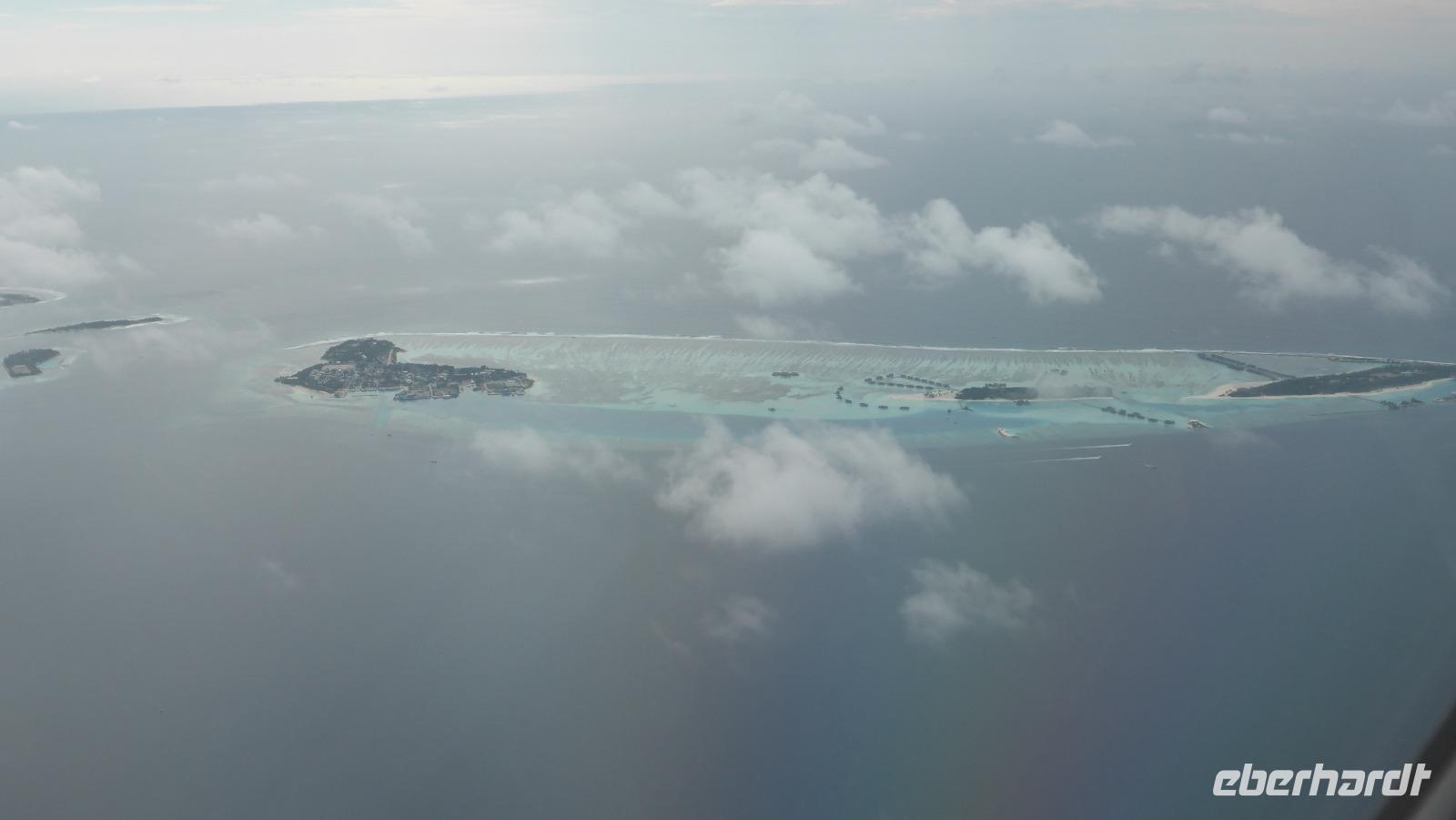 Wir verbringen fast fünf Tage auf dieser paradiesischen Insel, eine wunderschöne Zeit, die viel zu schnell vergeht. Am Sonntag müssen wir uns dann verabschieden, fliegen mit Qatar Airways am Morgen Richtung Doha. Wer auf der rechten Seite sitzt, kann beim Start noch einen letzten Blick auf unsere Insel Lankanfinolhu werfen...