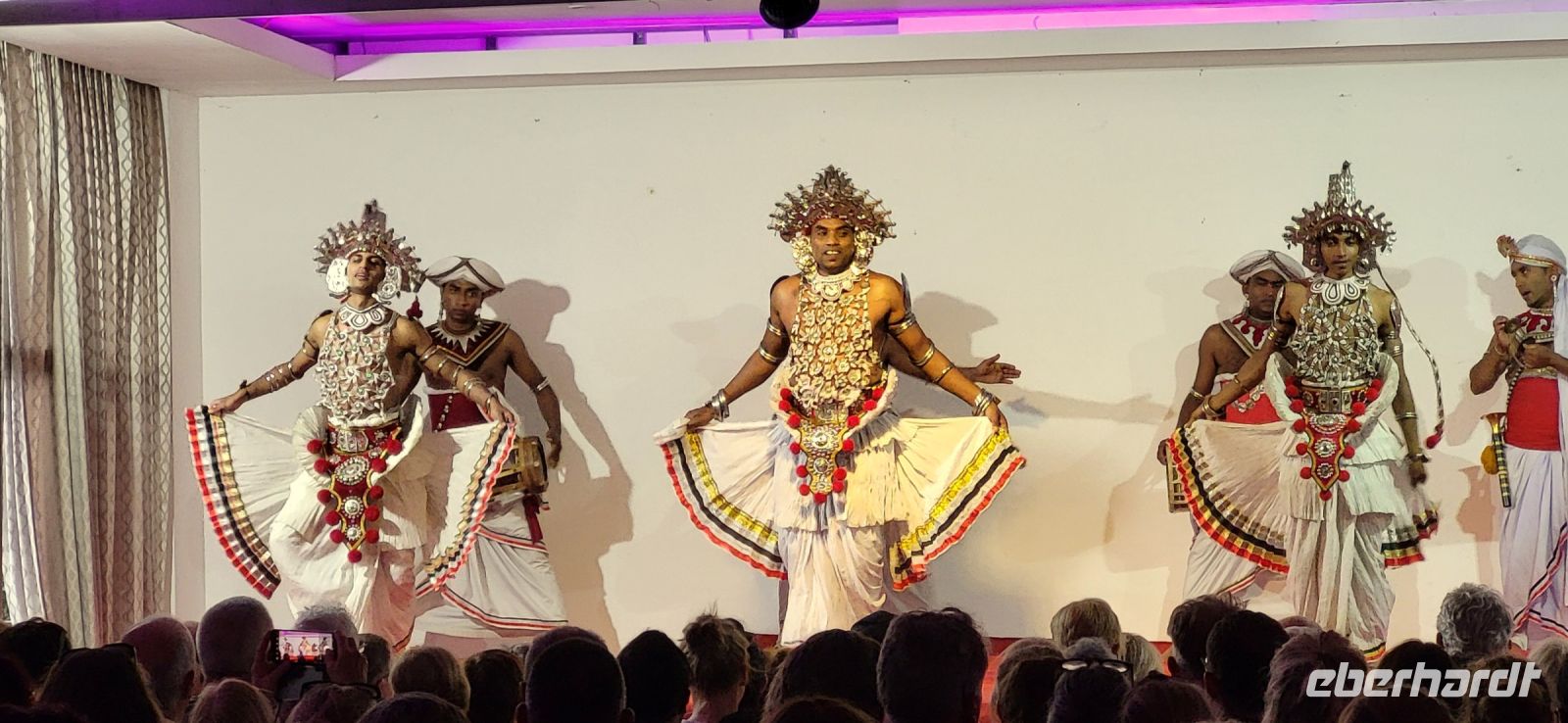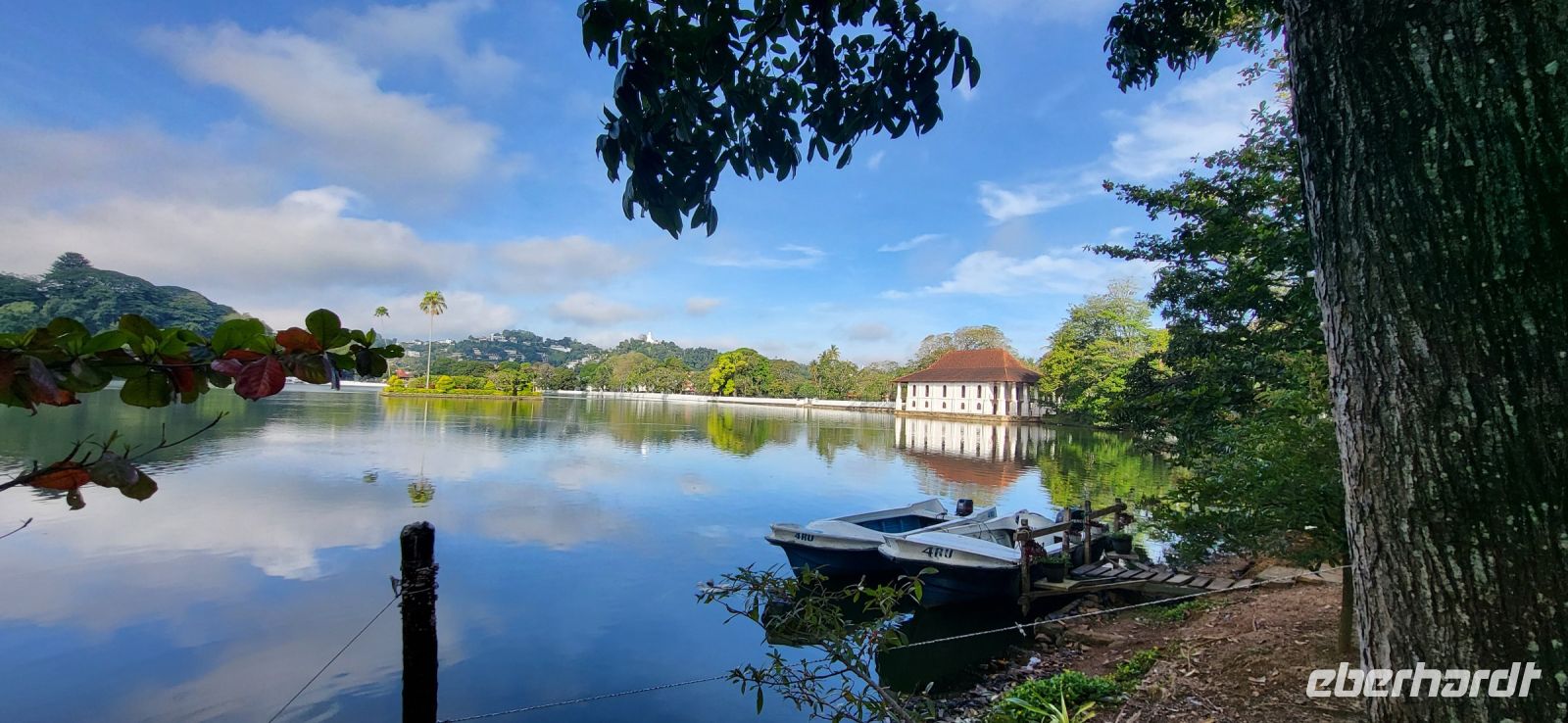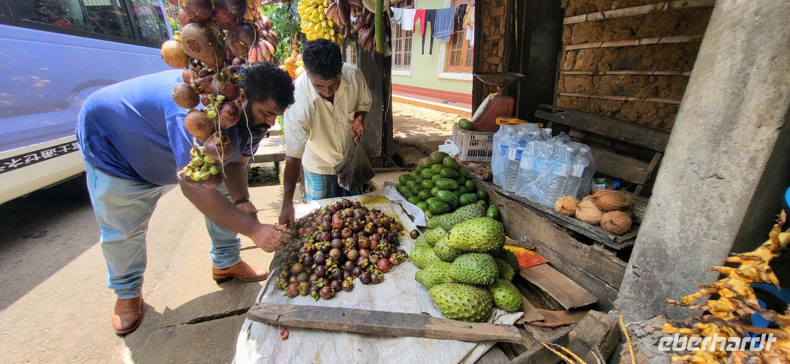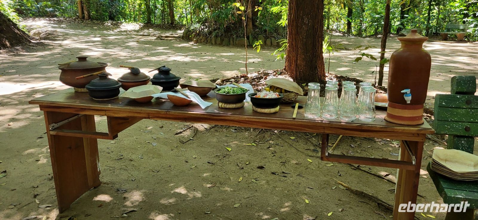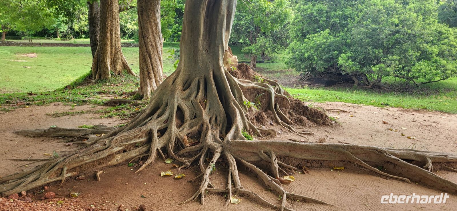 Nach einem herrlichen Frühstück starten wir zu einem Aussichtspunkt in Kandy, von wo aus wir eine tolle Übersicht und eine noch bessere Aussicht über die Stadt haben. Diese war einst von 1592 bis 1815 die Hauptstadt der Insel, bevor sie durch Colombo ersetzt wurde. Bei allerbesten Wetterverhältnissen steuern wir den nun 200 Jahre alten Botanischen Garten an und genießen die nächsten Stunden dieses wunderbare Stück Natur, bestaunen die vielen exotischen Pflanzen und Bäume, die hier aus der ganzen Welt zusammengetragen wurden. Neben Flora und Fauna hören und sehen wir auch, dass sich hier viele junge oder potenzielle Paare zum Kennenlernen treffen und je weniger man sich kennt, so näher man am Eingang sitzt und je vermeintlich besser man sich schon für gut befunden hat, umso weiter im Park hineinsitzt man auf den vielzähligen Parkbänken ringsherum. Und tatsächlich, wir sehen so einige junge Menschen ins Gespräch vertieft. In diesem wunderbaren Areal könnten wir uns noch Stunden aufhalten, jedoch werden wir heute zum Showkochen erwartet. Einige Fahrminuten später biegen wir von der Straße ab und befinden uns schlagartig mitten in der Natur. Hier werden wir von Köchin Sanda und einer Mitarbeiterin bereits erwartet, die uns zunächst mit einem Mangosaft einer noch unreifen Frucht begrüßen. Dieser schmeckt vorzüglich, erfrischend und ist auch für uns in dieser Form noch Neuland. Sanda demonstriert erst mal, was in keiner einheimischen Küche frisch fehlen darf, nämlich Kokosnuss. Schnell mit einer Sichel halbiert, werden die Hälften auf einer Art Hobel geraspelt, dann frisch verwendet oder mit Wasser ausgedrückt, damit frische Kokosmilch entsteht. Natürlich dürfen wir uns auch versuchen und stellen fest, so einfach wie es aussieht, ist es beim ersten Mal nicht. Sanda erklärt uns nun die verschiedenen Gerichte und bereitet für uns ein tolles Linsencurry auf offenem Feuer zu. Viele Zutaten werden hinzugefügt, die wir vor Ort bestaunen. Dazu fertigt sie noch einen Auberginen- sowie auch einen srilankanischen Gurkensalat. Das restliche Buffet haben die beiden Damen schon im Vorfeld für uns zubereitet, sodass wir bald auch alles kosten können. Heute nutzen wir dazu noch die Gelegenheit, das gewohnte Besteck gegen die eigenen Finger zu tauschen. Etwas ungewohnt, aber nach Erklärungen von Bonny und Sanda klappt es auch bei uns-ein völlig neues Essgefühl. Nach einem abschließenden Dessert verlassen wir diesen schönen Platz, wo wir in herrlicher Natur für uns gekocht und wir bestens gegessen haben. Es geht zurück nach Kandy Downtown, wo wir wieder den Kandy Lake und das ehrwürdige Queen’s Hotel passieren. Buntes Treiben mit viel Verkehr, Bussen, Tuk Tuks wuseln wild durcheinander, wir mittendrin mit unserem Busfahrer Kamal, der mit stoischer Gelassenheit den üblichen Verkehr mit Bravour meistert. Bevor des zum Folkloreabend mit den berühmten Kandy Tänzen geht, steuern wir noch einen einheimischen Supermarkt an, um uns mit den landestypischen Gewürzen zu mehr als zivilen Preisen zu versorgen. Die anschließenden Darbietungen der Kandy Tänzer sind geprägt von vielen farbenfrohen Kostümen, Tänzen, Akrobatik, Trommeln und Musik. Ein beeindruckendes Spektakel einer anderen Welt. Zurück im Golden Crowne Hotel genießen wir heute die Ruhe, das erneut sehr schmackhafte Abendbuffet, welches sich nochmals an Auswahl und Vielfalt übertrifft. In Sri Lanka sind wir nun wirklich im Schlaraffenland angekommen.