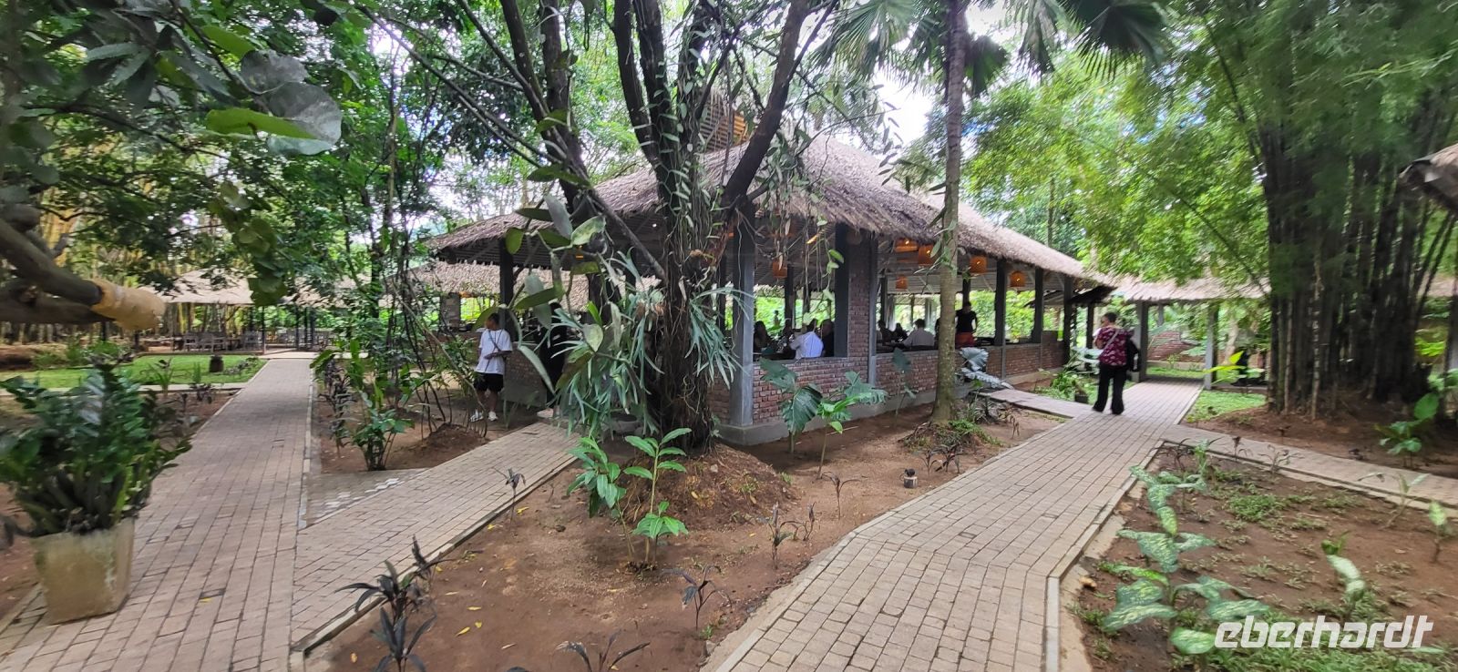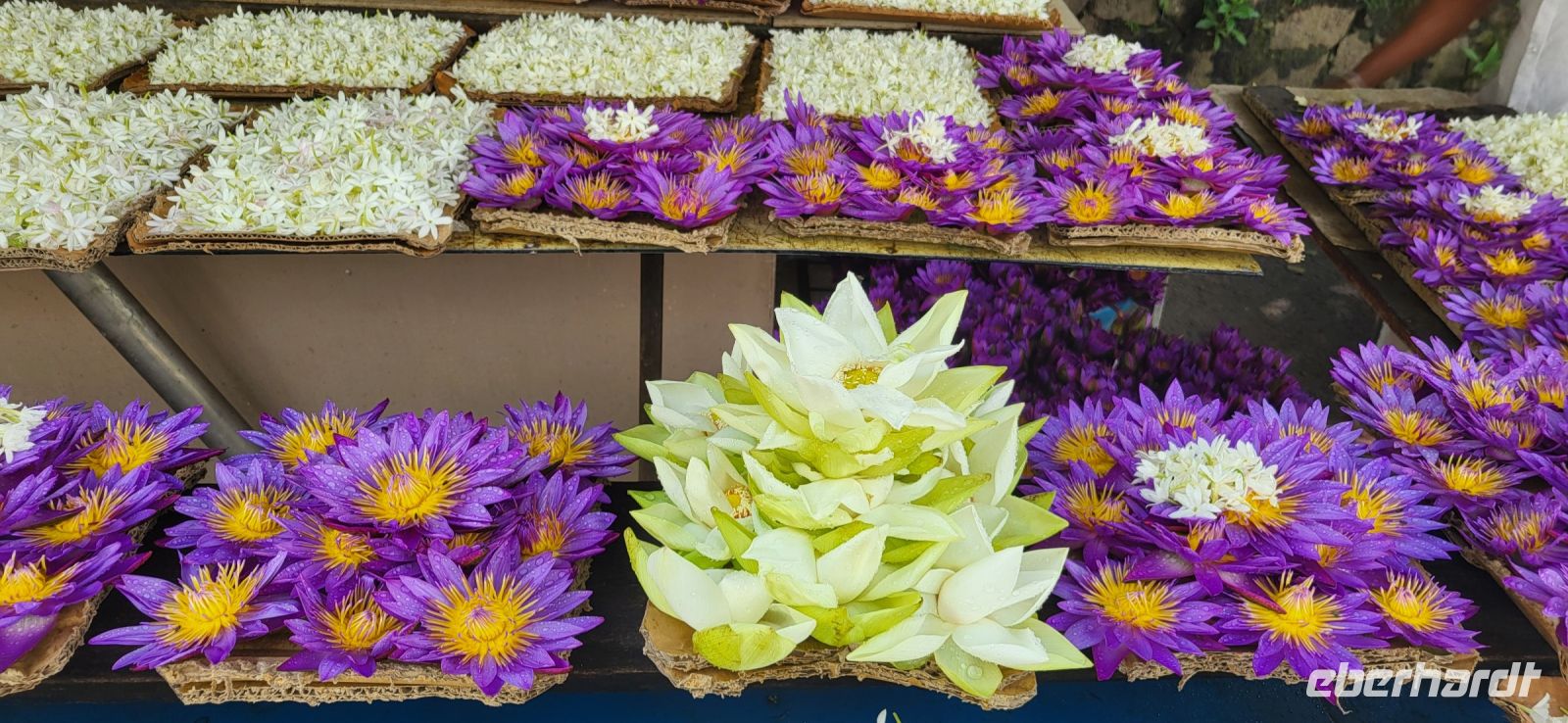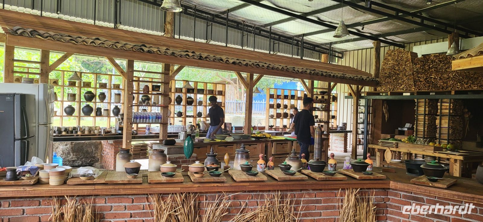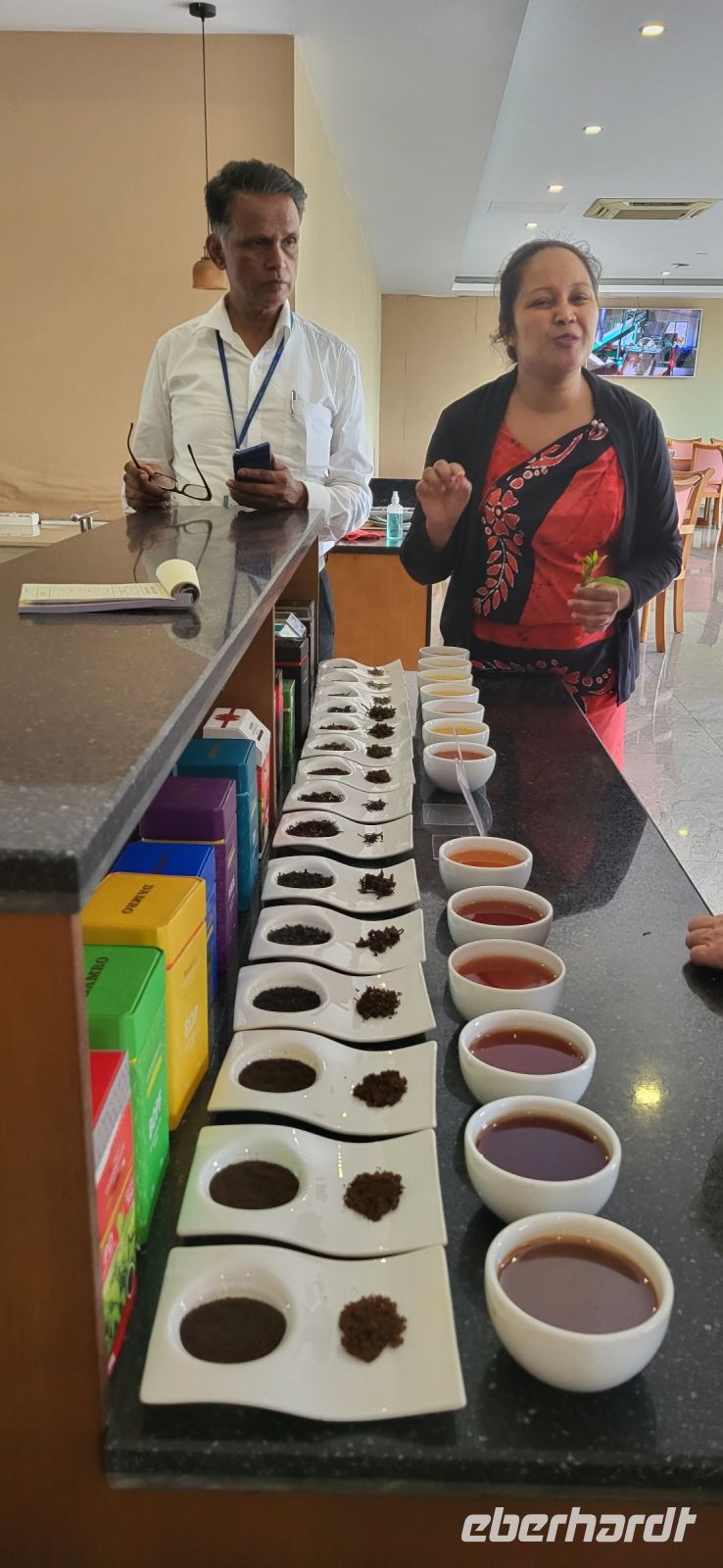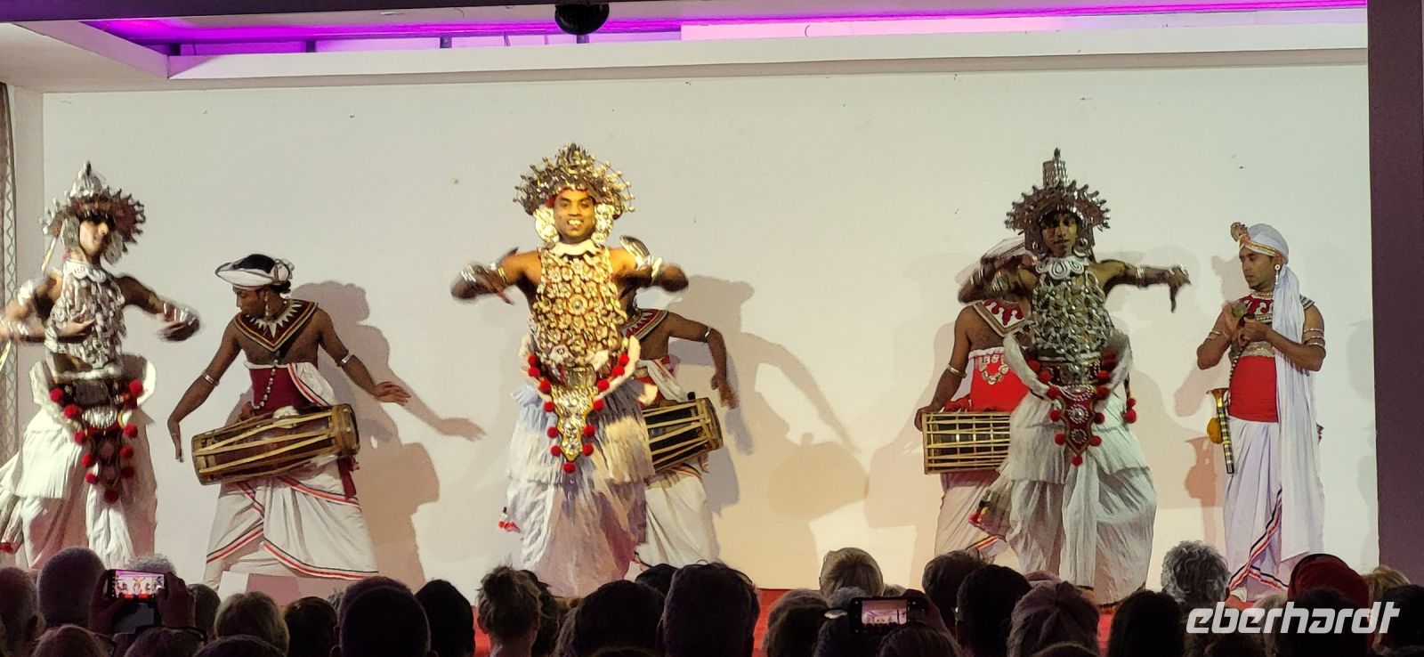 Nach einem herrlichen Frühstück starten wir zu einem Aussichtspunkt in Kandy, von wo aus wir eine tolle Übersicht und eine noch bessere Aussicht über die Stadt haben. Diese war einst von 1592 bis 1815 die Hauptstadt der Insel, bevor sie durch Colombo ersetzt wurde. Bei allerbesten Wetterverhältnissen steuern wir den nun 200 Jahre alten Botanischen Garten an und genießen die nächsten Stunden dieses wunderbare Stück Natur, bestaunen die vielen exotischen Pflanzen und Bäume, die hier aus der ganzen Welt zusammengetragen wurden. Neben Flora und Fauna hören und sehen wir auch, dass sich hier viele junge oder potenzielle Paare zum Kennenlernen treffen und je weniger man sich kennt, so näher man am Eingang sitzt und je vermeintlich besser man sich schon für gut befunden hat, umso weiter im Park hineinsitzt man auf den vielzähligen Parkbänken ringsherum. Und tatsächlich, wir sehen so einige junge Menschen ins Gespräch vertieft. In diesem wunderbaren Areal könnten wir uns noch Stunden aufhalten, jedoch werden wir heute zum Showkochen erwartet. Einige Fahrminuten später biegen wir von der Straße ab und befinden uns schlagartig mitten in der Natur. Hier werden wir von Köchin Sanda und einer Mitarbeiterin bereits erwartet, die uns zunächst mit einem Mangosaft einer noch unreifen Frucht begrüßen. Dieser schmeckt vorzüglich, erfrischend und ist auch für uns in dieser Form noch Neuland. Sanda demonstriert erst mal, was in keiner einheimischen Küche frisch fehlen darf, nämlich Kokosnuss. Schnell mit einer Sichel halbiert, werden die Hälften auf einer Art Hobel geraspelt, dann frisch verwendet oder mit Wasser ausgedrückt, damit frische Kokosmilch entsteht. Natürlich dürfen wir uns auch versuchen und stellen fest, so einfach wie es aussieht, ist es beim ersten Mal nicht. Sanda erklärt uns nun die verschiedenen Gerichte und bereitet für uns ein tolles Linsencurry auf offenem Feuer zu. Viele Zutaten werden hinzugefügt, die wir vor Ort bestaunen. Dazu fertigt sie noch einen Auberginen- sowie auch einen srilankanischen Gurkensalat. Das restliche Buffet haben die beiden Damen schon im Vorfeld für uns zubereitet, sodass wir bald auch alles kosten können. Heute nutzen wir dazu noch die Gelegenheit, das gewohnte Besteck gegen die eigenen Finger zu tauschen. Etwas ungewohnt, aber nach Erklärungen von Bonny und Sanda klappt es auch bei uns-ein völlig neues Essgefühl. Nach einem abschließenden Dessert verlassen wir diesen schönen Platz, wo wir in herrlicher Natur für uns gekocht und wir bestens gegessen haben. Es geht zurück nach Kandy Downtown, wo wir wieder den Kandy Lake und das ehrwürdige Queen’s Hotel passieren. Buntes Treiben mit viel Verkehr, Bussen, Tuk Tuks wuseln wild durcheinander, wir mittendrin mit unserem Busfahrer Kamal, der mit stoischer Gelassenheit den üblichen Verkehr mit Bravour meistert. Bevor des zum Folkloreabend mit den berühmten Kandy Tänzen geht, steuern wir noch einen einheimischen Supermarkt an, um uns mit den landestypischen Gewürzen zu mehr als zivilen Preisen zu versorgen. Die anschließenden Darbietungen der Kandy Tänzer sind geprägt von vielen farbenfrohen Kostümen, Tänzen, Akrobatik, Trommeln und Musik. Ein beeindruckendes Spektakel einer anderen Welt. Zurück im Golden Crowne Hotel genießen wir heute die Ruhe, das erneut sehr schmackhafte Abendbuffet, welches sich nochmals an Auswahl und Vielfalt übertrifft. In Sri Lanka sind wir nun wirklich im Schlaraffenland angekommen.