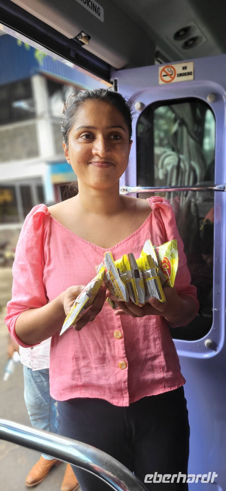 Ein letztes Mal schlemmen am reichhaltigen Frühstücksbuffet und weiter geht unsere Reise zu einer der schönsten Städte Sri Lankas-die Küstenstadt Galle. Die Altstadt, Galle Fort, genannt, erwartet uns mit unzähligen Fotomotiven und bietet eine tolle Kulisse. Wir spazieren gemütlich durch diesen so besonderen Ort und lassen die Architektur, die Vielfalt der Religionen, Moscheen, Kirchen und Kolonialbauten auf uns wirken. Hier haben wir auch noch ein paar Shoppingmöglichkeiten und greifen nochmals bei frischen Zimtstangen, Muskatnüssen und Tees zu. Ach-hier könnten wir locker einen ganzen Tag verbringen und komplett vergessen, dass wir uns in Sri Lanka befinden. Jedoch haben wir heute noch eine weitere Reise nach Colombo und unser Abschiedsabendessen auf dem Programm. Bevor wir wieder im Ramada Hotel einchecken, besuchen wir noch den Gangaramaya Tempel, von dessen ein Teil auf dem See in der Stadt liegt und optisch einen japanischen Touch vermittelt. Eine unwirkliche Atmosphäre umgeben von modernen Hochhäusern, Verkehr und städtischem Treiben. Am Hotel angekommen, nutzen wir die Gelegenheit, um uns bei unserem Busteam zu bedanken, bei Fahrer Kamal, der uns 1500 Km sicher und besonnen durch das Land gefahren hat. Busbegleiter Hasha war unser Sonnenschein. Jeden Morgen wurden wir mit frischen Blüten begrüßt und er war stets um uns besorgt. Vom Hygienespray, Wasserversorgung, Ein-und Ausstieg, Verteilen von Köstlichkeiten – er war unser guter Geist im Bus und dem Fahrer und Guide ein sehr hilfreicher Assistent. Beim Abschiedsabendessen bedanken wir uns bei unserem Reiseleiter Bonny (he’s now over die ocean ….). AYUBOWAN-Bonny- einzigartig in seiner Art, sehr ambitioniert uns Land und Leute und besonders den Buddhismus näherzubringen. Wir hoffen, künftig unsere Sinne im Griff zu haben und somit die Gier zu überwinden, grins…. Dank seiner langjährigen Erfahrung konnten wir einige Unwegsamkeiten umgehen, somit vermieden wir allzu viele Stufen, lästige Händler und konnten so manchen Ort umso mehr genießen. ISTHUTHI Bonny.