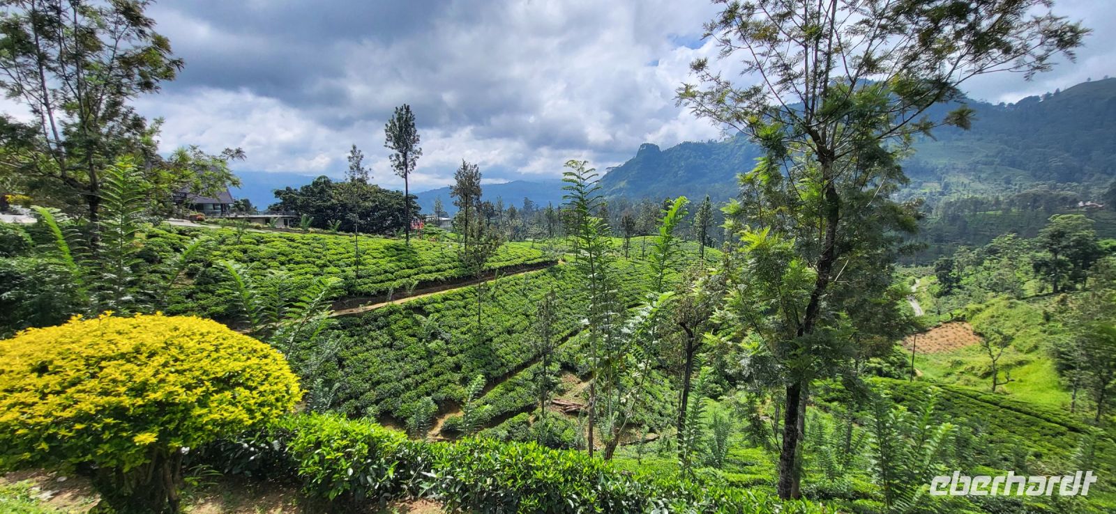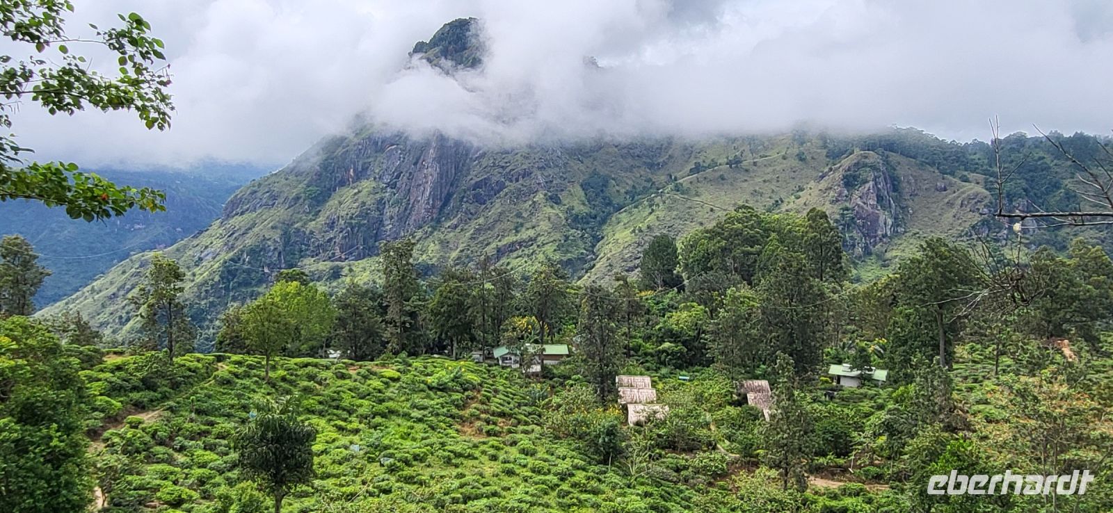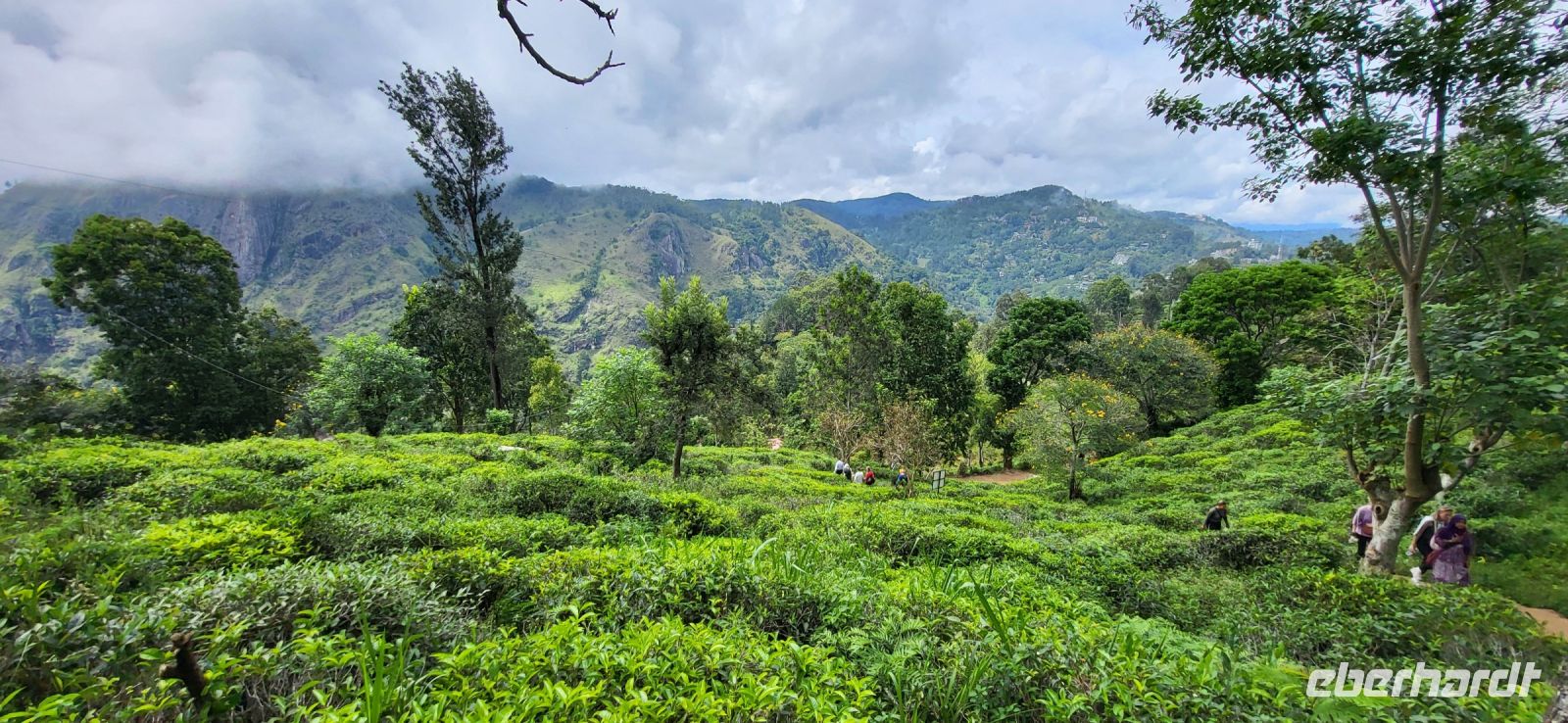 Beim gemeinsamen Frühstück sehen wir uns nach einer angenehm frischen Nacht wieder. Es erfolgt unser morgendliches Blumenritual seitens unseres netten Busbegleiters Hasha und wir machen uns auf den Weg nach Ella. Auf der Strecke halten wir noch einige Male, um die schöne Umgebung mit vielen Gemüsebeeten festzuhalten. Weitere Fotostopps sollen folgen, mit schönen Ausblicken in die wunderbare Natur und den imposanten Hindutempel Sita Amman Kovil, zu dem jährlich hunderttausende Hindus pilgern. Vormittags erreichen wir den einstigen Hippie-Ort Ella, der heute viele junge Touristen anzieht und starten unsere Wanderung zum Little Adams Peak zunächst per Tuk Tuk. Diese fahren uns entlang der schönen Teeplantagen mit Blick über die schöne Bergwelt, die uns umrahmt. Das alles bei sehr angenehmem Wetter-haben wir ein Glück, denn die Wetterprognose war gar nicht so gut gemeldet. Wunderschöne Bilder entstehen, nicht zuletzt von der Teepflückerinnen entlang unserer Strecke. Der Großteil unserer Gruppe schafft es bis zum Gipfel und wir genießen die tolle Atmosphäre hoch oben angekommen. Auf dem Rückweg laufen wir wieder ein Stück zurück, nehmen nochmals einige Tuk Tuks, bis wir erneut am Ausgangsort ankommen. Wir begeben uns wieder ins Tiefland und nehmen die letzte Etappe unserer Tagesfahrt bis zum Cinnamon Wild Hotel auf uns, welches direkt an den bekannten Yala Nationalpark grenzt. Da wir uns schon im Naturschutzgebiet mit Tierwelt befinden, werden wir von und zu unseren Zimmern von Wächtern begleitet. Ein Abendessen in herrlich ruhiger Atmosphäre erfolgt und den Klängen der Natur und des Meeres lauschend schlummern wir schnell in einen wohlverdienten Schlaf ein.