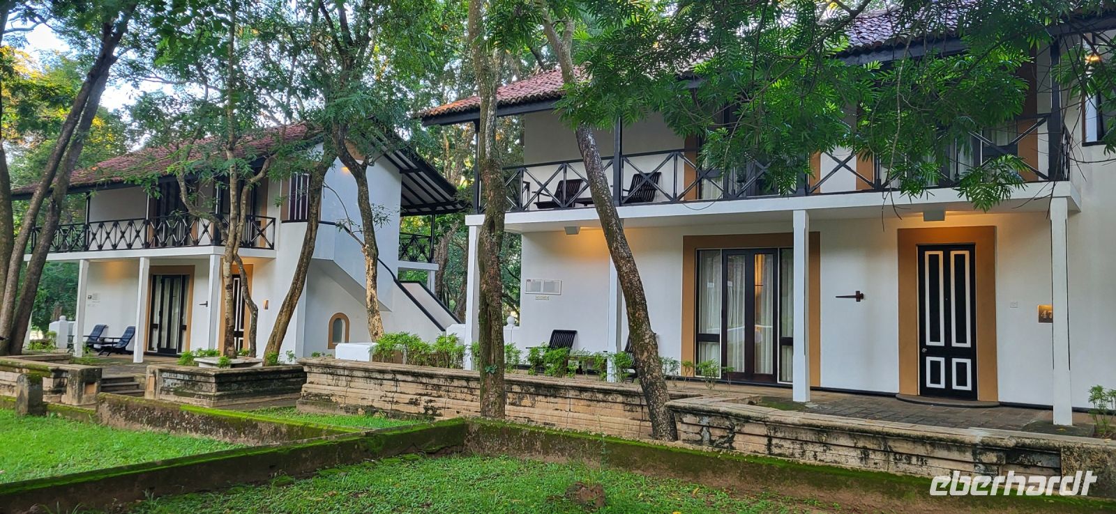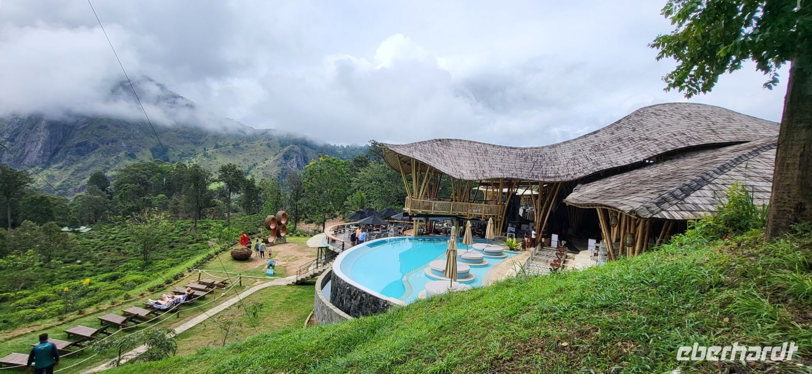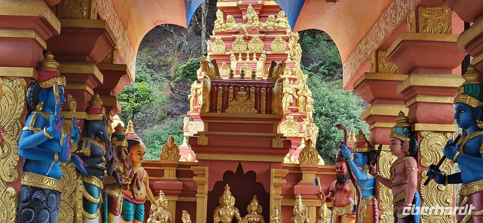 Beim gemeinsamen Frühstück sehen wir uns nach einer angenehm frischen Nacht wieder. Es erfolgt unser morgendliches Blumenritual seitens unseres netten Busbegleiters Hasha und wir machen uns auf den Weg nach Ella. Auf der Strecke halten wir noch einige Male, um die schöne Umgebung mit vielen Gemüsebeeten festzuhalten. Weitere Fotostopps sollen folgen, mit schönen Ausblicken in die wunderbare Natur und den imposanten Hindutempel Sita Amman Kovil, zu dem jährlich hunderttausende Hindus pilgern. Vormittags erreichen wir den einstigen Hippie-Ort Ella, der heute viele junge Touristen anzieht und starten unsere Wanderung zum Little Adams Peak zunächst per Tuk Tuk. Diese fahren uns entlang der schönen Teeplantagen mit Blick über die schöne Bergwelt, die uns umrahmt. Das alles bei sehr angenehmem Wetter-haben wir ein Glück, denn die Wetterprognose war gar nicht so gut gemeldet. Wunderschöne Bilder entstehen, nicht zuletzt von der Teepflückerinnen entlang unserer Strecke. Der Großteil unserer Gruppe schafft es bis zum Gipfel und wir genießen die tolle Atmosphäre hoch oben angekommen. Auf dem Rückweg laufen wir wieder ein Stück zurück, nehmen nochmals einige Tuk Tuks, bis wir erneut am Ausgangsort ankommen. Wir begeben uns wieder ins Tiefland und nehmen die letzte Etappe unserer Tagesfahrt bis zum Cinnamon Wild Hotel auf uns, welches direkt an den bekannten Yala Nationalpark grenzt. Da wir uns schon im Naturschutzgebiet mit Tierwelt befinden, werden wir von und zu unseren Zimmern von Wächtern begleitet. Ein Abendessen in herrlich ruhiger Atmosphäre erfolgt und den Klängen der Natur und des Meeres lauschend schlummern wir schnell in einen wohlverdienten Schlaf ein.