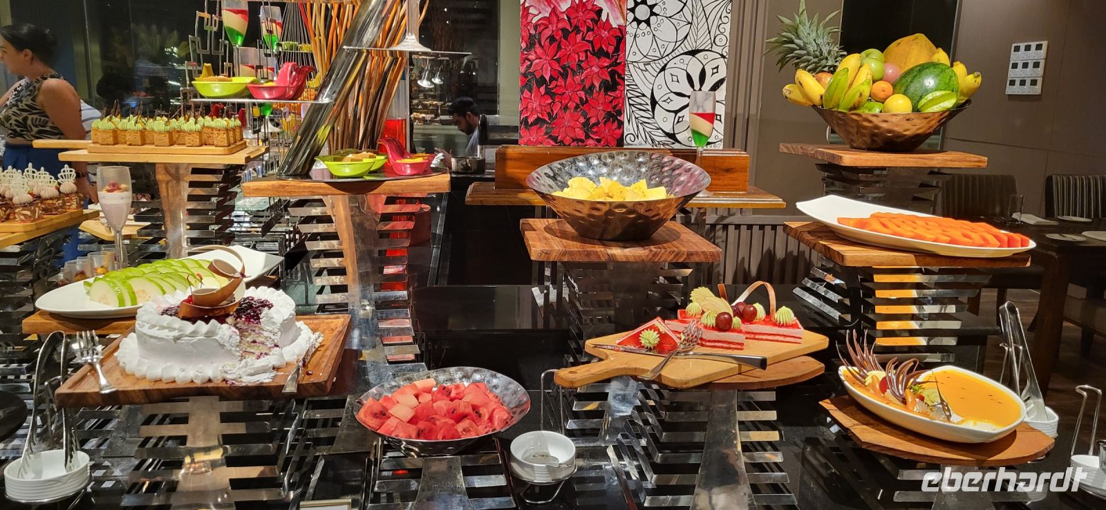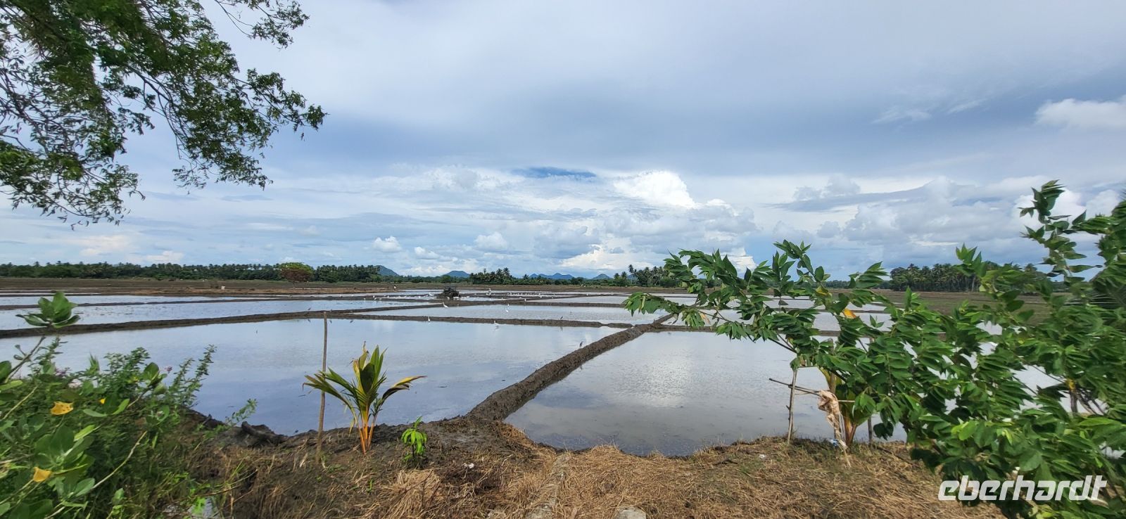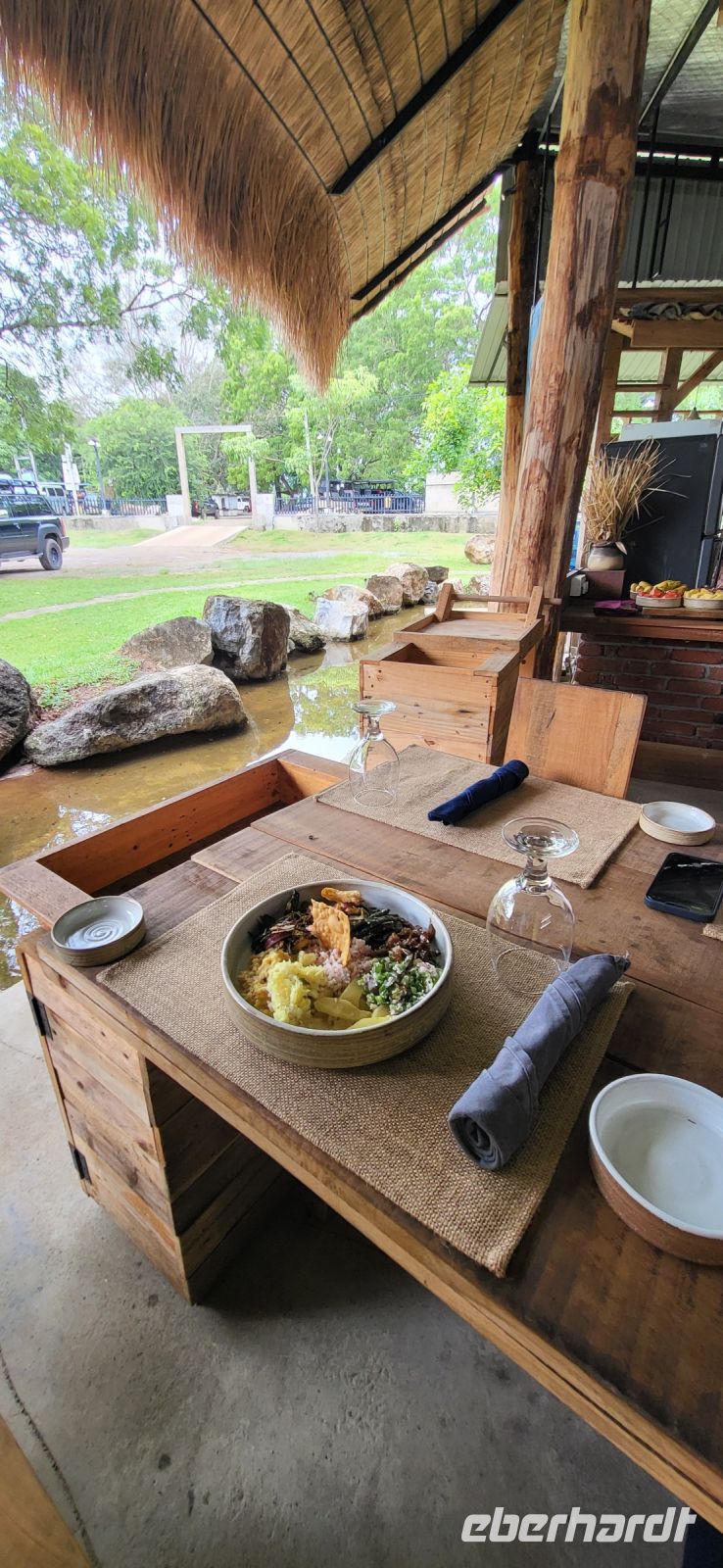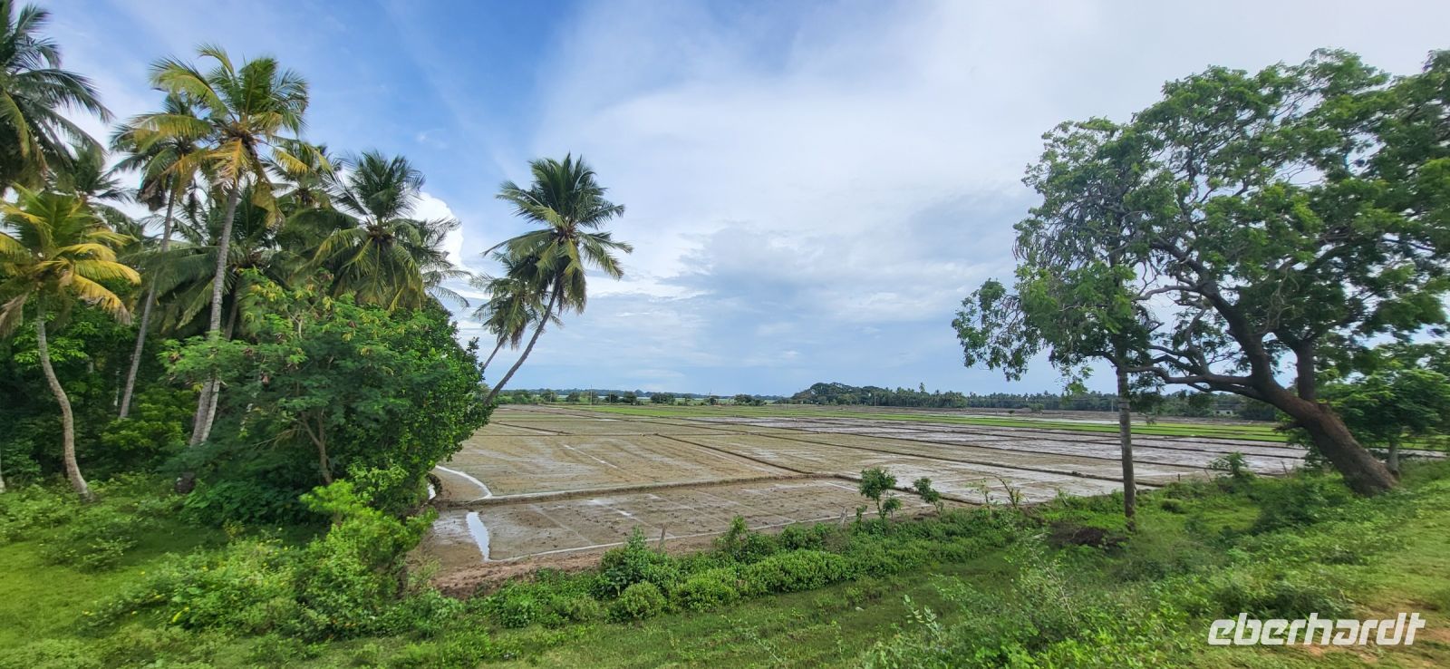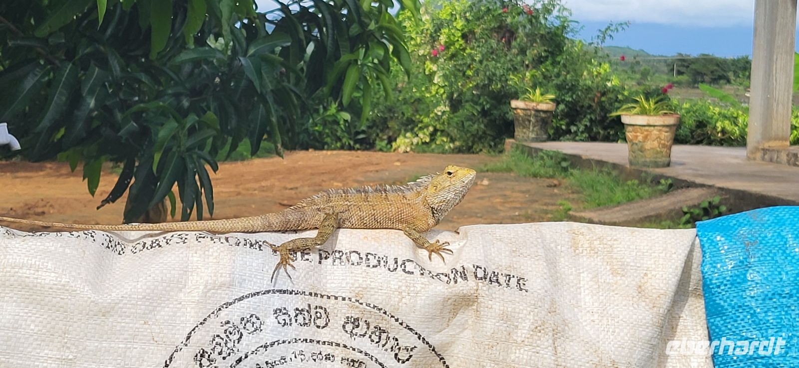 Heute haben wir die Qual der Wahl. Bedingt dadurch, dass wir unsere Programmpunkte vor Ort etwas anders gelegt haben, haben wir heute einen freien Tag. Diesen können wir gemütlich in der Lodge und somit am Pool verbringen oder begeben uns mit Bonny zu einer Fahrt ins Blaue. Natürlich zieht es die meisten von uns wieder nach draußen. Unser erstes Ziel ist Kirinda mit dem Vihara Maha Devi Tempel. Dieser ist direkt am Indischen Ozean gelegen und für uns alle ein absolut magischer Ort. Der Tempel liegt auf einer Anhöhe mit atemberaubender Kulisse und zieht uns förmlich in seinen Bann. Hier könnten wir noch viel länger bleiben. Unsere Weiterfahrt führt uns durch Dörfer entlang der Hauptstraße, mit vielen interessanten Dingen links und rechts. Viele Reisfelder prägen die Landschaft, Wasserbüffel liegen genüsslich im kühlen Nass. Bäume voller Flughunde, die statt schlafen, lieber unruhig lärmen. Im Rain Tree Hotel in Tissamaharamaya halten wir, um einen Mittagssnack zu ordern, lassen die Küche in Ruhe vorbereiten und fahren nochmals weiter, um einen schönen Spaziergang entlang eines Stausees zu unternehmen. Hier sehen wir ebenfalls wieder imposante Vögel, Warane, Reisbauern in der Vorbereitung. Dies ist auch die Gegend, wo Bonny aufgewachsen ist und so statten wir seiner Familie einen Besuch ab. Wir lernen seinen Bruder und seine 92-jährige Mutter kennen. Herzlich erfolgt die Begrüßung mit einer frischen Kokosnuss aus dem eigenen Garten, deren Wasser wir genüsslich trinken. Einfach köstlich. Bonnys Bruder hat vor Jahrzehnten Deutsch im Goethe-Institut gelernt und spricht dieses noch erstaunlich gut. Einfach eine nette und für uns sicherlich unvergessliche Begegnung! Wir spazieren weiter und enden an unserem Restaurant, welches bereits das Mittagessen fertig hat. Da alle anderen Gäste auf Ausflügen sind, sind wir hier exklusiv zu Gast und werden köstlich umsorgt. Anschließend geht es zurück zum Cinnamon Wild Yala Hotel, wo wir schon von unseren Mitreisenden erwartet werden. Ein toller und spontaner Ausflugstag geht zu Ende, den wir alle sicherlich nicht missen wollen. Es erfolgt ein letztes Abendessen mit unglaublicher Auswahl und erneut stehen wir ratlos am Buffet, denn wir haben mehr als die Qual der Wahl.