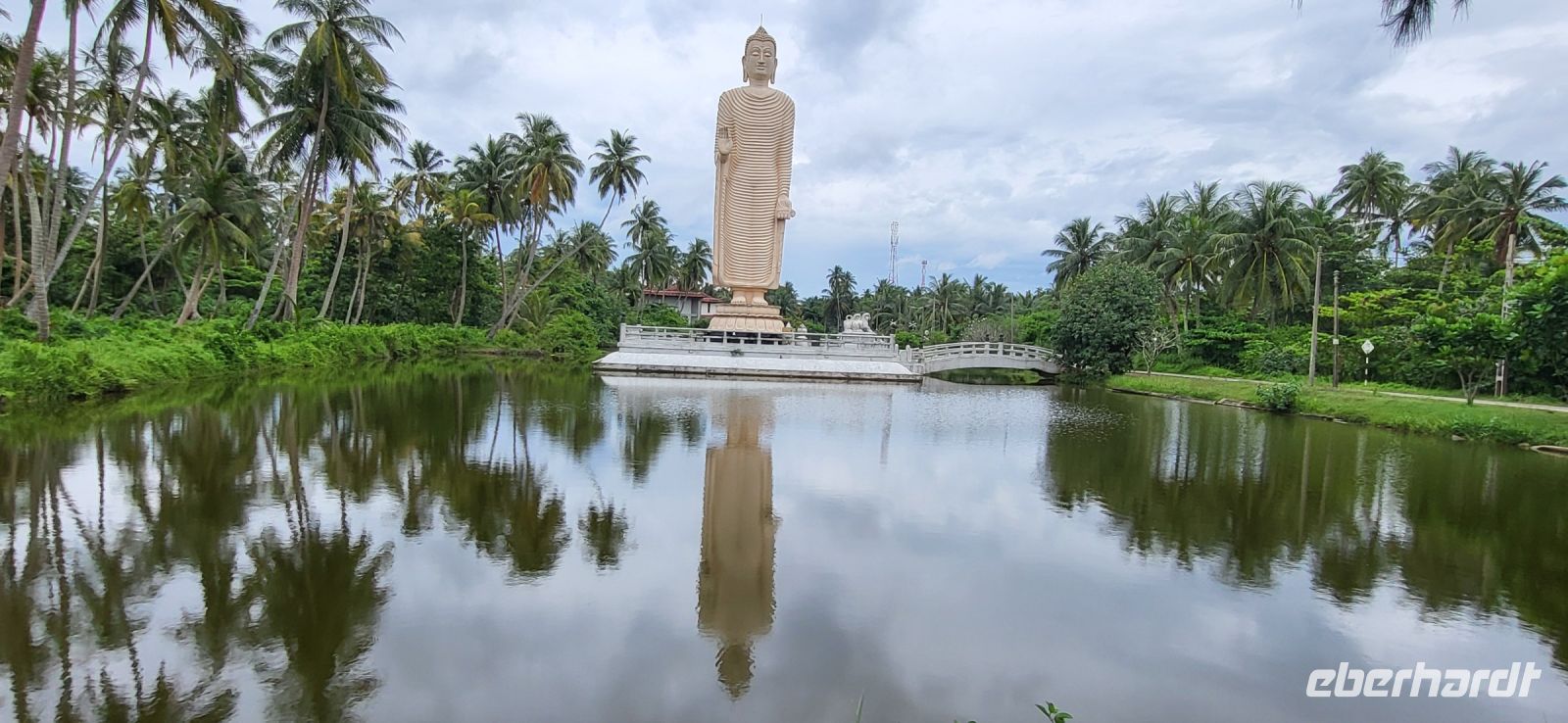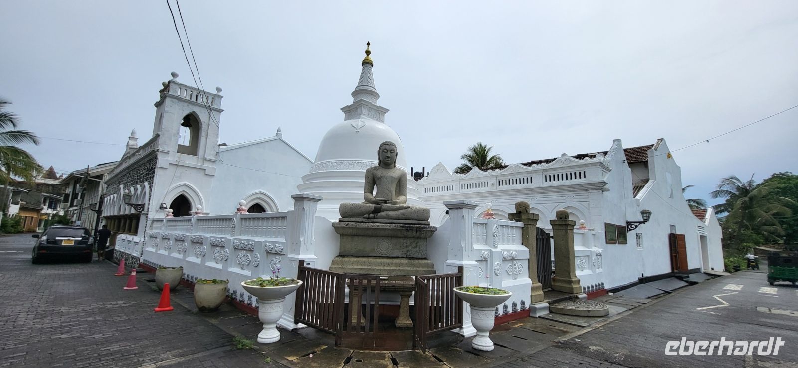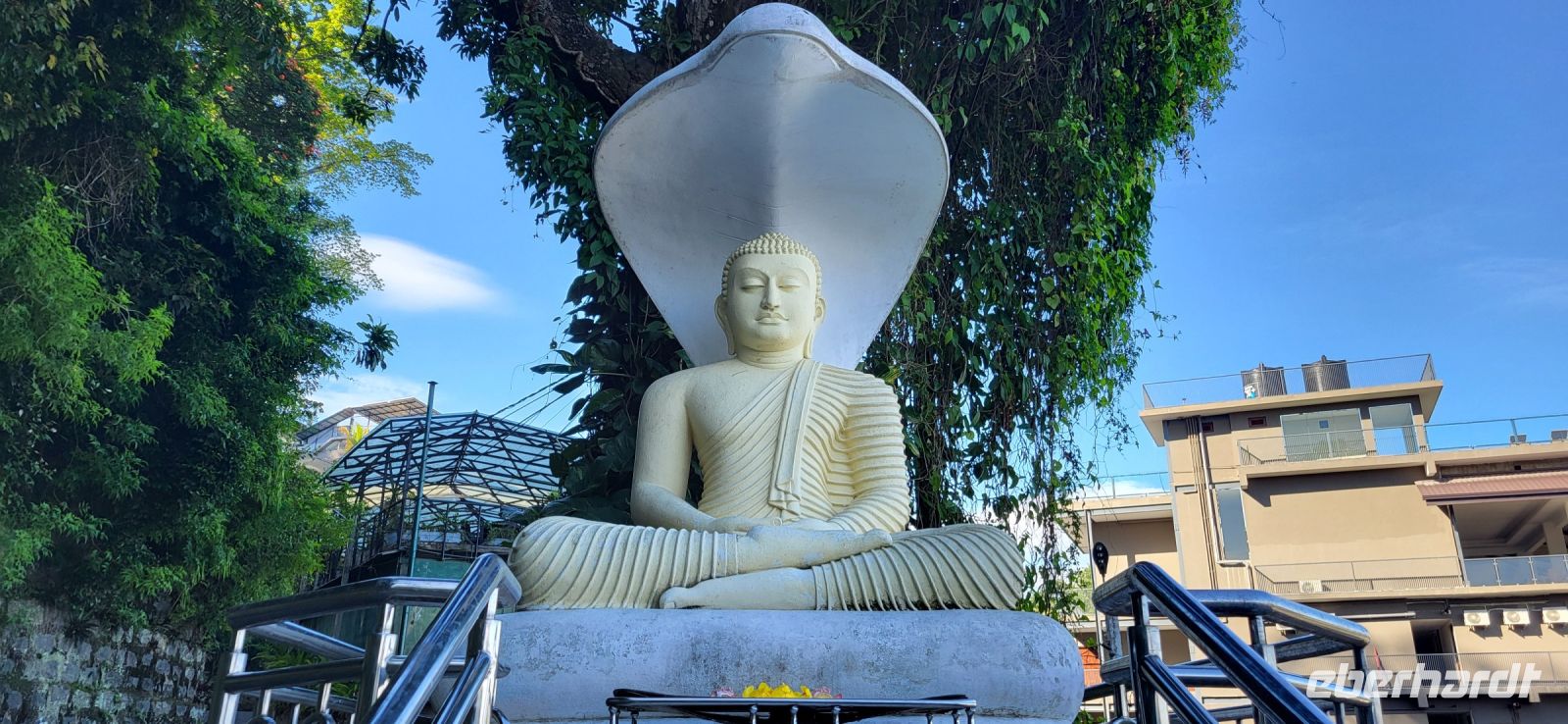 Angenehme 24 Grad erwarten uns bereits, als wir um 2.55 Uhr pünktlich landen. Nachdem die Einreiseformalitäten, Koffer sichten und Handykarte besorgen, erledigt sind, werden wir herzlich von Reiseleiter Bonny und unserem Busteam bestehend aus Fahrer Kamal und Busbegleiter Hasha begrüßt. Nun geht es auf den Weg zum zentral gelegenen Ramada by Wyndham Hotel, welches für die nächsten beiden Nächte unsere Herberge sein wird. Wir werden freundlich mit Holzapfelsaft begrüßt und können direkt unsere Zimmer beziehen. Wer mag, frühstückt erstmal oder geht zunächst ein paar Stunden schlafen, bis wir uns mittags zum gegenseitigen Kennenlernen wiedersehen. Somit bleibt Zeit zum Akklimatisieren und Ausruhen von der Anreise. Bei einem kühlen Getränk und in gemütlicher Runde im Poolbereich des Hotels lauschen wir gespannt, was unsere Mitreisenden von sich berichten. Dies alles bei wolkenlosem Himmel und strahlendem Sonnenschein.. Schöner und entspannter kann eine Reise nicht beginnen, bis es gleich auf Citytour durch Colombo geht. Mit unserem Busteam und Reiseleiter Bonny geht es los. Dieser erklärt uns, dass heute Vollmondtag ist, somit Feiertag auf der Insel und der Besonderheit, dass heute kein Alkohol ausgeschenkt werden darf. Wo normalerweise das hektische Großstadtleben (850.000 Menschen leben im Zentrum) stattfindet und wir uns zwischen endlosen Tuk Tuks, Minibussen, Motorradfahrern und Passanten hindurchquetschen müssten, herrscht heute himmlische Stille, denn die Menschen sind im Tempel oder zu Hause. So genießen wir den seichten Einstieg in das quirlige Land, während uns unser sehr gut deutsch sprechender Reiseleiter ausführlich über Land und Leute informiert. Wir erfahren, dass man sich in Sri Lanka mit „Ayubowan“ begrüßt, sich somit ein langes und gesundes Leben wünscht. Es u.a. in Sri Lanka Singhalesen und Tamilen gibt, wobei die Singhalesen übersetzt das „Löwenvolk“ sind. Wir stoppen verschiedene Male, um beispielsweise verschiedene historische Bankgebäude sowie den 150 Jahre alten Uhrenturm oder auch die rote Moschee anzuschauen. Weiter geht es durch die verschiedenen Bezirke der Stadt, u.a. auch das Hafengelände und dem historischen 1. Kaufhaus Sri Lankas „Cargills“, welches einst von den Briten gebaut wurde. Am Hindutempel Kowila entstehen tolle Aufnahmen. Heute profitieren wir vom Feiertag, sodass wir in Ruhe fotografieren und das Flair genießen können. Bevor wir unsere Rückfahrt antreten, halten wir noch an der Unabhängigkeitshalle. Da das Wetter jedoch nun doch regnerisch wird, belassen wir es mit einem Blick aus dem Bus. Zurück im Hotel haben wir noch etwas Freizeit, bevor wir uns zum Abendessen im Hotelrestaurant wiedersehen. Heute Abend sind wir uns einig, bei der guten Kost muss morgen der Höhlentempel auf jeden Fall erklommen werden!