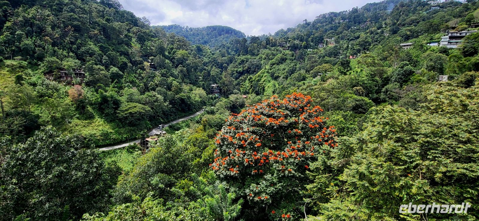 Nach einer ruhigen Nacht in unserem Golden Crowne Hotel und einem herrlichen Frühstück starten wir gut gelaunt unser Programm. Unser Busfahrer Hasha empfängt uns wie jeden Morgen herzlich mit frisch gepflückten Blumen! Daran können wir uns wirklich gewöhnen! Wir beginnen mit dem weltberühmten Zahntempel von Kandy und lassen das buddhistische Treiben mit all seinen Gläubigen auf uns wirken. Beeindruckt reihen wir uns in die endlose Schlange der Tempelbesucher und ihrer Opfergaben ein und erhaschen ebenfalls einen kurzen Blick auf den Bereich, in dem ein Zahn Buddhas vorhanden sein soll. Zuvor hat uns Guide Bonny Tempelblumen gekauft, die wir von dem Schrein ablegen können. Wir verlassen die Stadt Richtung Hochland und es geht immer höher hinaus. Schöne und sehr gepflegte Teeplantagen ziehen an uns vorbei und erneut zeigt Sri Lanka ein neues Gesicht. Mittags kehren wir in ein idyllisches Lokal mit Blick auf Wasserfälle und zwei Stauseen ein und genießen das tolle Buffet und die herrliche Aussicht hier nun schon auf über 1000 m Höhe. Gut gestärkt erklärt uns Bonny an einer Teeplantage auf unserer Strecke, welche Blätter gepflückt werden und welche Qualitäten man daraus erhält. Informativ geht es weiter auf der Damro Teeplantage und eine einheimische Führerin namens „Hansi“ erklärt uns die Teegewinnung anschaulich in der Fabrik. Natürlich dürfen wir von diesem auch in drei verschiedenen Qualitäten kosten. Nachmittags dann Ankunft in Nuwara Eliya auf 1860 m Höhe und es ist schon merklich kühler. Zunächst checken wir in unser Amaliya Greencity Hotel ein, um kurz darauf dann durch die neu gebaute Markthalle sowie die Geschäftsstraße zu schlendern. Bereits in der Dämmerung sehen wir auf einer Anhöhe noch das alte und gut erhaltene Postamt von 1903. Wieder ein erlebnisreicher Tag findet seinen Ausklang bei einem schmackhaften Abendessen im Araliya Hotel.