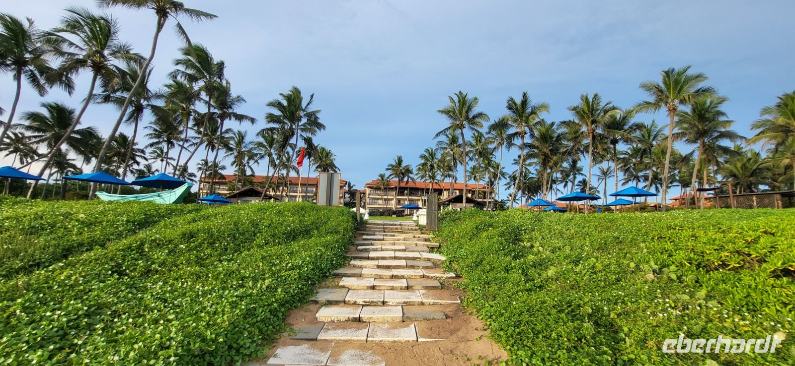 Das heutige Tagesmotto lautet: die Seele baumeln lassen. Wir haben heute frei und nutzen diesen nach Lust und Laune. Zum Start in den Tag erfolgt ein schmackhaftes Frühstück vom erneut reichhaltigen Buffet. Außerdem haben wir noch die Möglichkeit, einen Marsala Chai zu probieren. Dieser Tee wird mit Milch und Kräutern wie Kardamom, Zimt, Nelken und Ingwer zubereitet, einfach lecker! Anschließend begeben wir uns durch die Anlage zum Strandspaziergang. Wir sind die einzigen Spaziergänger und können das Meer, das warme Wasser an unseren Füßen und die Natur genießen. Ein wunderschöner Abschluss unserer erlebnisreichen Sri Lanka Rundreise, bevor es morgen Richtung Colombo und dem Ende unserer Tour geht. Nochmals ein exotisches Abendessen vom Buffet mit erneut neuen Köstlichkeiten. Das werden wir schon sehr bald vermissen …