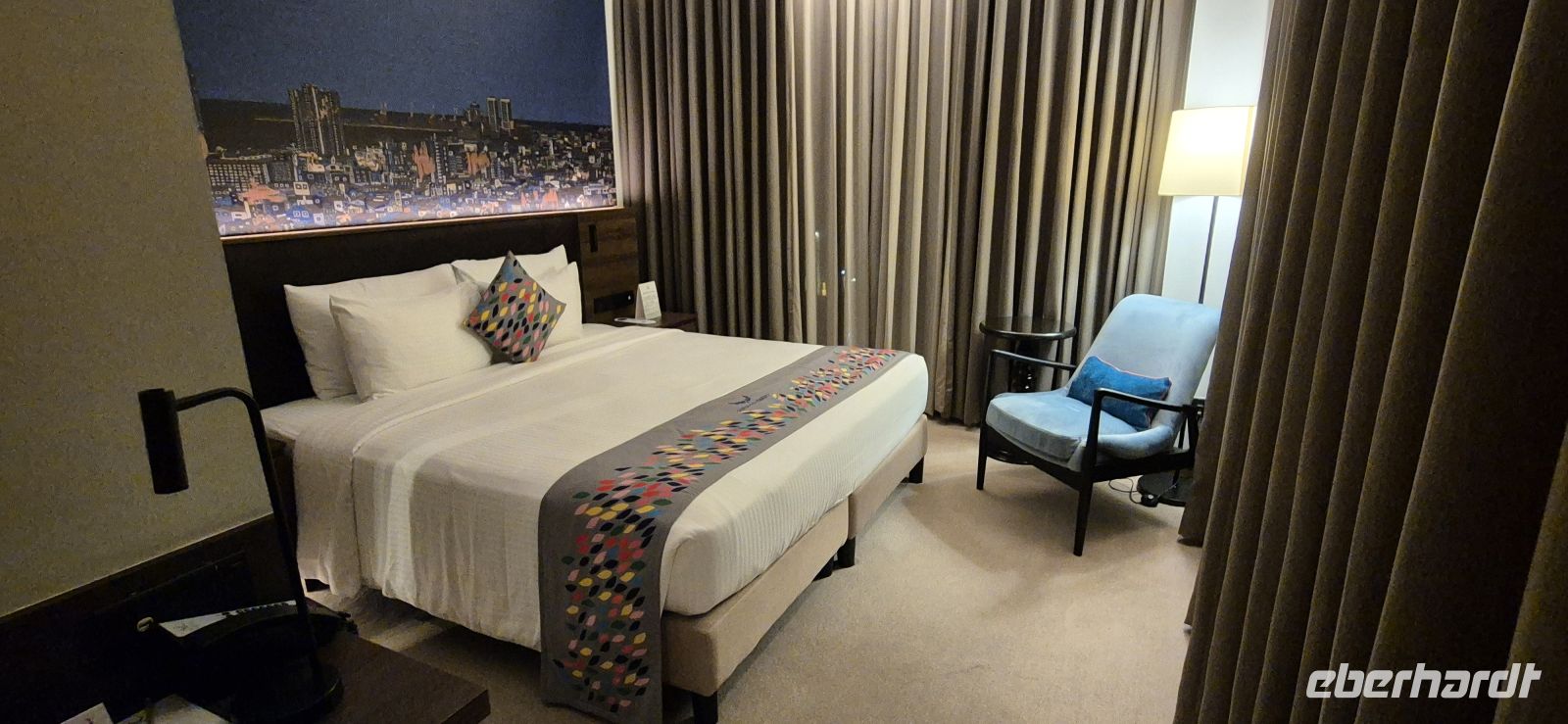 Unsere Reise beginnt mit dem Abflug aus Frankfurt, Berlin, München und nun trifft sich unsere gesamte Reisegruppe mit mir, Susanne Schirmann, Eberhardt TRAVEL Reisebegleiterin in Doha/Qatar, wo sich unsere Wege vereinen und das Ziel endlich greifbar wird: Sri Lanka! Als wir schließlich in der Nacht in Colombo landen, erwartet uns unser Reiseleiter Sampa bereits freudig am Flughafen. Draußen am Ausgang, schlägt uns die tropische Wärme entgegen – ein sanfter Vorgeschmack auf das, was in den kommenden Tagen auf uns zukommt. Unser Bus ist geräumig und der Fahrer Rukmal (wir verstehen immer nur „Guck mal“ und haben viel Spaß damit) und Busbegleiter Mohammad zeichnen sich als ein nettes Team ab, bei dem wir in den besten Händen sind. Die Straßen sind um diese Uhrzeit angenehm leer, was unsere erste Fahrt durch die nächtliche Stadt besonders geschmeidig und zügig macht. Hin und wieder huscht ein Tuk-Tuk vorbei, doch sonst ruht die Stadt still unter dem dunklen Himmel. Schon nach kurzer Zeit erreichen wir unser modernes Hotel Sofia, wo wir auf der 10. Etage mit tollem Blick über Colombo herzlich empfangen werden. In unseren komfortablen Zimmern fallen wir in die Betten – froh endlich angekommen zu sein, und voller Vorfreude auf die kommenden Erlebnisse auf dieser faszinierenden Insel. Sri Lanka – wir sind da!