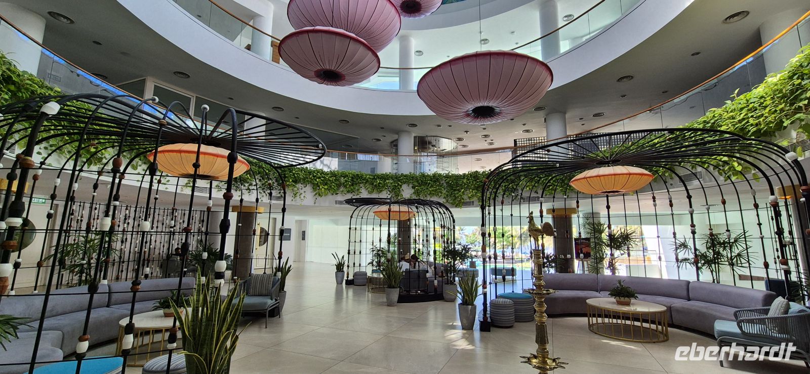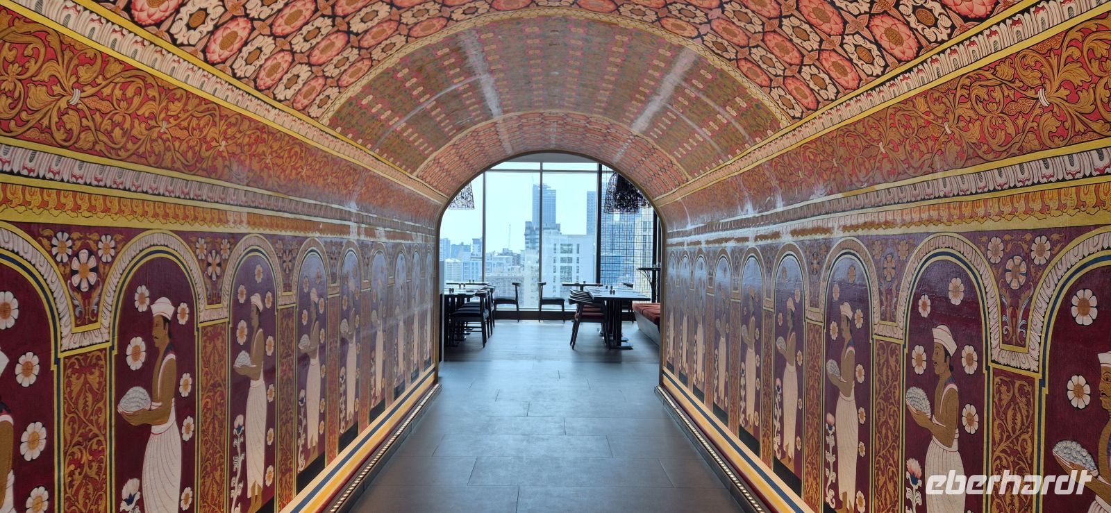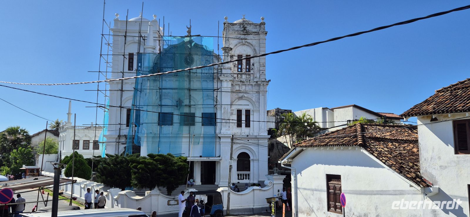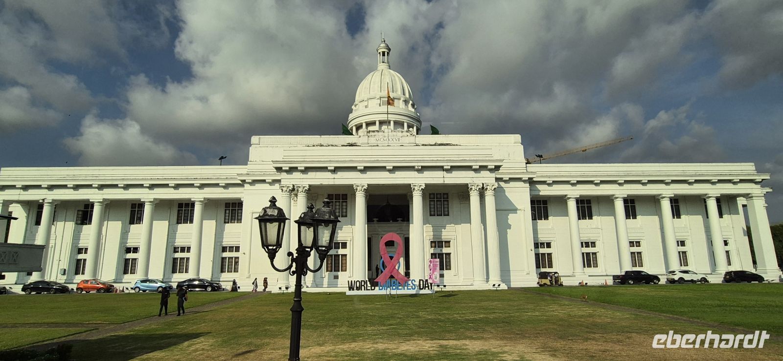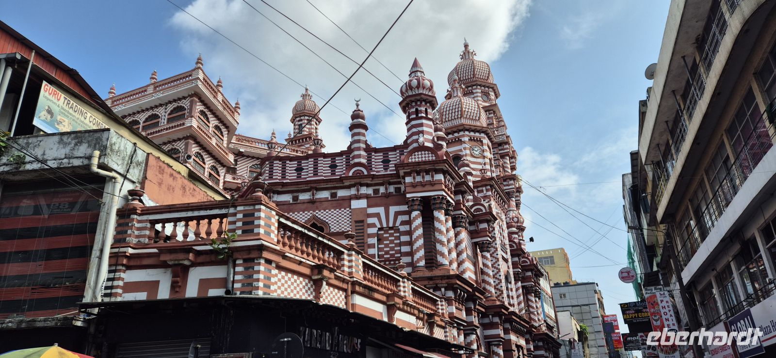 Der erste Morgen in Sri Lanka beginnt nach ein paar Stunden Schlaf auf der obersten Etage unseres Hotels – mit einem Frühstück, das keine Wünsche offenlässt. Vor uns breitet sich Colombo aus: Palmen, Dächer, das Meer direkt gegenüber und dazwischen das geschäftige Treiben einer tropischen Metropole. Bei frischen Früchten, Curryduft genießen wir den Blick und das herrliche Frühstücksbuffet. Der Vormittag steht uns zur freien Verfügung – Zeit, um anzukommen, noch ein bisschen auszuruhen oder einfach die Aussicht zu genießen. Einige erkunden schon die nähere Umgebung, andere lassen sich am Pool nieder. Bevor es am Nachmittag auf Stadterkundung geht, treffen wir uns zu einem kleinen Umtrunk mit Aussicht – ein Saft aus frischen Früchten produziert in der Hand, nutzen wir die Gelegenheit, um uns besser kennenzulernen, zu plaudern und zu erfahren, woher unsere Mitreisenden kommen und was sie nach Sri Lanka führt. Im Anschluss starten wir dann zu unserer ersten Citytour. Das Wetter zeigt sich von seiner besten Seite: strahlend blauer Himmel, Sonne pur und natürlich tropisch schwül. Wir fahren vorbei an den glänzenden Zwillingstürmen des World Trade Centers, Sinnbild des modernen Colombo. Gleich daneben liegt das historische Dutch Hospital, eines der ältesten Gebäude der Stadt. Wo früher Patienten behandelt wurden, laden heute stilvolle Restaurants und kleine Boutiquen zum Verweilen ein – ein charmantes Beispiel, wie Geschichte und Gegenwart in Colombo harmonisch ineinanderfließen.