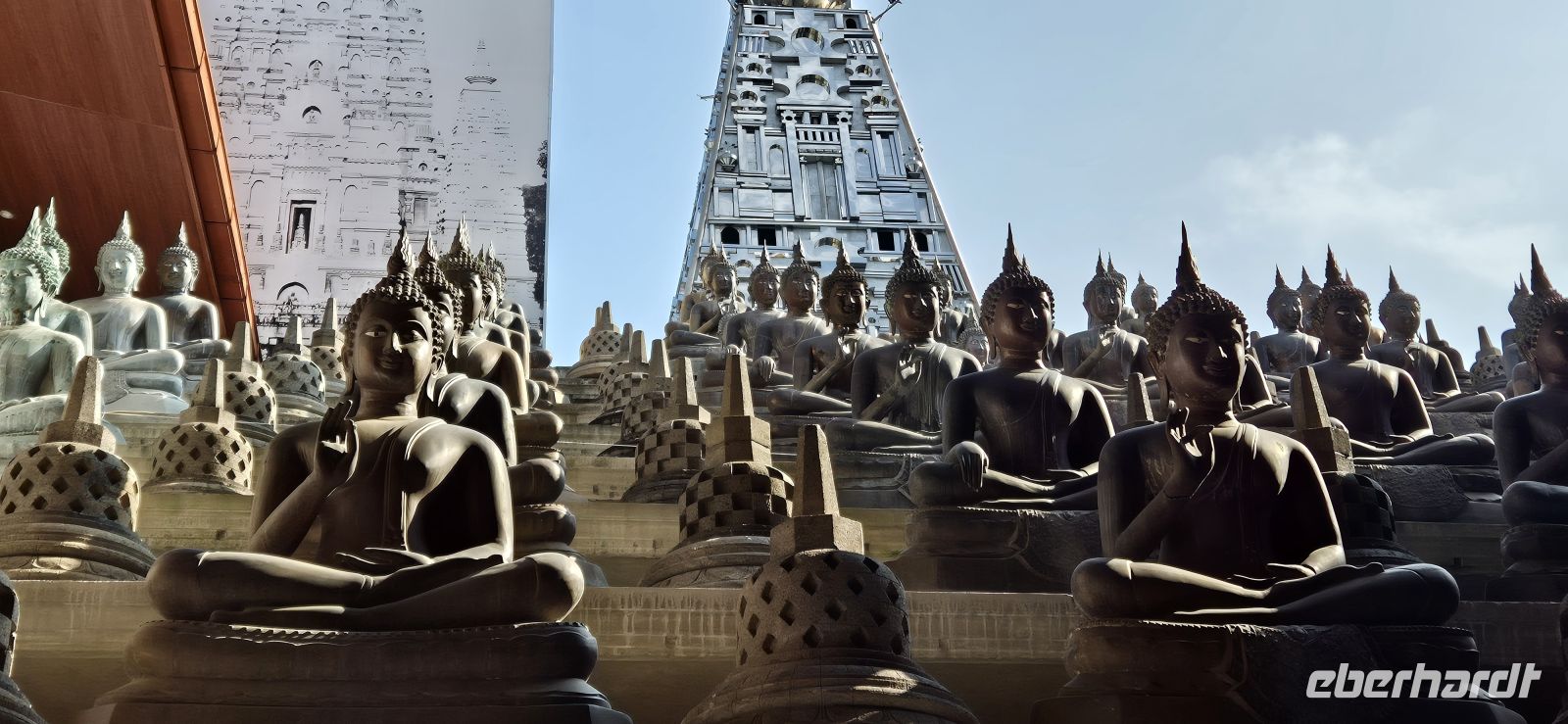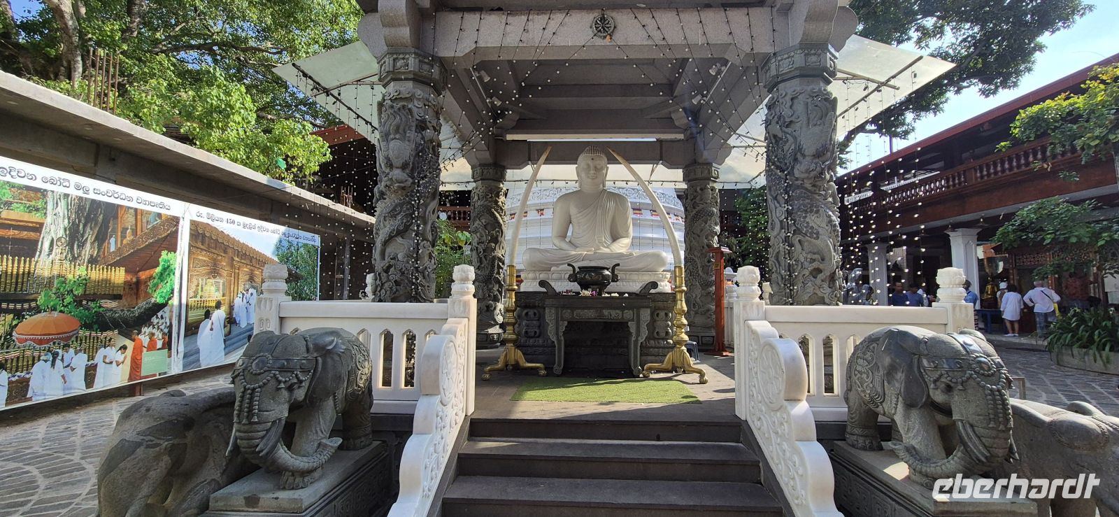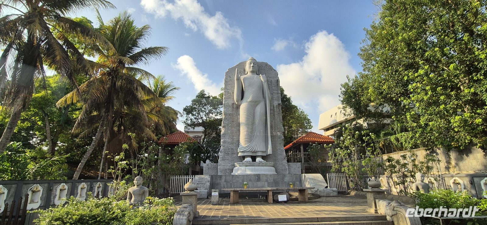 Während unseres Spaziergangs tauchen wir in das lebendige Herz der Stadt ein: vorbei an der interessanten „roten Moschee“, schlängeln uns durch enge Gassen, passieren geschäftige Händler, bunte Stoffe, duftende Gewürze und das unaufhörliche Hupen der Tuk-Tuks. Am alten Uhrturm im Fort-Viertel, einem Relikt britischer Kolonialzeit, spüren wir den Hauch vergangener Epochen, der sich mit der Gegenwart mischt. Ein besonderer Moment erwartet uns im Gangaramaya-Tempel. Goldene Buddhas, leuchtende Farben, das Klingen kleiner Glöckchen und der Duft von Räucherwerk schaffen eine friedvolle Atmosphäre. Hier scheint die Zeit für einen Augenblick stillzustehen. Anschließend gleitet unser Bus weiter vorbei am futuristischen Lotus Tower, dessen pinkfarbene Blüte weit über die Stadt ragt – das stolze Symbol des modernen Sri Lanka. Nicht weit entfernt erhebt sich die schneeweiße Town Hall, das eindrucksvolle Rathaus im klassizistischen Stil, und das Unabhängigkeitsdenkmal mit der Statue des ersten Präsidenten – Orte, die an den Beginn der Eigenständigkeit 1948 erinnern. Nach so vielen Eindrücken kehren wir ins Hotel zurück und freuen uns, dass das Wetter den ganzen Tag bestens durchgehalten hat. Beim Abendessen mit reichhaltigem Buffet und den Düften exotischer Gewürze klingt der Tag gemütlich aus. Ein gelungener Start – voller Sonne, erster Eindrücke von diesem faszinierenden Land und seinen Bewohnern.