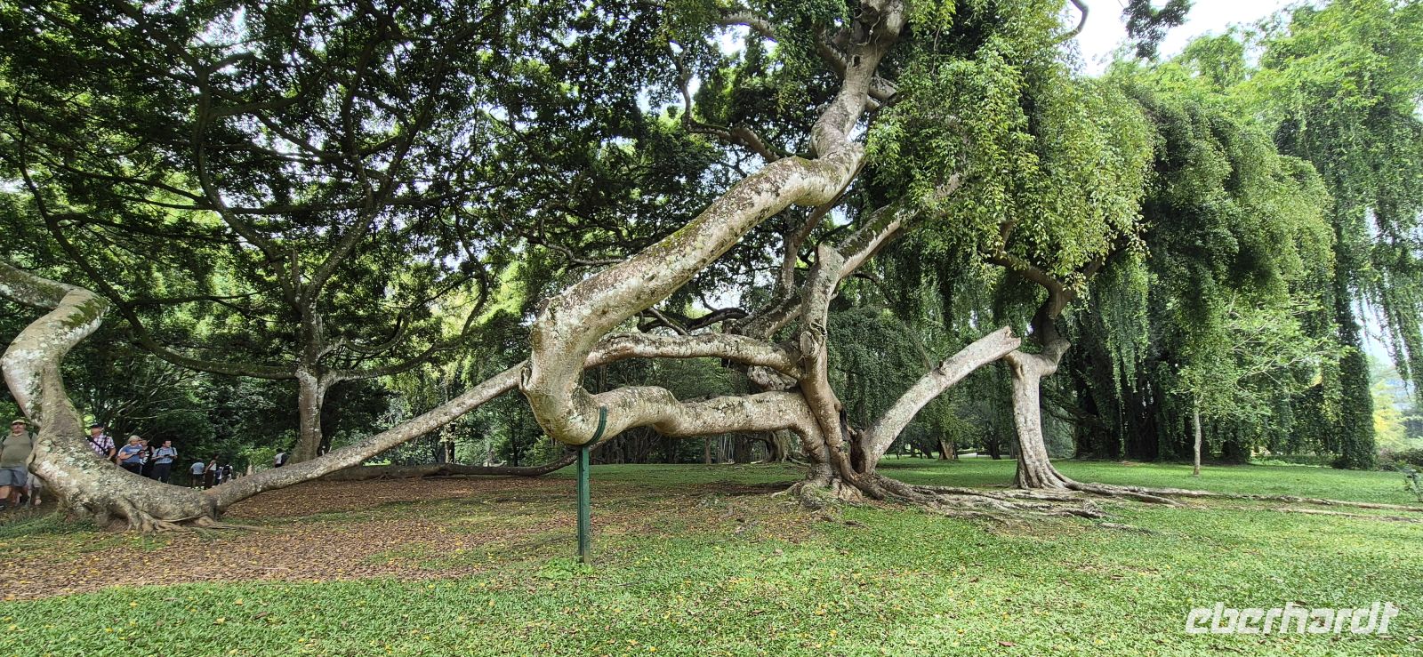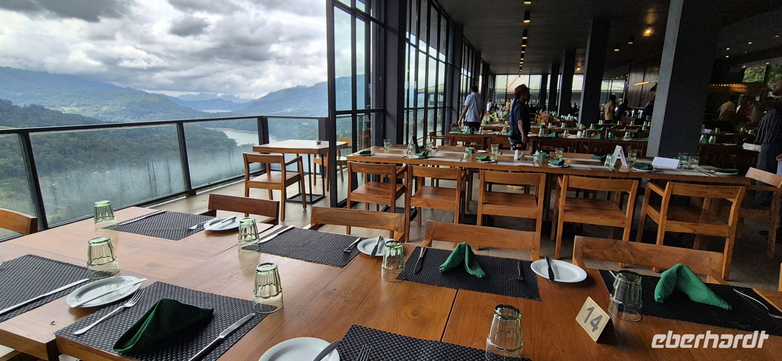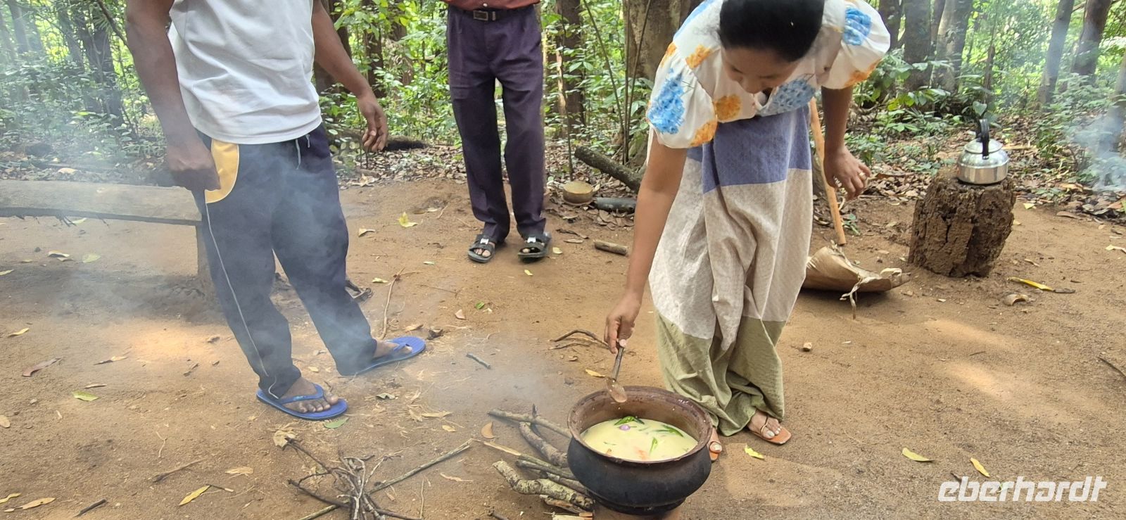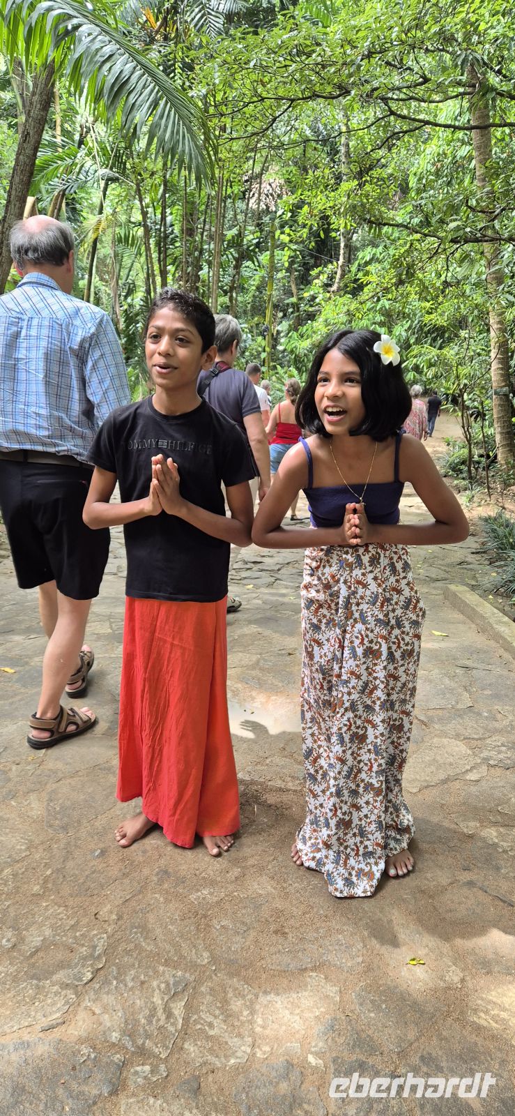 Nach einem reichhaltigen Frühstück im Earls Regency Hotel starten wir zu einem Aussichtspunkt in Kandy, von wo aus wir eine tolle Übersicht und eine noch bessere Aussicht über die Stadt haben. Diese war einst von 1592 bis 1815 die Hauptstadt der Insel, bevor sie durch Colombo ersetzt wurde. Bei sehr angenehmen Wetterverhältnissen steuern wir den nun 200 Jahre alten Botanischen Garten , den sogenannten Royal Botanic Garden Peradeniya, einem der berühmtesten botanischen Gärten Asiens, an und genießen die nächsten Stunden dieses wunderbare Stück Natur, bestaunen die vielen exotischen Pflanzen und Bäume, die hier aus der ganzen Welt zusammengetragen wurden. Neben Flora und Fauna hören und sehen wir auch, dass sich hier viele junge oder potenzielle Paare zum Kennenlernen treffen und je weniger man sich kennt, so näher man am Eingang sitzt und je vermeintlich besser man sich schon für gut befunden hat, umso weiter im Park hineinsitzt man auf den vielzähligen Parkbänken ringsherum. Und tatsächlich, wir sehen so einige junge Menschen ins Gespräch vertieft. Zwischen riesigen Bambussträngen, majestätischen Königspalmen und den weit ausladenden Feigenbäumen spazieren wir entspannt durch die Anlage. Immer wieder bleibt unsere Gruppe stehen, staunt, fotografiert, entdeckt Neues. Der Garten wirkt wie ein lebendiges Museum der Pflanzenwelt Sri Lankas und der restlichen Welt, denn es gibt hier an die viertausend Pflanzen und Bäume. Hier könnte man gut und gerne den ganzen Tag verweilen, jedoch wartet das nächste Naturerlebnis auf uns. Wir fahren weiter zu Mrs. Sanda, die uns schon erwartet. Ihr Küche für das heutige Schaukochen liegt mitten in der Natur, eingebettet in Grün, begleitet vom Lachen ihrer Kinder, die uns herzlich mit Ayubowan begrüßen und dem Duft frischer Gewürze aus der kleinen Außenküche. Alles fühlt sich persönlich, familiär und herzlich an. Sanda und ihre Mutter haben bereits einige Zutaten vorbereitet, doch sie kochen nicht einfach für uns – sie kochen mit uns. Wir dürfen Kokosnuss raspeln, Gewürze mischen, probieren, fragen und ausprobieren. Gemeinsam bereiten wir zwei Gerichte zu: ein aromatisches Linsencurry und einen wunderbar würzigen Auberginensalat. Die beiden Frauen erklären uns, wie wichtig frische Kokosnuss, lokale Kräuter und die richtige Balance der Gewürze sind. Ihre Art, uns einzubeziehen, macht das Erlebnis zu etwas ganz Besonderem. Beim gemeinsamen Essen sitzen wir an einem großen Tisch, genießen die Vielfalt der srilankischen Küche und lassen uns anschließend ein traditionelles Dessert aus Curd & Treacle schmecken. Es ist ein familiärer Nachmittag, mit echter Gastfreundschaft. Nun kehren wir erst mal für einen Abstecher in unser Hotel zurück, machen uns frisch und brechen kurz darauf wieder auf, um uns die berühmten Kandy-Tänze anzusehen. Im Kandyan Cultural Centre erleben wir eine lebendige Vorstellung dieser alten Königstradition. Die Tänze stammen aus den historischen Ritualen des Hochlands, und ihre Energie beeindruckt uns: kunstvolle Kostüme, rhythmische Trommeln, kraftvolle Sprünge, die an akrobatische Tempeltänze erinnern. Besonders faszinierend ist die tänzerische Verbindung aus Spiritualität, Kultur und Geschichte – ein echtes Kulturerbe Sri Lankas. Am Abend kehren wir erfüllt ins Hotel zurück und lassen bei einem schmackhaften Buffet die Erlebnisse des Tages Revue passieren.