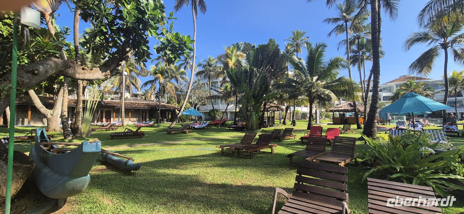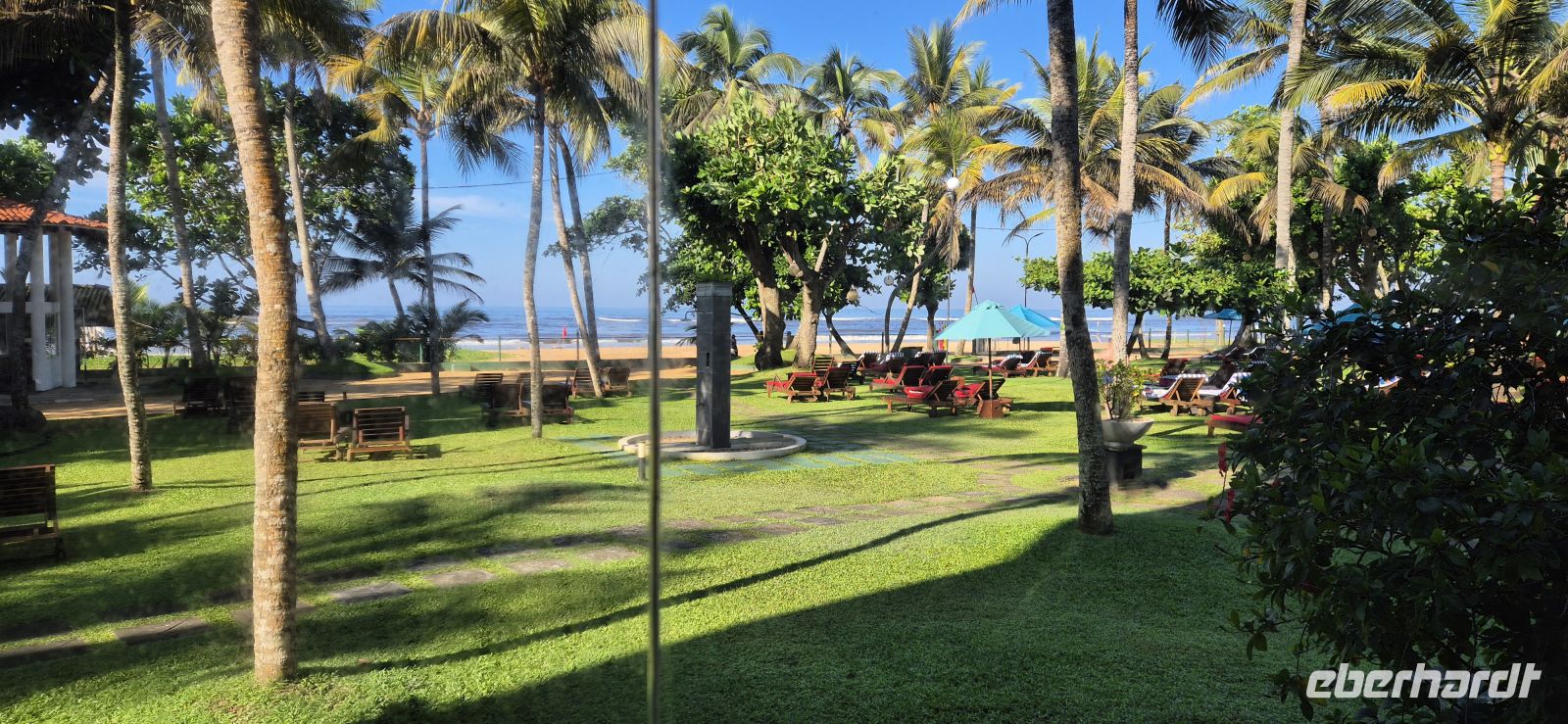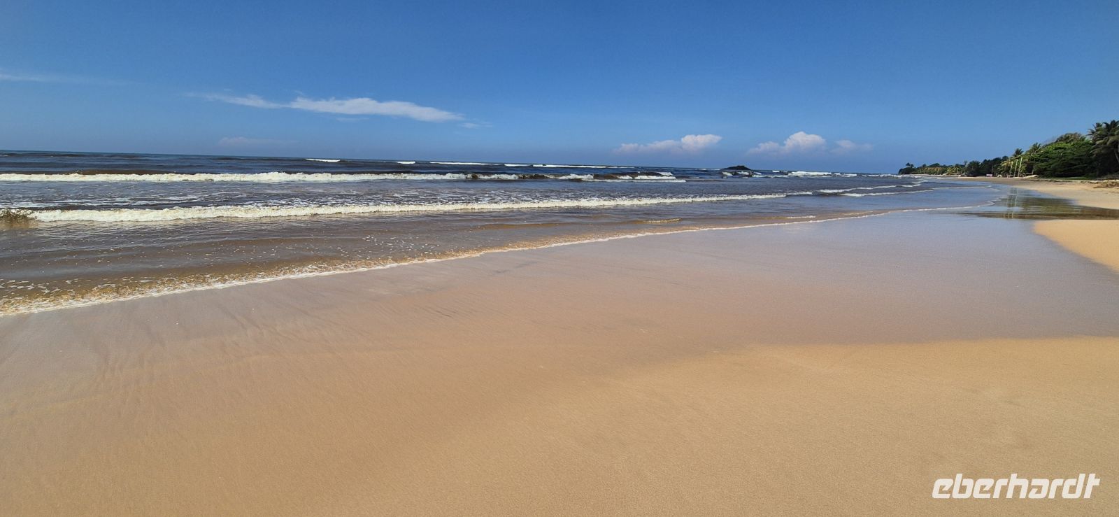 Wir starten ganz entspannt in den Tag, lassen uns Zeit beim reichhaltigen Frühstücksbuffet des Occidental Eden Berowala Hotel. Heute ist ein freier Tag, den jeder individuell gestalten kann. So schlendern die meisten von uns am Strand entlang, der herrlich lang und ohne viele Menschen ist. Schwimmen ist hier zwar nicht möglich, die rote Fahne weht fast ständig und die Strömung ist kräftig – aber der Spaziergang entlang der Küste entschädigt vollkommen. Wer sich abkühlen möchte, gleitet lieber in den Pool und genießt den Blick auf die Palmen. Vormittags zieht es einige von uns in die Stadt Aluthgama. Gemeinsam schlendern entlang der geschäftigen Straße, stöbern in kleinen Läden und so findet sich doch bald ein hübsches Mitbringsel. Zurück im Hotel wartet bereits wieder ein schönes Mittagsbuffet auf uns.