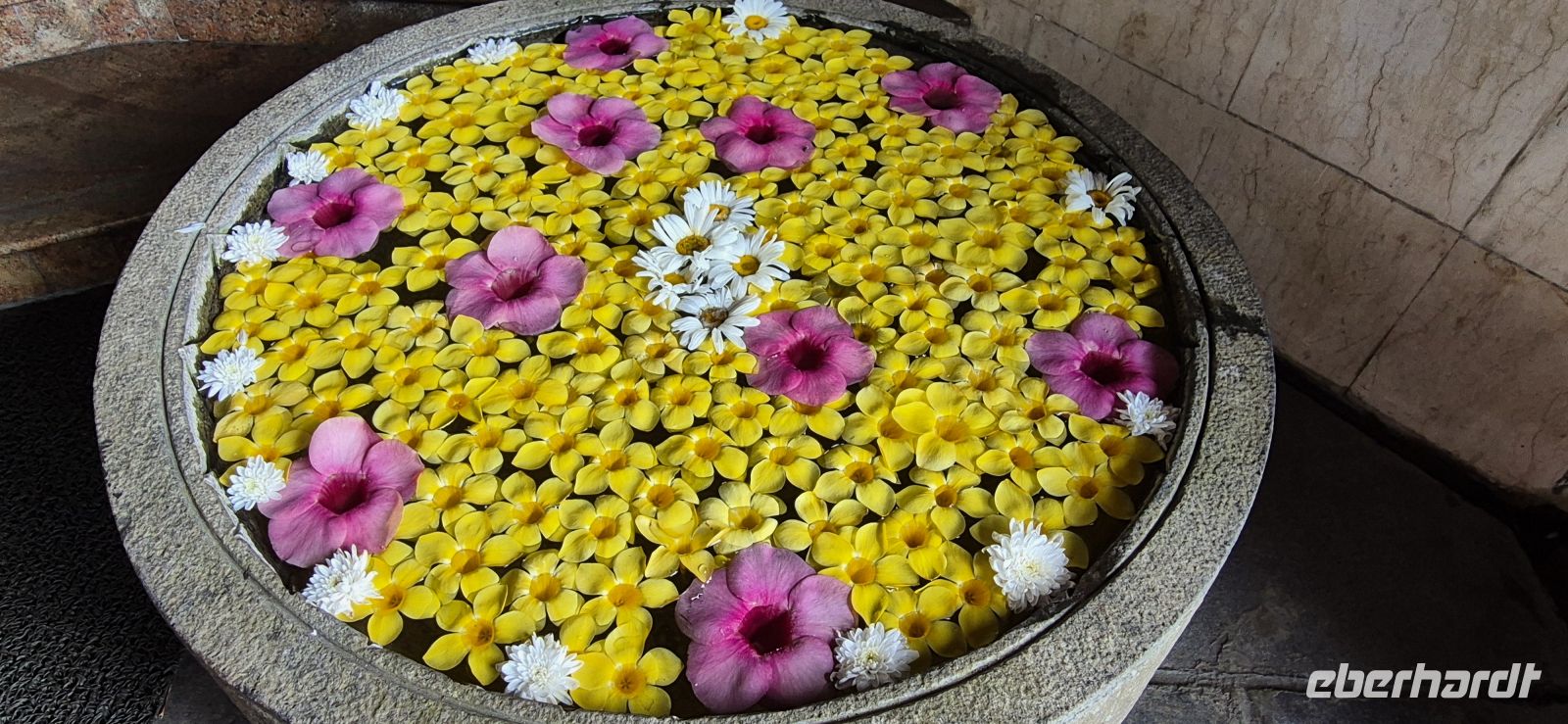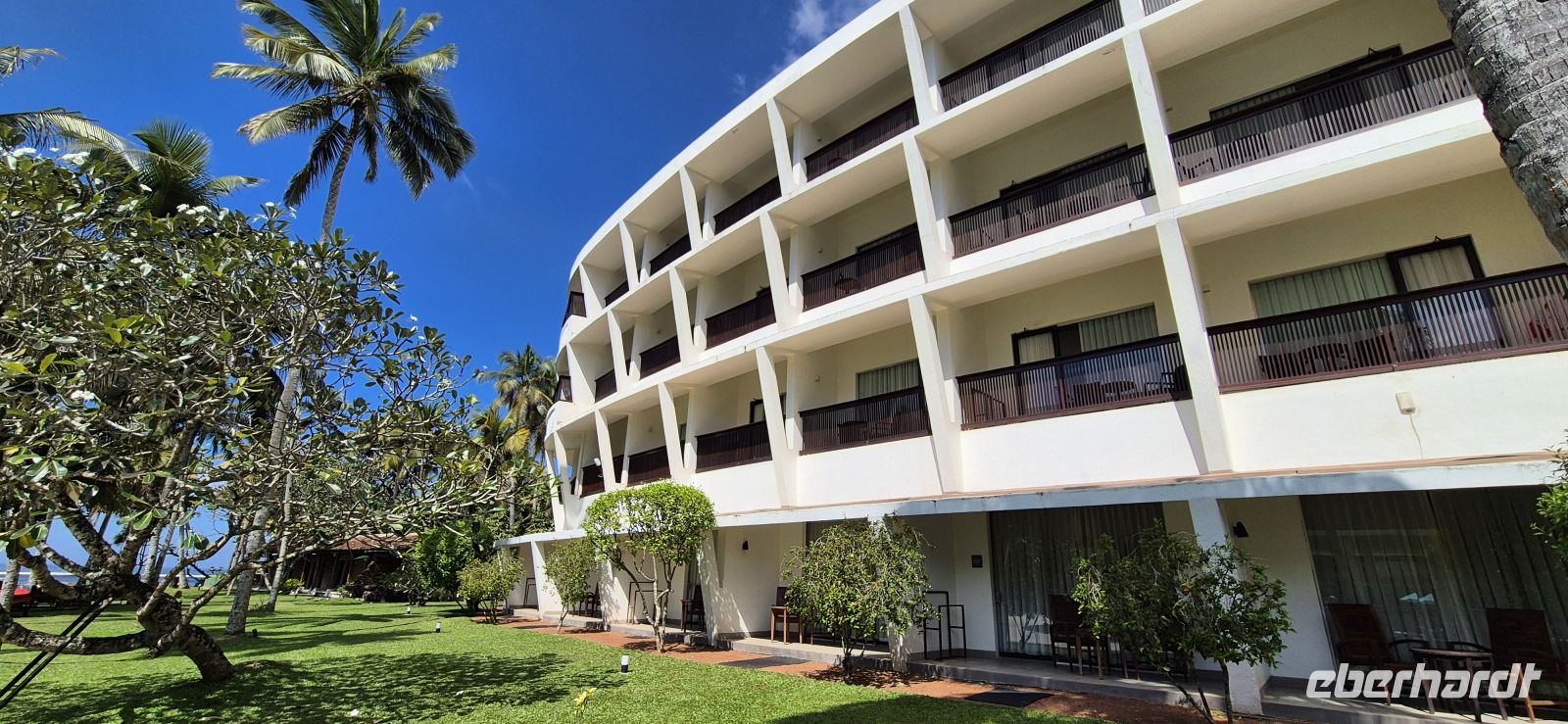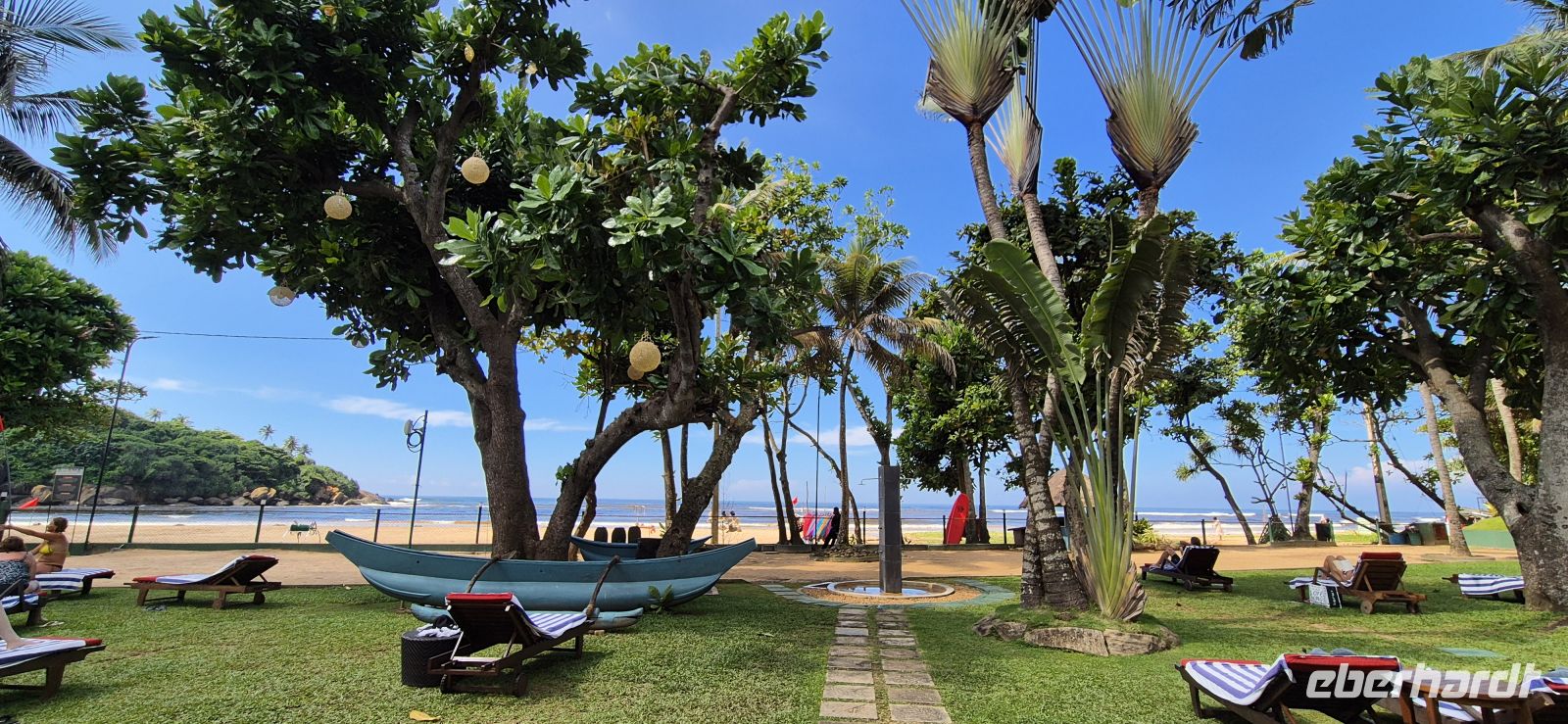 Wir starten ganz entspannt in den Tag, lassen uns Zeit beim reichhaltigen Frühstücksbuffet des Occidental Eden Berowala Hotel. Heute ist ein freier Tag, den jeder individuell gestalten kann. So schlendern die meisten von uns am Strand entlang, der herrlich lang und ohne viele Menschen ist. Schwimmen ist hier zwar nicht möglich, die rote Fahne weht fast ständig und die Strömung ist kräftig – aber der Spaziergang entlang der Küste entschädigt vollkommen. Wer sich abkühlen möchte, gleitet lieber in den Pool und genießt den Blick auf die Palmen. Vormittags zieht es einige von uns in die Stadt Aluthgama. Gemeinsam schlendern entlang der geschäftigen Straße, stöbern in kleinen Läden und so findet sich doch bald ein hübsches Mitbringsel. Zurück im Hotel wartet bereits wieder ein schönes Mittagsbuffet auf uns.