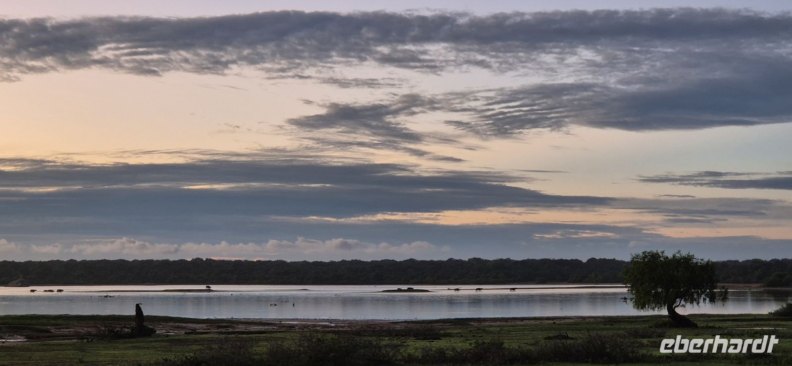 Der Tag beginnt ruhig und angenehm. Der Himmel ist zwar bedeckt, doch es bleibt trocken – perfektes Wetter, um entspannt in den Tag zu starten. Nach dem Frühstück genießen wir die freie Zeit: Einige von uns ziehen gemeinsam mit Sampa an den Strand, denn unsere Lodge liegt mitten im Nationalpark und alleine sollte man hier lieber nicht unterwegs sein. Andere lassen es gemütlich angehen und genießen einfach die besondere Atmosphäre dieses wilden Ortes. Gegen Mittag jedoch kippt die Stimmung des Himmels. Erst ein leichtes Trommeln, dann ein stetig anschwellendes Prasseln – und schließlich gießt es wie aus Kübeln. Als wir uns eigentlich für unsere Nachmittagssafari im Yala-Nationalpark bereitmachen wollen, ist klar: So würden wir weder Tiere sehen noch trocken bleiben. Also entscheiden wir uns kurzerhand, das Abenteuer auf morgen ganz früh zu verschieben. Alle sind sich einig, dass das die beste und sinnvollste Lösung ist. Der restliche Nachmittag gehört uns. Während der Regen unermüdlich auf die Dächer fällt, treffen wir uns in der Bar zu einem geselligen Umtrunk. So unterhalten wir uns prächtig bei netten Gesprächen und machen das Beste aus diesem verregneten Tag. Am Abend werden wir zum Restaurant abgeholt und genießen ein gemütliches Dinner, während draußen weiterhin der Regen rauscht.