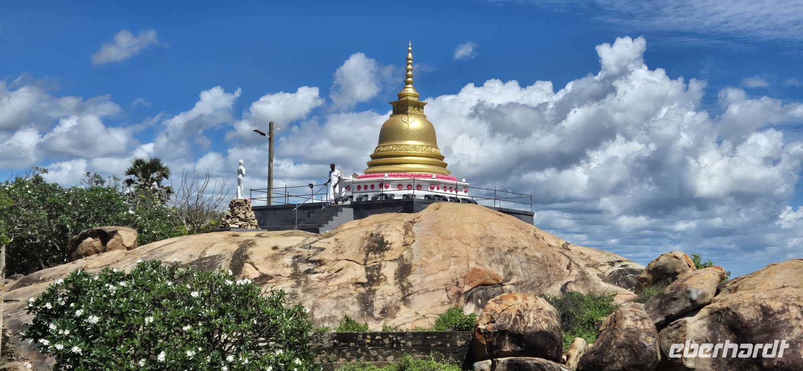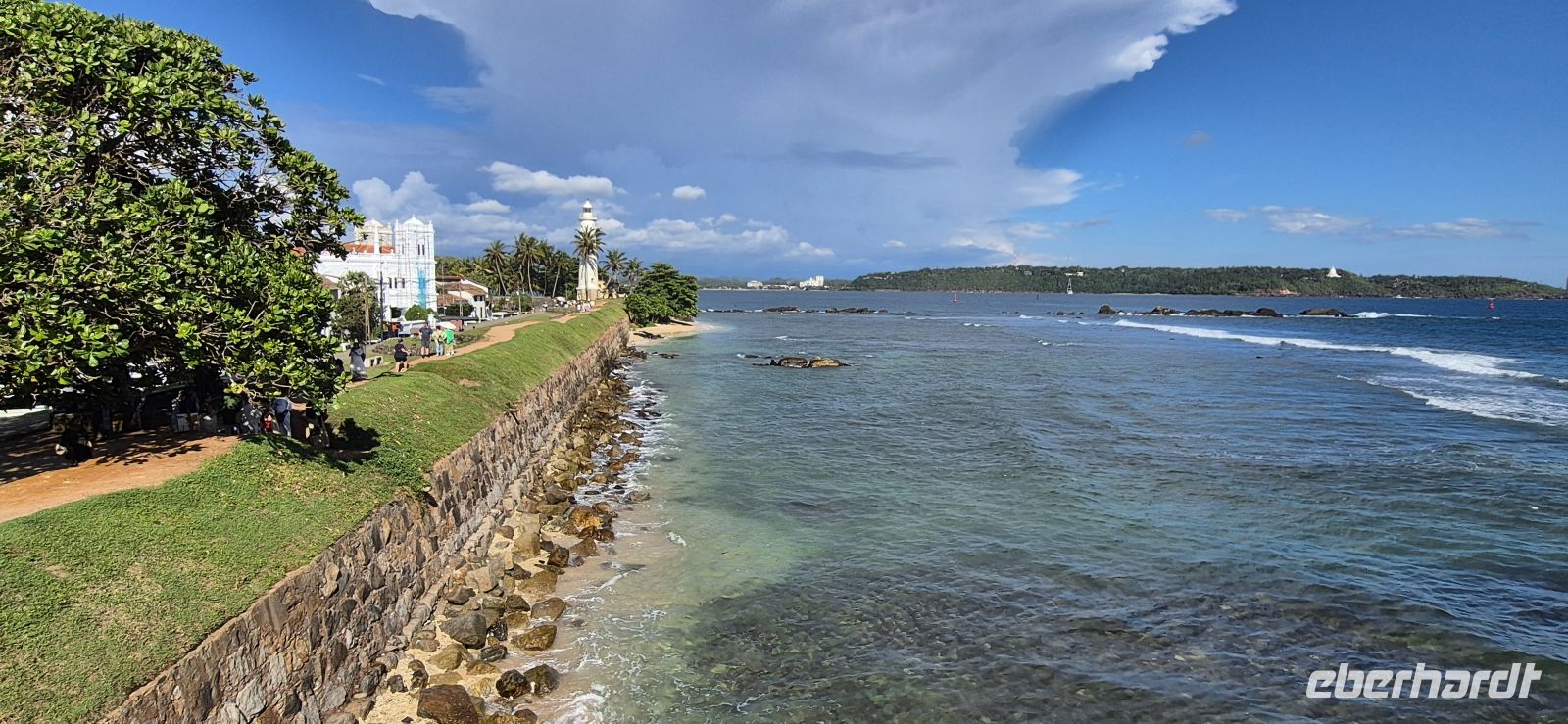 Noch bevor die Sonne aufgeht, werden wir um 05.00 Uhr von unseren Häusern abgeholt und zum Treffpunkt mit den Jeeps gebracht. Wir starten voller Vorfreude verteilt auf vier Fahrzeuge und somit reichlich Platz zu unserer Morgensafari im Yala Nationalpark. Die klare Morgenluft, das sanfte Licht, der langsam anbrechende Tag und die Spannung, welche Tiere sich heute zeigen, begleiten uns, als wir durch das Parktor kurz nach Öffnung um 06.00 Uhr rollen. Die Landschaft strahlt in den golden werdenden Farben des anbrechenden Tages. Wir gleiten über ruhigere Nebenwege, fernab der Hauptstrecke – viel ursprünglicher, viel friedlicher. Während wir durch üppiges Grün und lichte Savannen fahren, entdecken wir eine ganze Reihe von Parkbewohnern: elegante Pfaue, die mit ihrem tollen Gefieder schimmern, Axishirsche, die neugierig und doch scheu zu uns herüberblicken, stolze Adler, die über uns kreisen, Languren, die durch die Äste turnen, und sogar Warane und Wasserbüffel in den Senken. Nashorntukane fliegen über uns hinweg mit ihren prägnanten Schnäbeln. Manche Gäste strahlen besonders, denn sie dürfen gleich drei Leoparden, vermutlich Mutter mit Jungtieren und zwei Elefanten beobachten – ein echtes Safari-Glück! Nach diesem Naturerlebnis fahren wir zurück zur Lodge, wo wir uns frisch machen und ein gemütliches Frühstück genießen, bevor unsere Reise weitergeht. Unser nächster Halt ist der Kirinda Vihara Maha Devi Tempel. Der Anblick der Anlage, auf einem Felsen über dem Meer gelegen, ist beeindruckend. Ein Mönch segnet unsere Gruppe in einer feierlichen Zeremonie – ein stiller, berührender Moment, den wir alle vielleicht so zum ersten Mal erleben. Am frühen Nachmittag erreichen dir die Küstenstadt Galle mit der markanten Galle-Festung. Die Hitze des Tages lässt den Himmel strahlend blau wirken und die Mauern der alten Festungsstadt leuchten. Unter Sonnenschirmen spazieren wir gemütlich durch die kolonialen Gassen, vorbei an kleinen Cafés, Boutiquen und dem historischen Leuchtturm. Der Flair zwischen portugiesischen, niederländischen und britischen Einflüssen verzaubert uns sofort und viele sind mit mir einig-dies ist sicherlich die schönste Stadt des Landes. Am frühen Abend erreichen wir schließlich Beruwala und checken in unser Strandhotel, das Occidental Eden Beruwala Resort, ein. Wir werden herzlich empfangen – mit einem erfrischenden Getränk, warmen Tüchern und einer kleinen Kerzenzeremonie, die sofort für Wohlfühlstimmung sorgt. Die Zimmer sind modern und freundlich gestaltet und es lässt sich hier sicher zwei Tage gut erholen. Beim Abendessen erwartet uns ein abwechslungsreiches Buffet mit vielen internationalen und lokalen Gerichten. Die entspannte Urlaubsatmosphäre passt wunderbar zum sanften Rauschen des Meeres ganz in der Nähe. Nochmals Danke an Eberhardt für das nette Upgrade zu „all-inclusive“, welches wir gerne nutzen und die verschiedensten Getränke ausprobieren werden. Ein langer, erlebnisreicher Tag endet – erfüllt von Tierbeobachtungen, Kulturmomenten und der tropischen Hitze Sri Lankas.