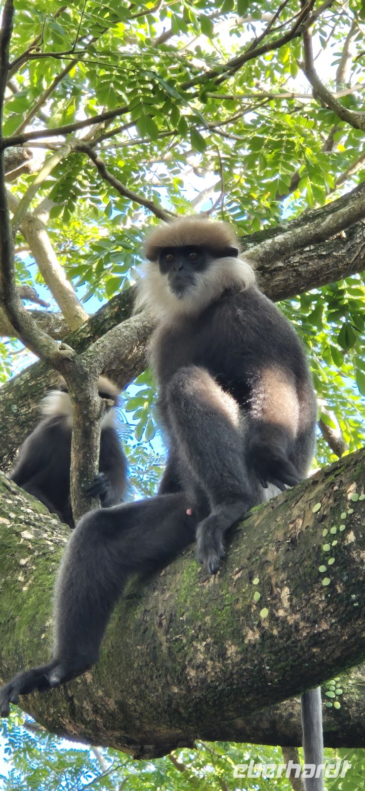 Oben angekommen, öffnet sich eine andere Welt: Die Höhlen von Dambulla, ein UNESCO-Weltkulturerbe, sind ein Ort stiller Andacht und zugleich eine Schatzkammer buddhistischer Kunst. Fünf Höhlen, kunstvoll in den Fels gehauen, beherbergen über 150 Buddha-Statuen – sitzend, liegend, meditierend – und die Wände sind vollständig mit farbenprächtigen Fresken bedeckt. Die Darstellungen erzählen Geschichten aus dem Leben Buddhas, aber auch aus dem Alltag jener Zeit. Es ist kaum zu glauben, dass manche dieser Malereien über zweitausend Jahre alt sind und noch immer farbintensiv und sichtbar sind. Der Tempel gilt als einer der bedeutendsten Wallfahrtsorte des Landes. König Valagamba ließ ihn im 1. Jahrhundert v. Chr. in den Fels schlagen, nachdem er hier während seiner Flucht vor Invasoren Zuflucht gefunden hatte. Als er den Thron zurückeroberte, dankte er den Mönchen, die ihn versteckt hatten, mit diesem beeindruckenden Heiligtum. Beim Abstieg führt der Weg über eine steilere Treppe hinunter – vorbei an kleinen Hutaffen, die sich necken und lustig miteinander raufen, bis zum großen goldenen Buddha, dessen leuchtende Figur schon von Weitem zu sehen ist. Am Ende des Tages erwartet uns die Cinnamon Lodge in Habarana – ein tropisches Paradies mit üppigem Garten, Seerosenteichen und angrenzendem See. Während der Abend in sanftes Licht taucht, klingt der Tag bei einem üppigen Buffet und Live-Musik aus. Nach so vielen neuen Eindrücken ziehen wir uns allmählich auf unsere Zimmer zurück und bereiten uns auf den sportlichen Morgen vor.
