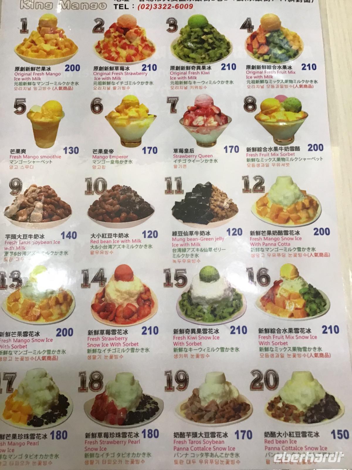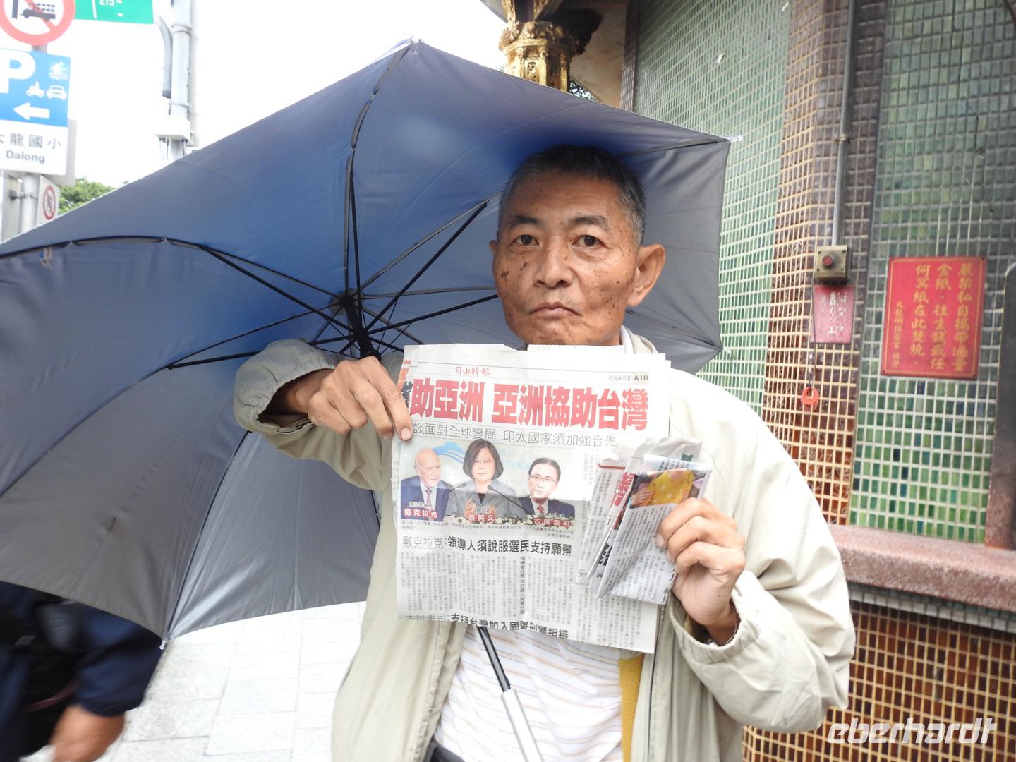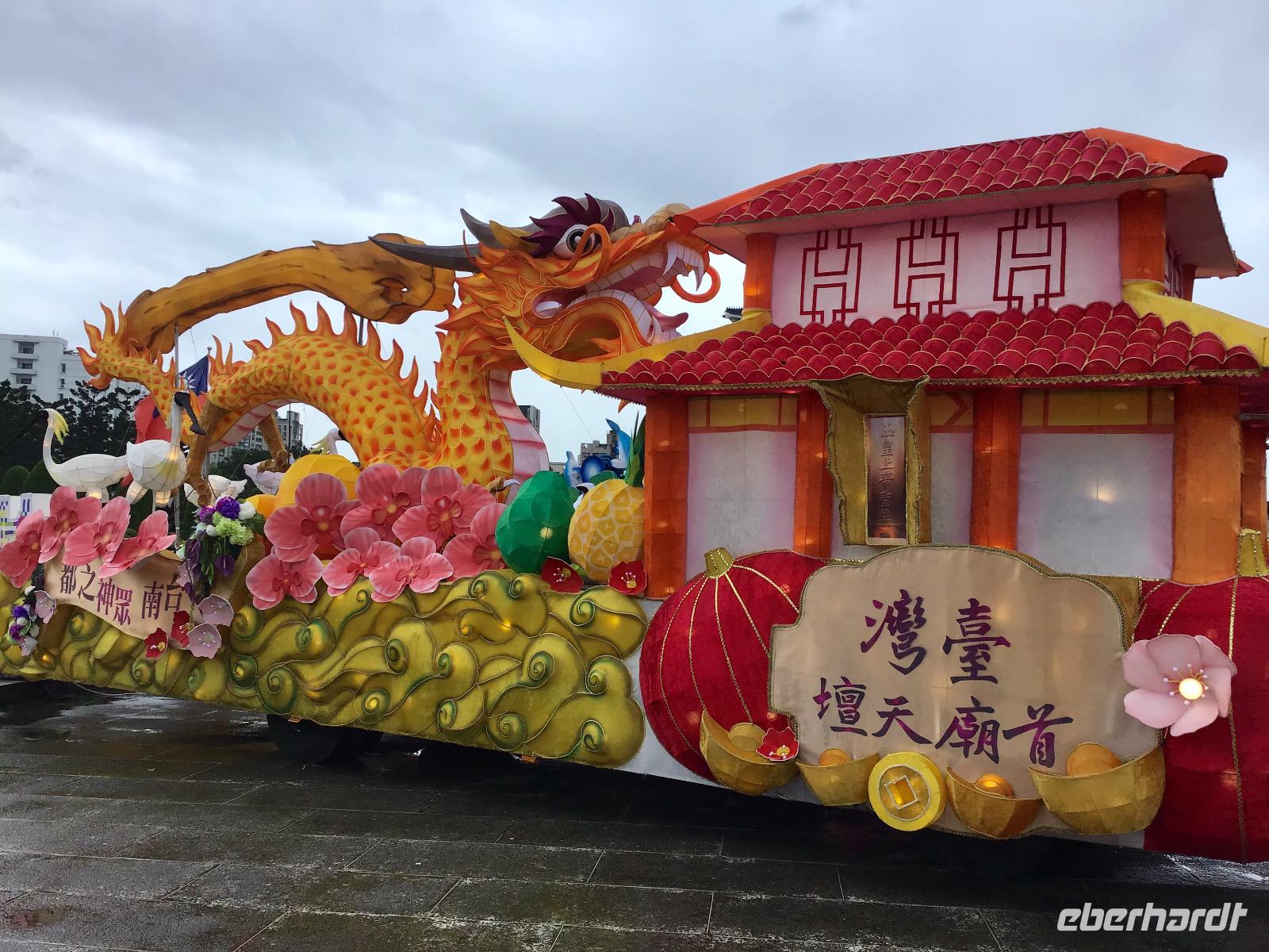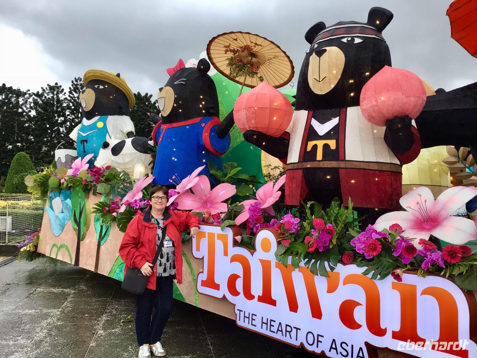 Nach zwölfeinhalb Stunden ist es überstanden. Dafür dauert die Einreiseprozedur nochmal zwei Stunden, erst um Acht treffen wir Li, unseren örtlichen Guide. Wir tauschen etwas Geld um (15 € pro Person und Tag als Tipp), bekommen den an der Wechselstube stehen gelassenen Koffer zurück und fahren nach Taipei. Mit dem schnellsten Fahrstuhl der Welt gelangen wir ins Observatorium des Taipei 101 (sprich one-o-one), von dem wir eine spektakuläre Aussicht auf die Stadt haben. Bis 2007 war der Taipei 101 der höchste Wolkenkratzer der Welt, nunmehr ist er an die zehnte Stelle gerückt. Heute ist es sehr wolkig und die Sicht ist beschränkt. Die Außenplattform ist auf Grund der Wetterlage geschlossen. Wir bewundern trotzdem die Stadt von oben, sobald die Wolkendecke aufreißt und uns ein paar Blicke gönnt. Wieder am Boden zurück, führt uns Li im größten Einkaufszentrum der Stadt, das sich am Fuße des Taipei 101 befindet, in ein Spezialitätenrestaurant für Dumplings. Vorspeisen, die wir uns teilen, stehen bereits auf dem Tisch, dann werden die Dampfnudeln mit verschiedenen Füllungen serviert. Also hungrig steht hier keiner auf. Wieder im Bus überkommt uns jetzt die Müdigkeit. Augen und Ohren fallen zu. Doch noch ist keine Zeit zum Ausruhen. Am Parlamentsgebäude legen wir einen Fotostopp ein. Die frische Luft tut gut. Kurz danach erreichen wir die Chiang-Kai-Shek Gedächtnishalle. Davor sind etliche bunte Wagen aufgestellt, gestern gab es einen Umzug zum Nationalfeiertag. Chiang Kai Shek thront allmächtig in seiner Gedächtnishalle, bewacht von zwei Gardesoldaten. Links und rechts von der Gedächtnishalle befinden sich noch Oper- und Konzerthaus, beide sind aber geschlossen. Jetzt fahren wir endlich ins Hotel und fallen für zwei Stunden müde in die Betten. 18 Uhr treffen wir uns wieder und spazieren zur Yongkang Street. Links, links, rechts, links - das kann ja so schwer nicht sein. Nur eine Querstraße laufen wir zu viel, dann haben wir's. Hier reiht sich Restaurant an Restaurant, Laden an Laden. Am Ende der Straße entdecken wir ein kleines Etablissement, das unseren Vorstellungen entspricht, nicht zu fein, aber auch keine Garküche. Bei scharfen Nudeln verbrennt der Mund, aber lecker ist es allemal. Mittels I-Phone Übersetzungsapp können wir Tischnachbarn mitteilen, dass wir aus Deutschland sind. Ende der Kommunikation. Die jungen Männer, die unsere Bestellungen aufnehmen, sind herzallerliebst, sie geben sich so viel Mühe, damit es uns gut geht. Die Mutter des Hauses wird zu 7/11 geschickt, um für uns Plastikgabeln einzukaufen - DANKE! Auf dem Rückweg zum Hotel kehren wir bei King Mango ein und verputzen eine Riesenportion Mango-Eis.