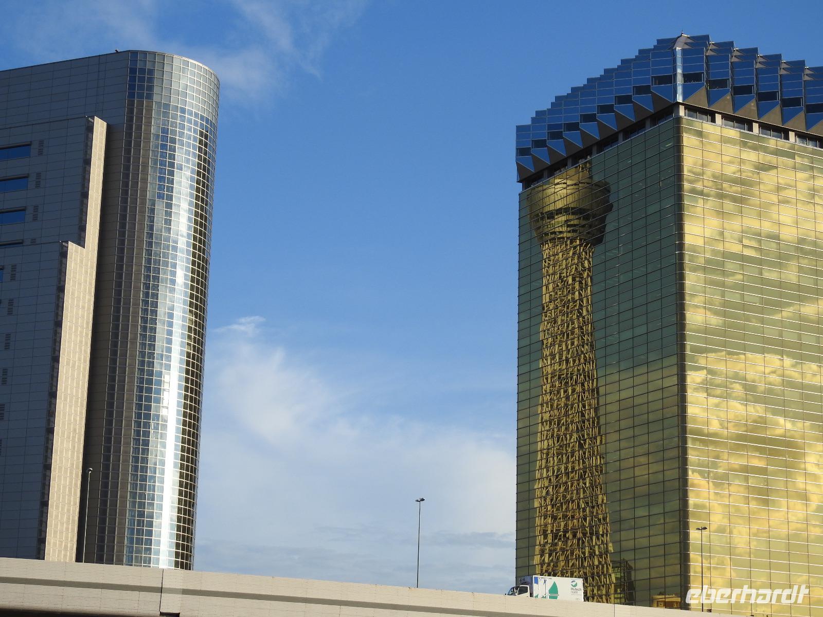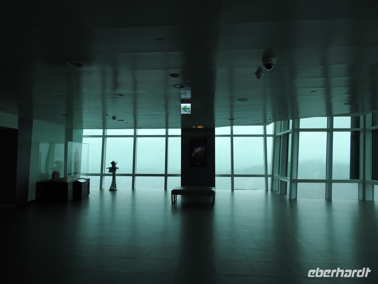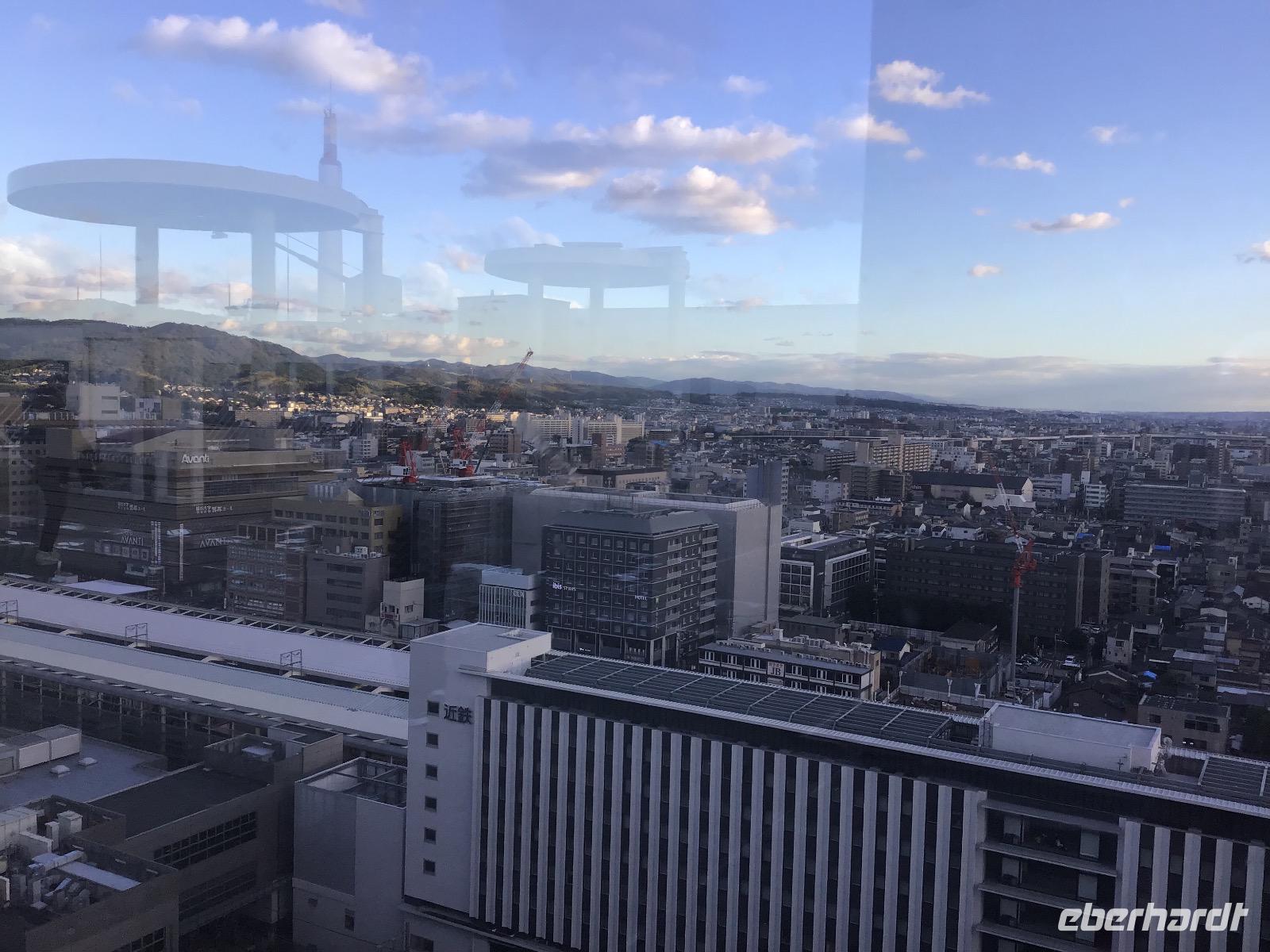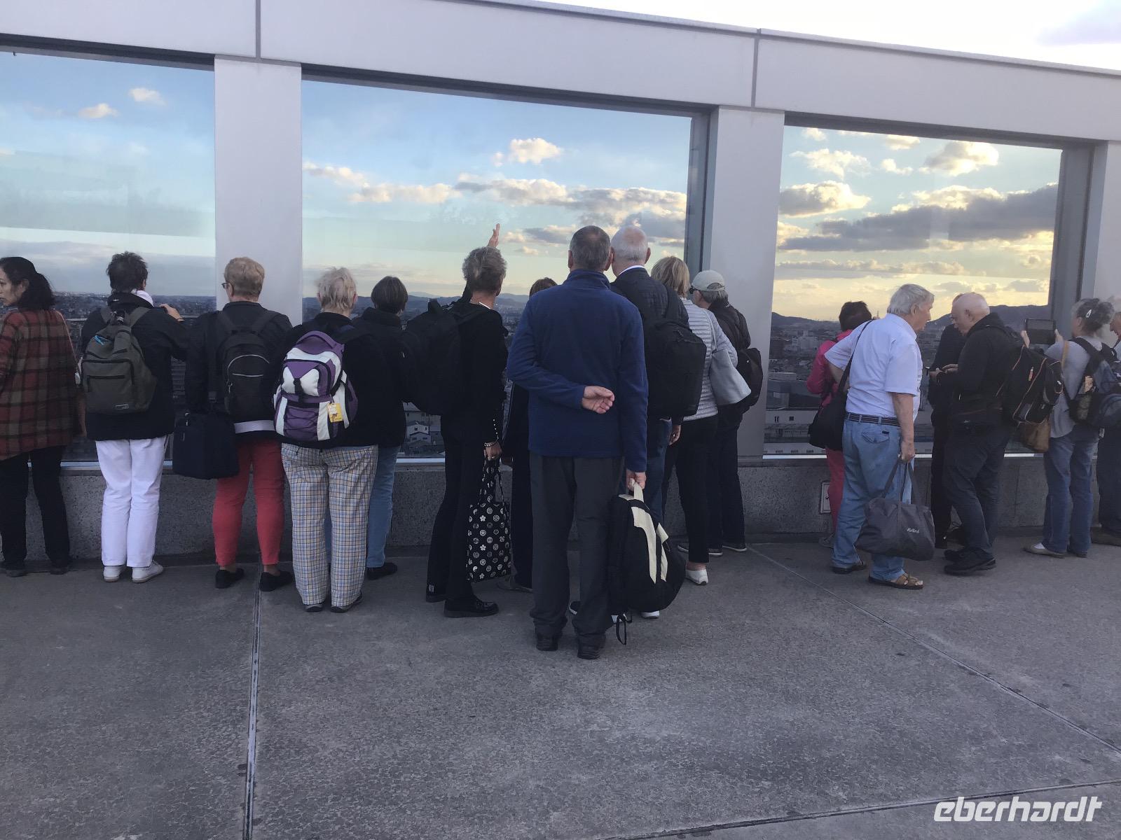 Frühstück gibt es heute in der 25. Etage mit herrlichem Ausblick auf die Stadt. Auffällig ist, dass die Fenster blank geputzt sind. Auch aus den Zimmerfenstern im 18. Stock haben wir einen schönen Blick, aber die Fenster sind nicht so sauber wie im Restaurant.