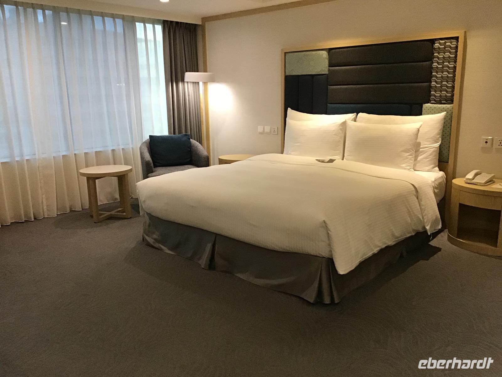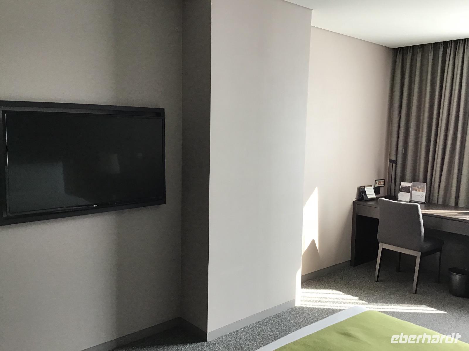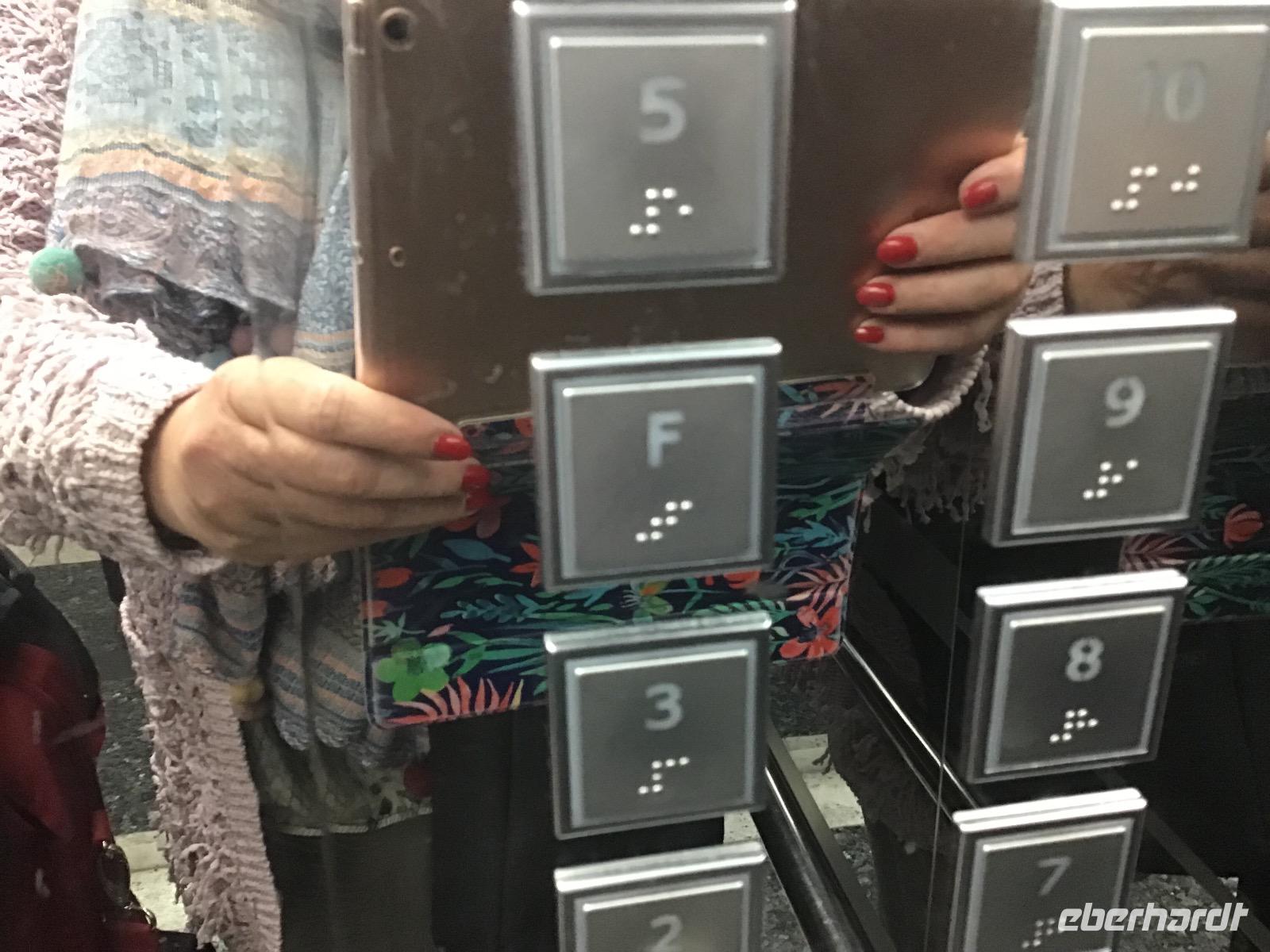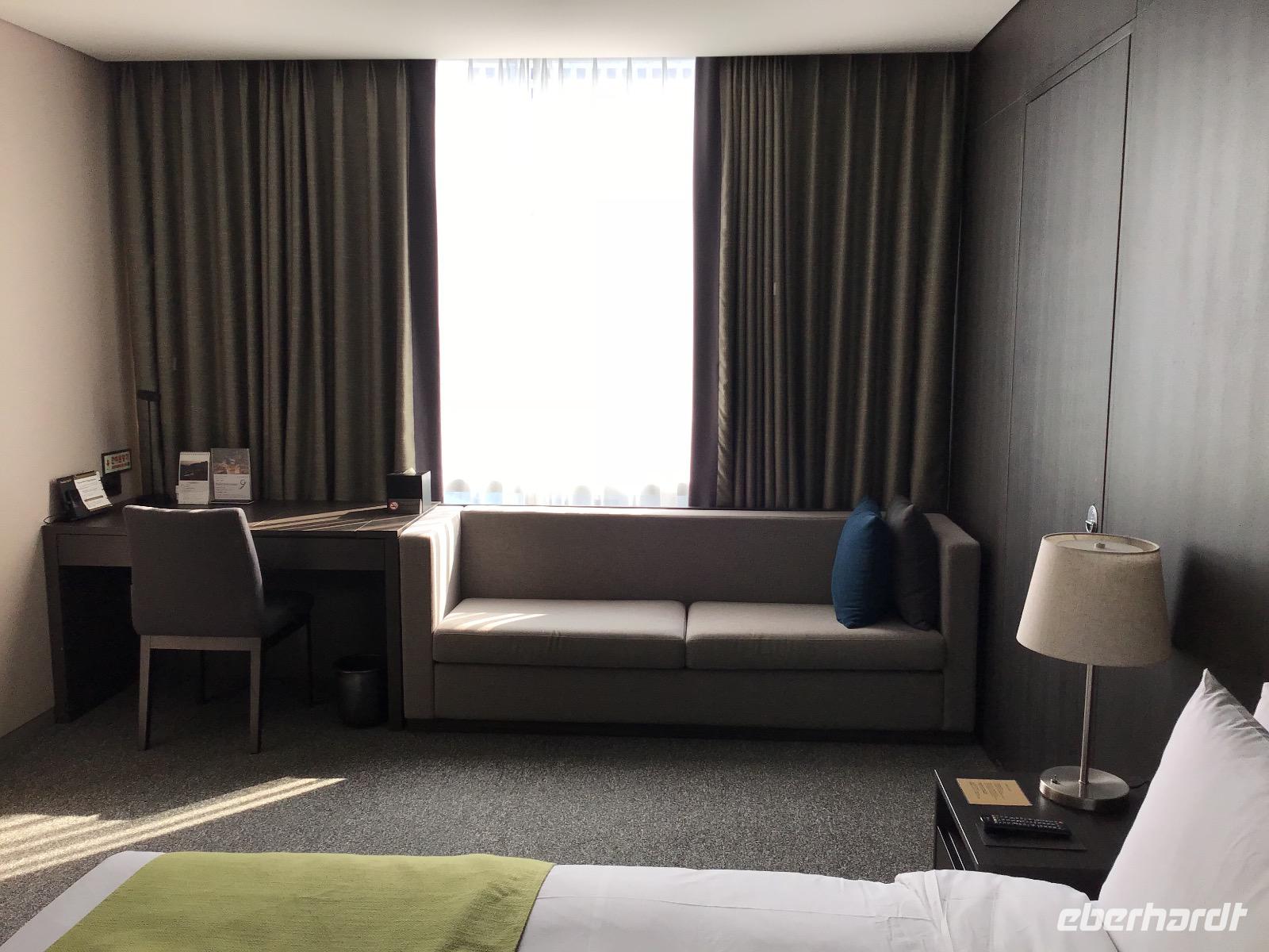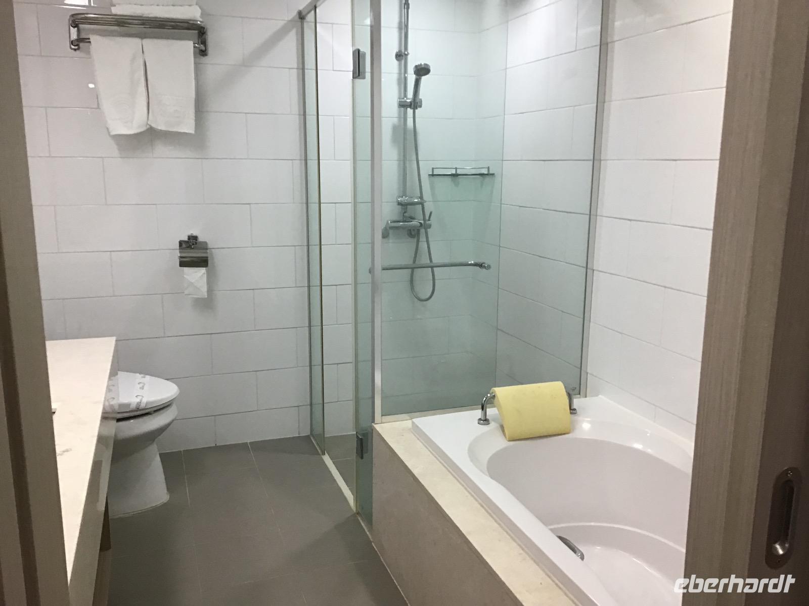 Frühstück gibt es heute in der 25. Etage mit herrlichem Ausblick auf die Stadt. Auffällig ist, dass die Fenster blank geputzt sind. Auch aus den Zimmerfenstern im 18. Stock haben wir einen schönen Blick, aber die Fenster sind nicht so sauber wie im Restaurant.