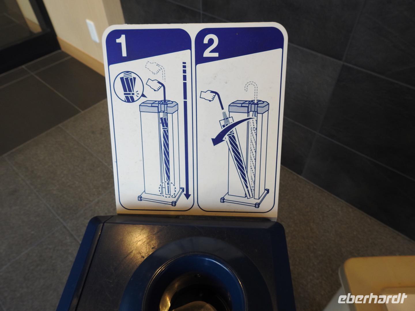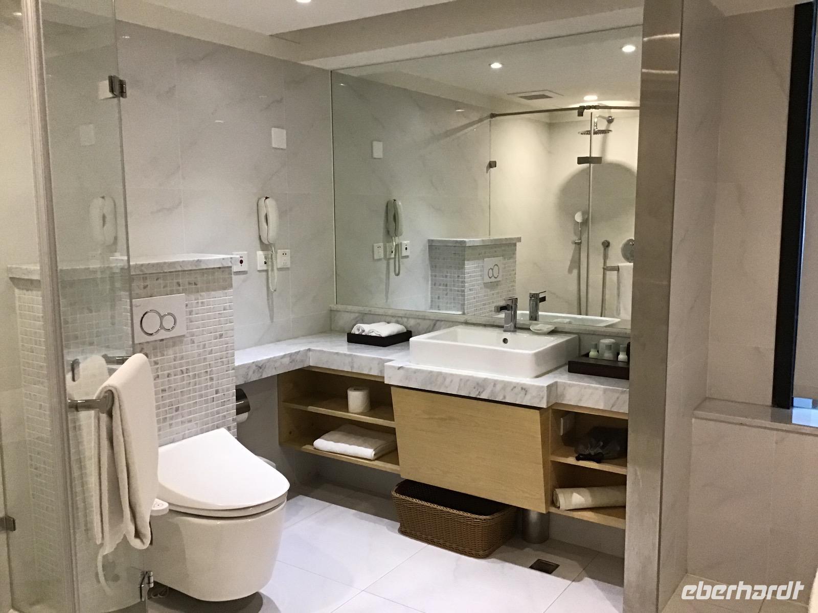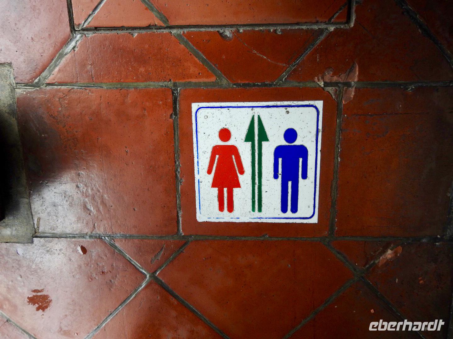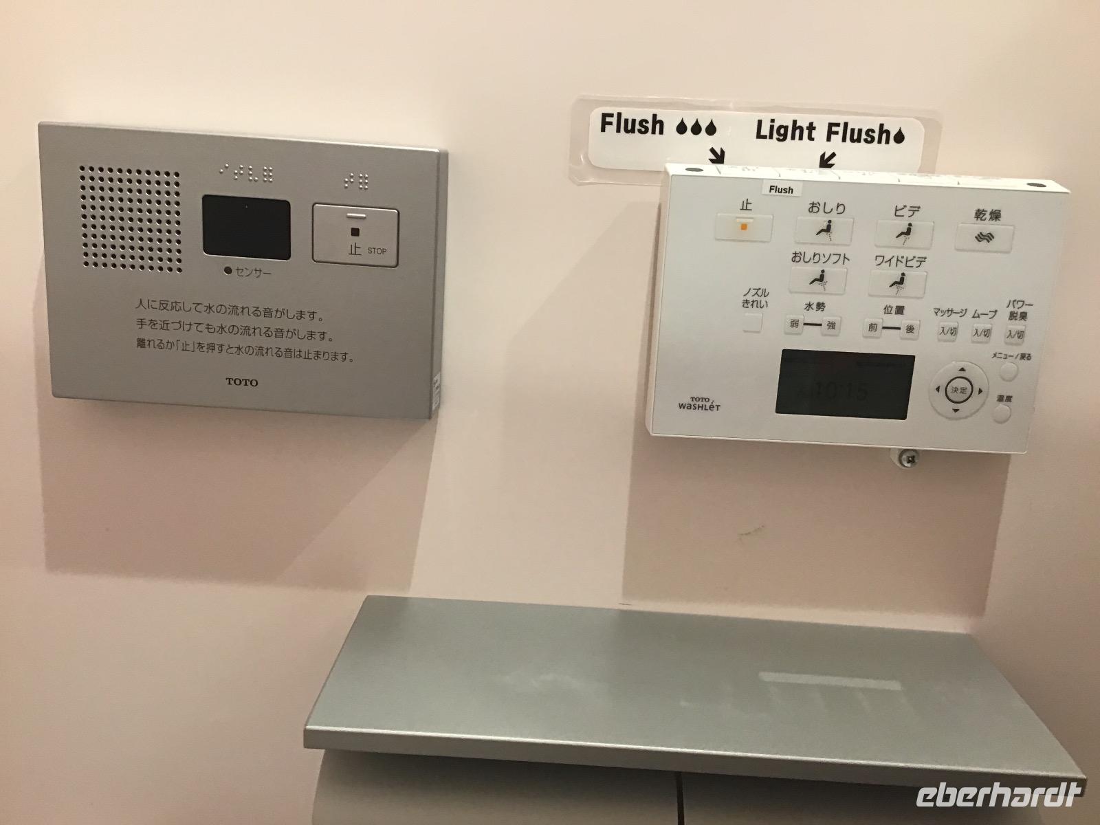 Als krönenden Abschluss probiere ich heute die Funktionen meines WCs aus. Vorsichtig hatte ich schon mit etwas Abstand die verschiedenen Tasten gedrückt, ohne dass sich etwas tat. Kaputt. Denkste. Mit Draufsitzen geht's nämlich. Erster Knopf: Wasser trifft auf Hinterteil - mit erstaunlicher Zielgenauigkeit. Zweiter Knopf für Damen - passt auch. Insgesamt könnte das Wasser etwas wärmer sein, aber sonst... nicht schlecht. Der dritte Knopf dient dann dazu, sich das gesamte Unterteil trocken föhnen zu lassen. Witzig.