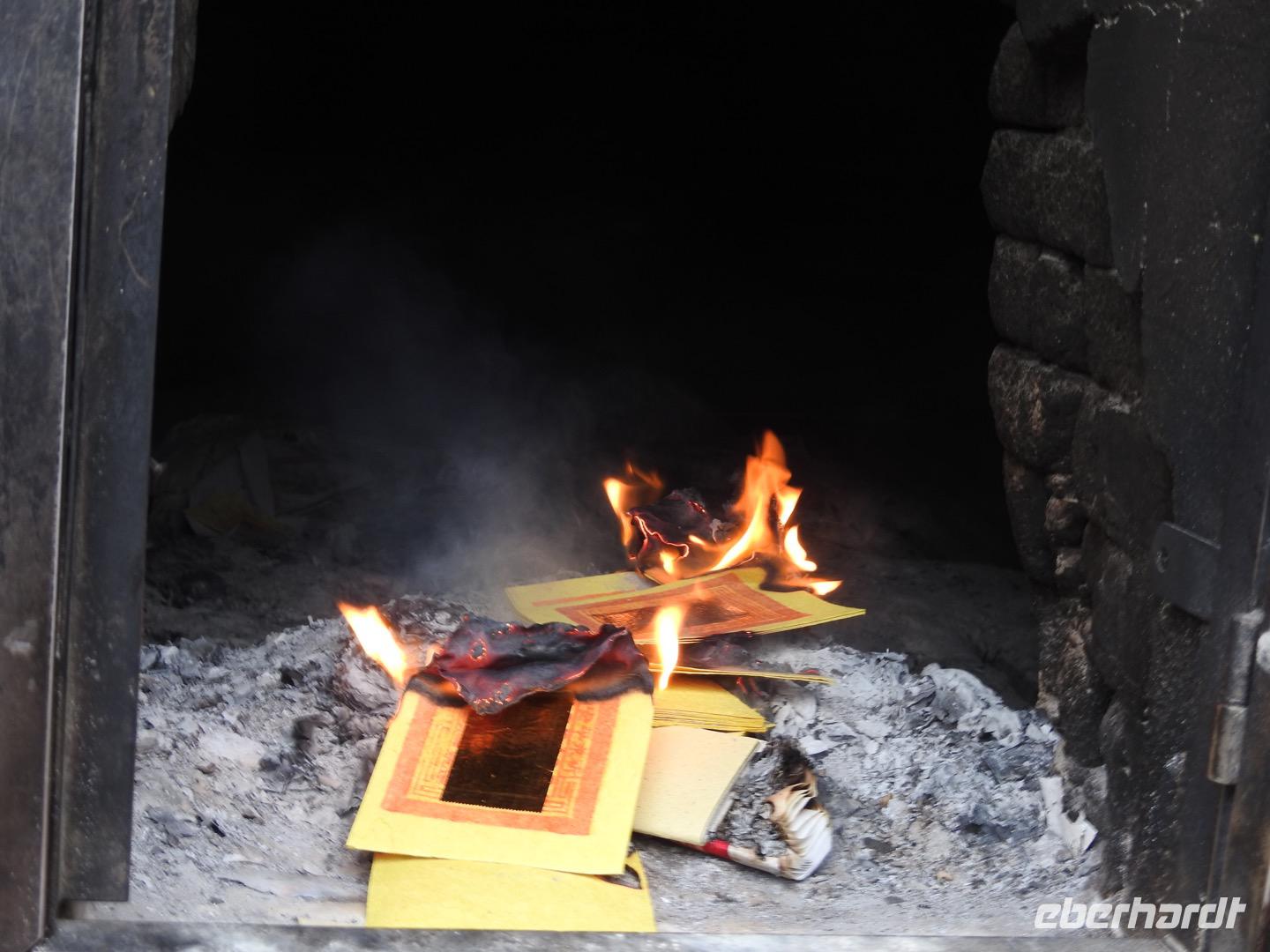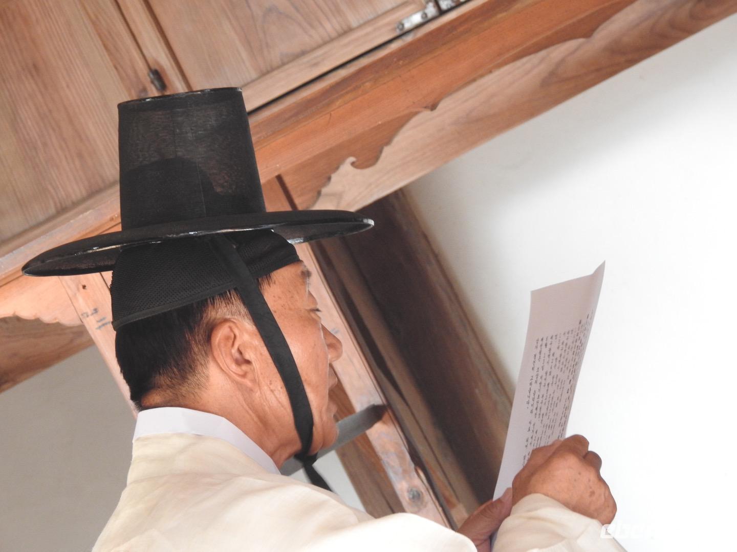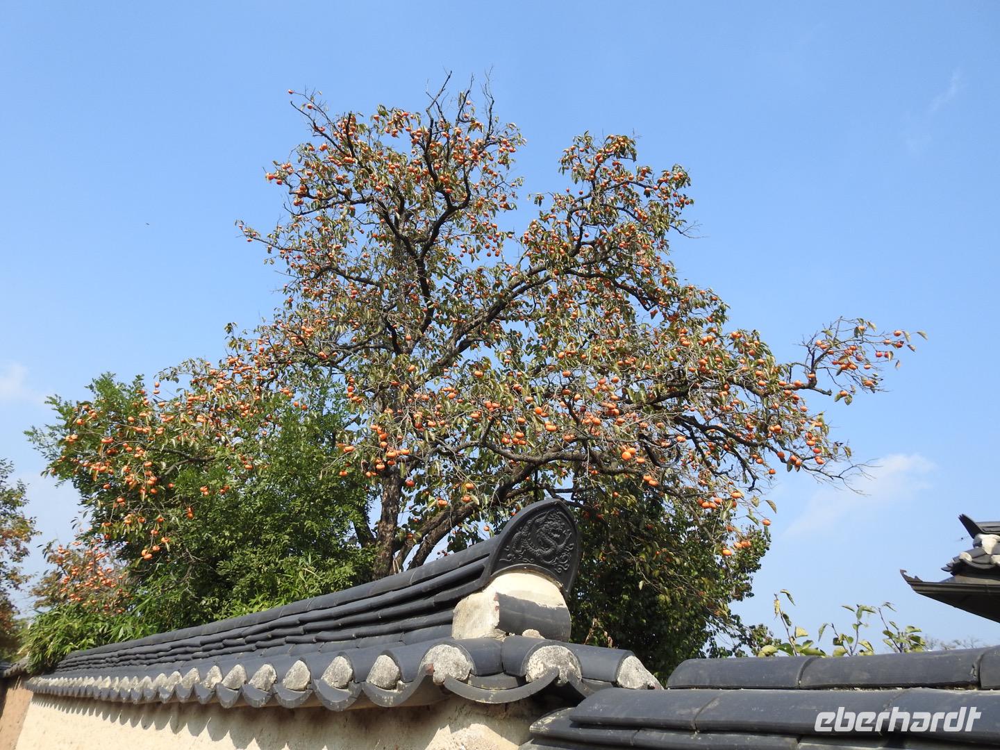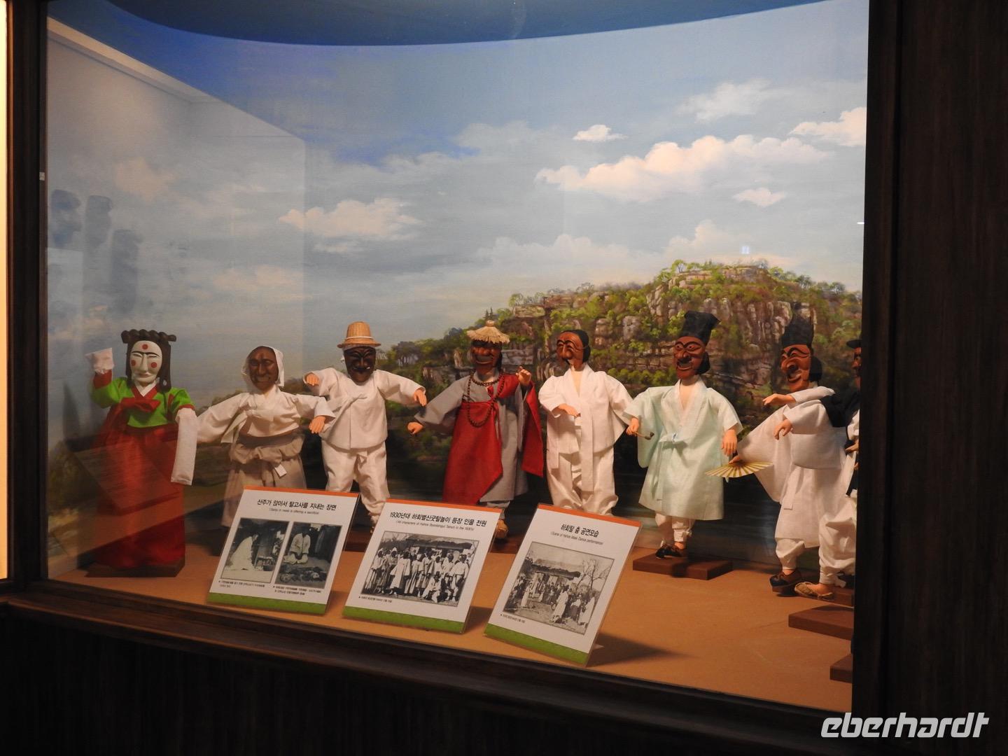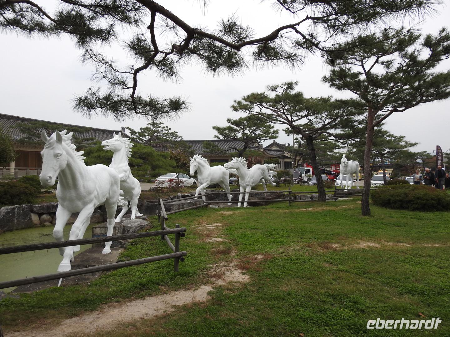 Wir besuchen das Hahoe-Dorf in Andong. Es scheint als wären wir die einzigen Gäste heute. Die Suche nach einem schnellen und preiswerten Mittagessen gestaltet sich komplizierter als gedacht, dennoch können wir uns bald an einer leckeren und liebevoll zubereiteten Nudelsuppe laben. Nun beginnt unser Rundgang durch das Hahoe-Dorf, dass seit 600 Jahren von einer einzigen Familie bewohnt wird. Heute muss man, wenn man das Dorf besichtigen will, Eintritt bezahlen. Viele Häuser stehen leer, einige sind noch bewohnt. Uns erwartet ein besonderes Erlebnis. Zwei Männer, die aus diesem Dorf stammen, sind kürzlich zu Bürgermeistern gewählt worden. Heute sind sie nach Hause gekommen, um ihren Ahnen für ihren Erfolg zu danken. Dies erfolgt in einer Zeremonie im Geisthaus. Als sie mitbekommen, dass wir ihnen mit unseren Fotoapparaten auf den Fersen sind, laden sie uns freundlich ein, an der Zeremonie teilzunehmen. Die Männer sind in traditionelle Kittel gekleidet und außer den Bürgermeistern sind noch einige andere, ähnlich gekleidete, Männer anwesend. Sie nehmen barfuß auf einer Strohmatte vor dem Geisthaus Aufstellung. Drinnen werden Räucherstäbchen angezündet, eine Obstschale ist aufgestellt und per Gesang und vielen Verbeugungen werden die Ahnen informiert. Nach der Zeremonie verlassen die Männer ganz unspektakulär das Gelände und es wird aufgeräumt. Als die Obstschale weggetragen wird, dürfen wir von den Opfergaben naschen.