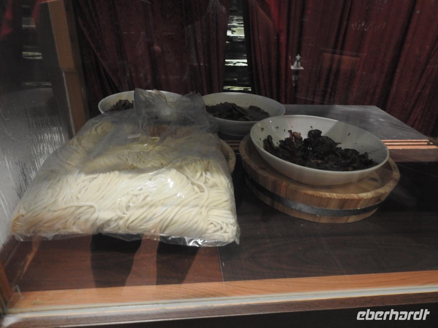 Nun wollen wir wieder Nudelsuppe essen. Und wieder zeigt sich, dass es nicht so einfach ist, Nudelsuppe zu bekommen. Diese wird immer frisch zubereitet und wenn es im Restaurant voll ist, dann heißt es: heute keine Nudelsuppe. Ko findet aber doch eine kleine Gaststube, wo die Tante uns Nudelsuppe zubereitet.