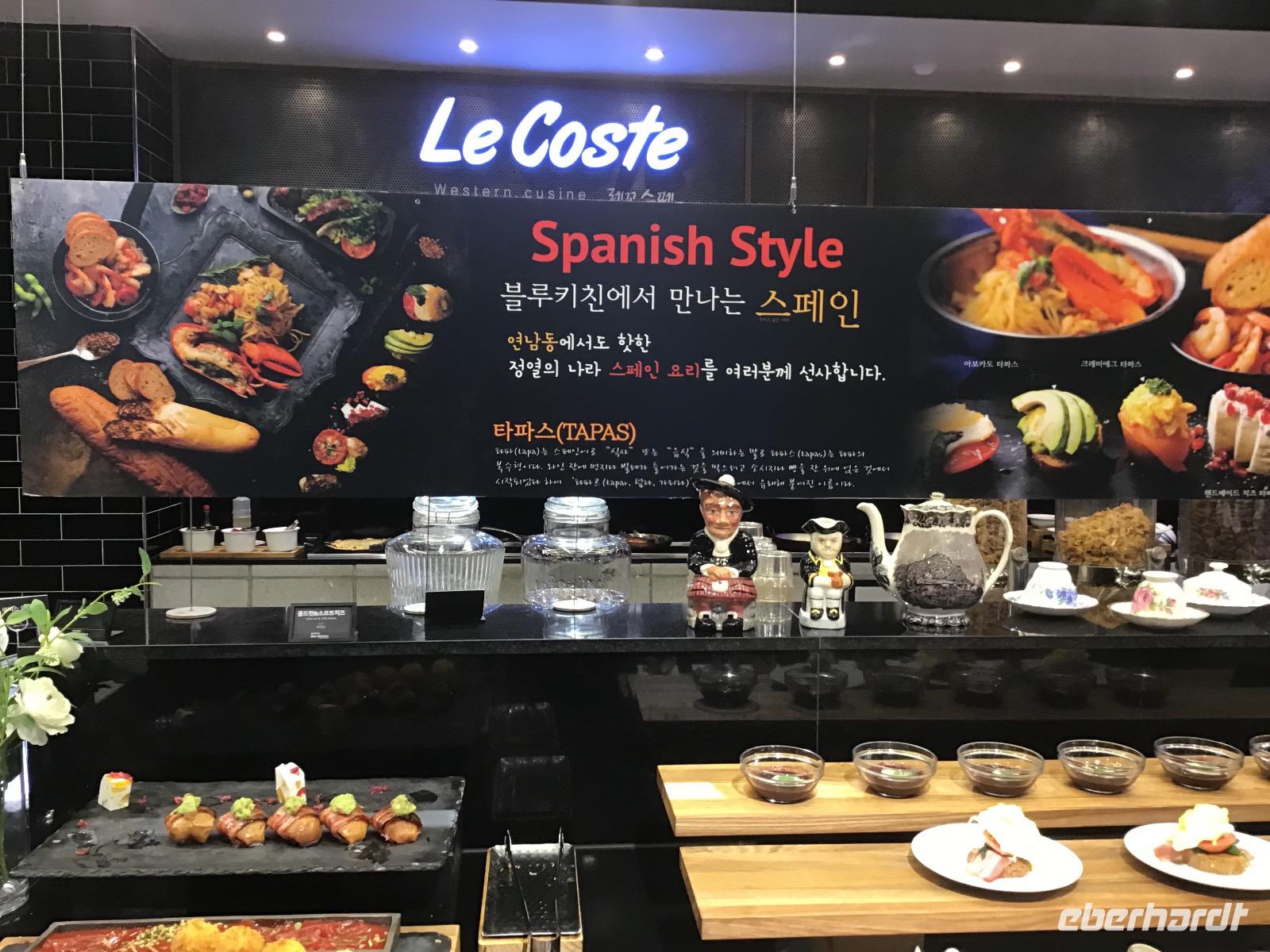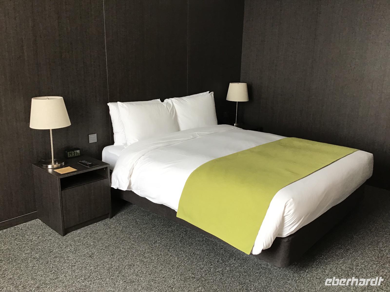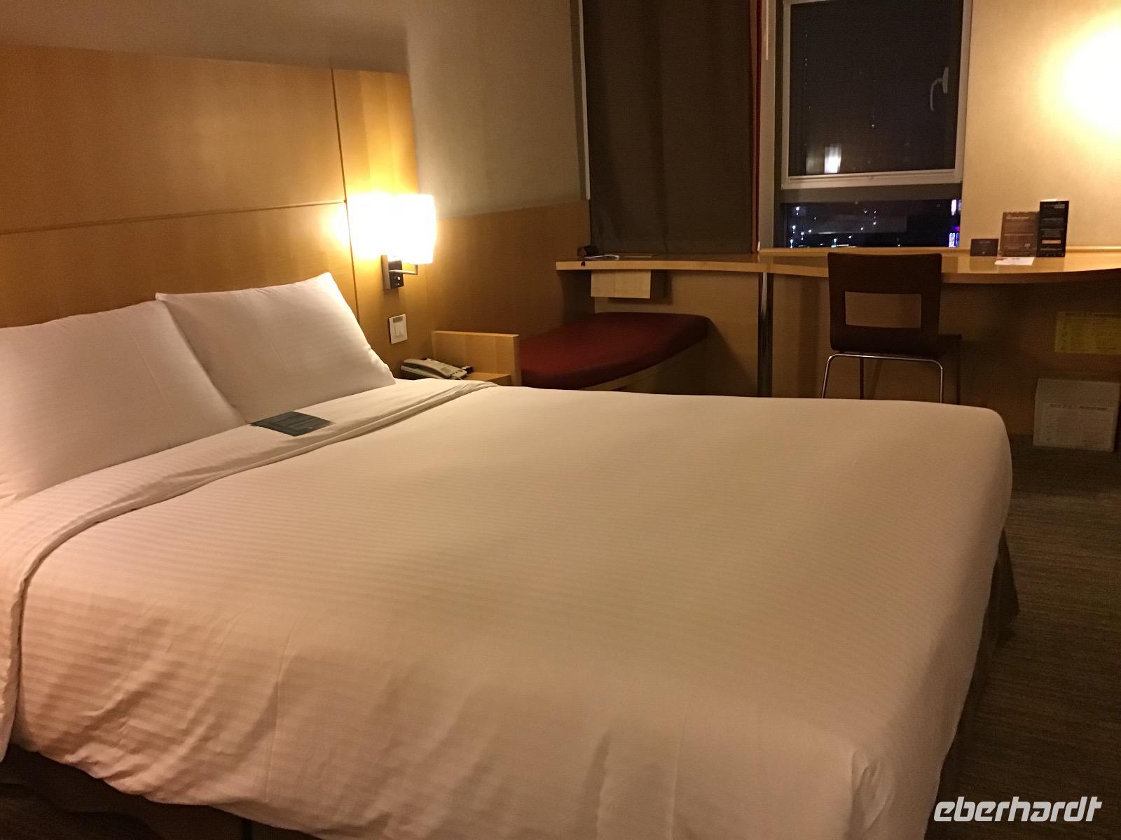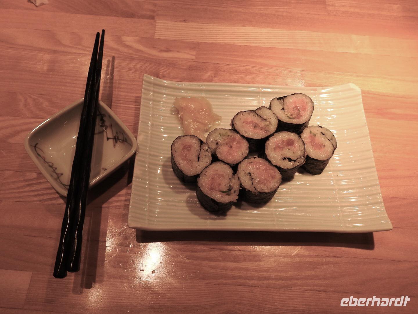 Das Abendessen nehmen wir im Hotelrestaurant ein. Am Buffet gibt es feine japanische Speisen, aber auch Nudeln mit Tomatensoße.