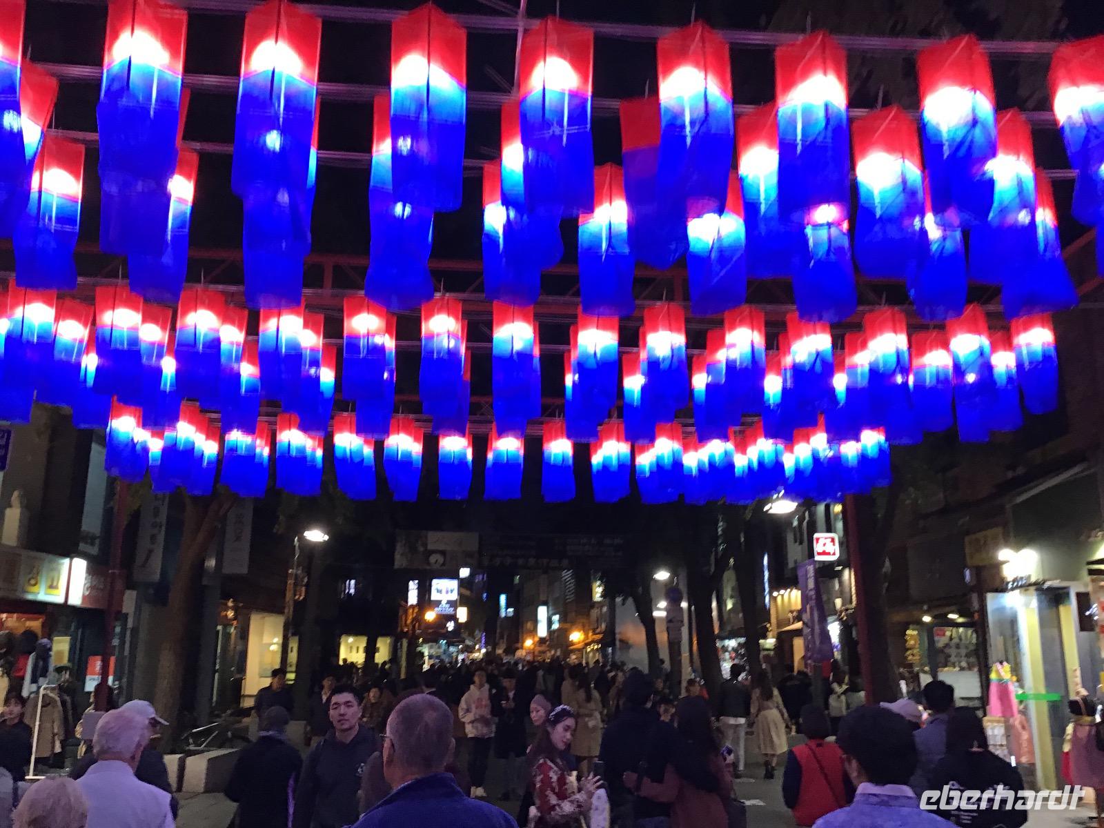 Abends kehren wir in ein typisch japanisches Restaurant ein. Wir müssen die Schuhe ausziehen und sitzen (gefühlt) am Boden. Nach und nach werden japanische Häppchen gereicht, so lange, bis alle satt sind. Nach dem abschließenden Verdauungsspaziergang fallen wir müde in die Betten.