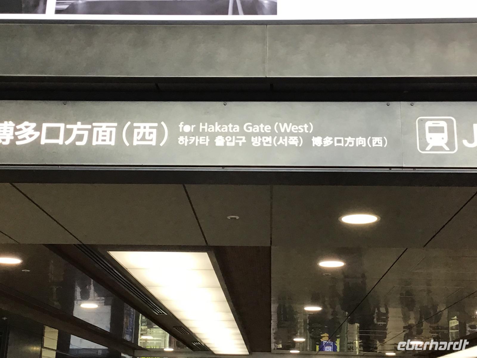 Nach ca. drei Stunden erreichen wir Fukuoka bzw. Hakata. Hakata heißen nur noch der Hafen und der Bahnhof, alles andere wurde schon vor hunderten Jahren umbenannt, nachdem zwei Städte fusionierten. Wir müssen wieder die Einreiseprozedur über uns ergehen lassen, das Gepäck wird durchleuchtet und kontrolliert, dass wir kein Obst, kein Fleisch und keine anderen verbotenen Sachen dabei haben. Unsere örtliche Reiseleiterin, Birgit, erwartet uns.