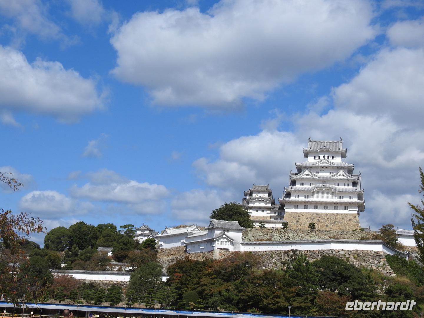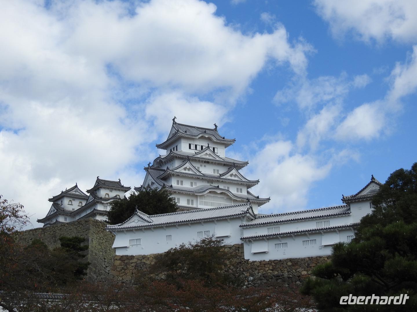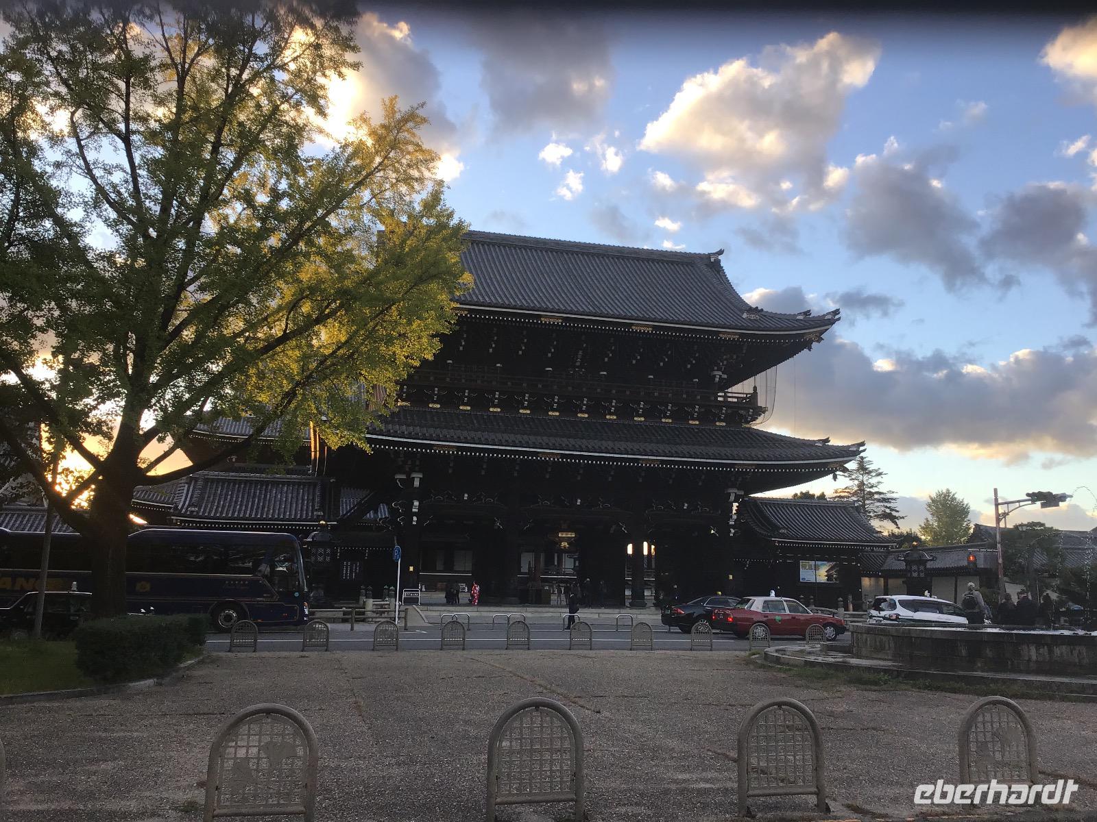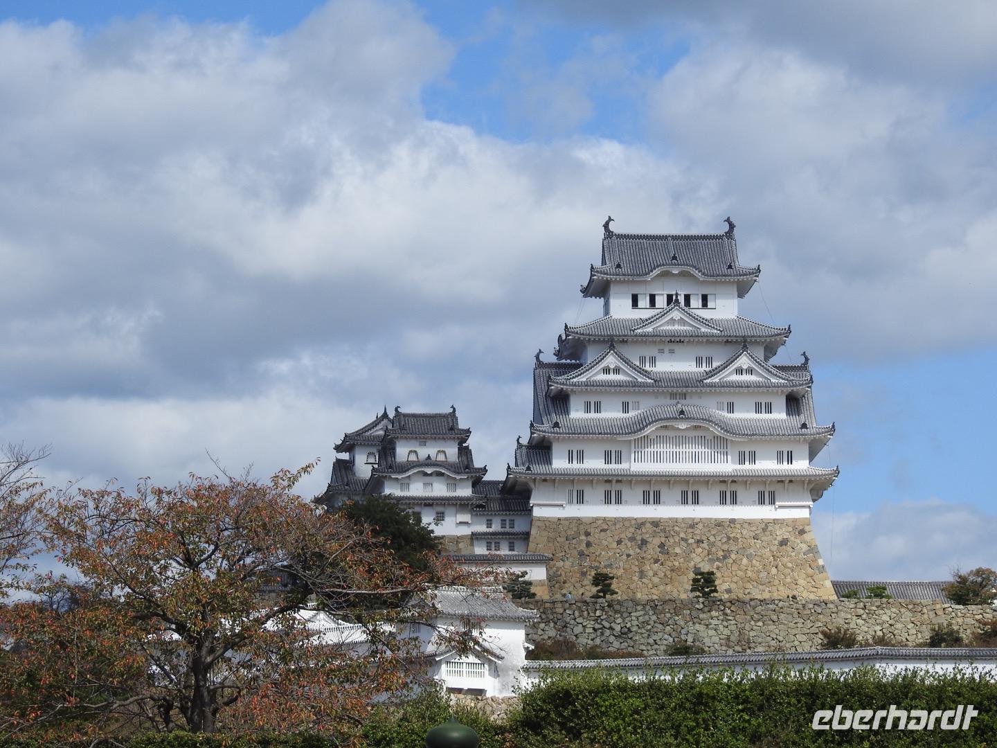 Noch vor dem Frühstück geben wir unser Gepäck in der Lobby ab. Es wird heute separat transportiert. Wir fahren mit dem Shinkansen nach Himeji. Hier besuchen wir eines der schönsten Bauwerke Japans, die Himeji Burg. Die BURG DES WEISSEN REIHERS ist bei strahlendem Sonnenschein schon von Weitem zu sehen. Ihre weiß getünchten Wände machen dem Beinamen alle Ehre. Die Burg thront auf einer Steilklippe und wurde als Militärbauwerk errichtet. Der 46 Meter hohe Hauptturm ist der zweitgrößte Holzturm Japans. Hier gab es Waffenständer, Geheimkammern und Falltüren. Das Labyrinth aus Gängen und Toren diente dazu, die Feinde zu verwirren. Wir klettern den fünfstöckigen Turm hinauf und durchqueren dabei schmucklose und leere Räume. Als wir die Burg verlassen, kommen wir an einem Selbstmordraum vorbei. Hier wurde gefangenen Gegnern die Möglichkeit eingeräumt, sich ehrenvoll vom Diesseits zu verabschieden. Am Nachmittag fahren wir wiederum mit dem Shinkansen weiter nach Kyoto.
