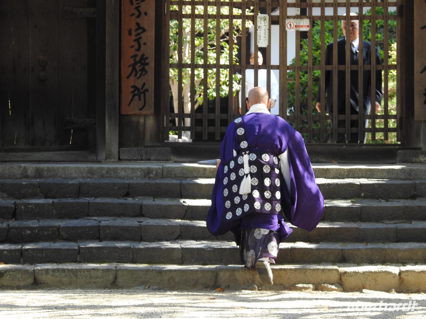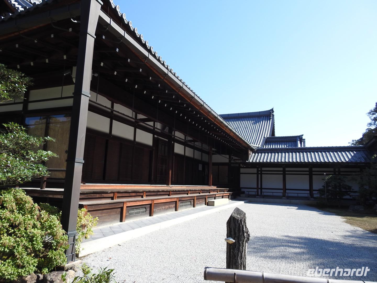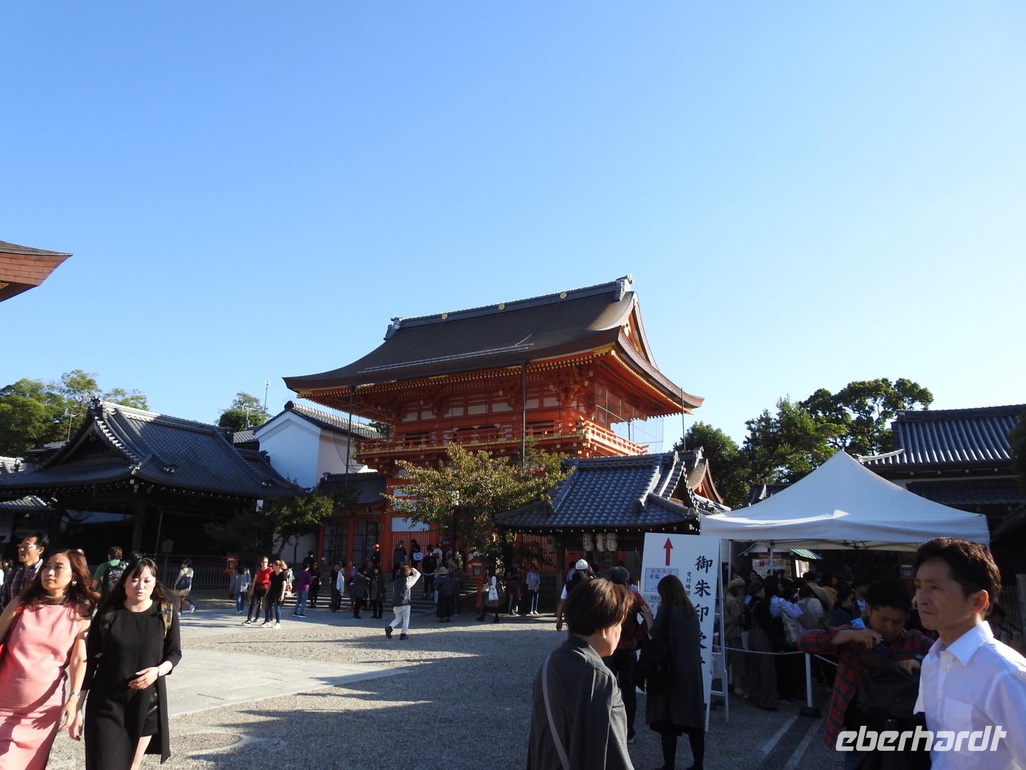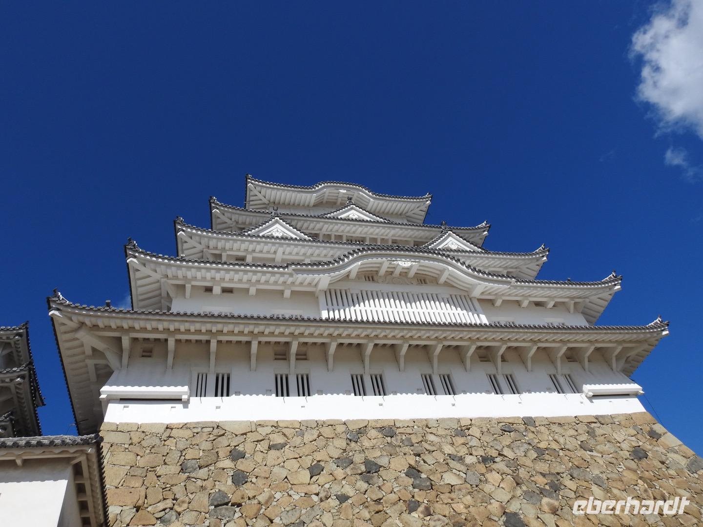 Noch vor dem Frühstück geben wir unser Gepäck in der Lobby ab. Es wird heute separat transportiert. Wir fahren mit dem Shinkansen nach Himeji. Hier besuchen wir eines der schönsten Bauwerke Japans, die Himeji Burg. Die BURG DES WEISSEN REIHERS ist bei strahlendem Sonnenschein schon von Weitem zu sehen. Ihre weiß getünchten Wände machen dem Beinamen alle Ehre. Die Burg thront auf einer Steilklippe und wurde als Militärbauwerk errichtet. Der 46 Meter hohe Hauptturm ist der zweitgrößte Holzturm Japans. Hier gab es Waffenständer, Geheimkammern und Falltüren. Das Labyrinth aus Gängen und Toren diente dazu, die Feinde zu verwirren. Wir klettern den fünfstöckigen Turm hinauf und durchqueren dabei schmucklose und leere Räume. Als wir die Burg verlassen, kommen wir an einem Selbstmordraum vorbei. Hier wurde gefangenen Gegnern die Möglichkeit eingeräumt, sich ehrenvoll vom Diesseits zu verabschieden. Am Nachmittag fahren wir wiederum mit dem Shinkansen weiter nach Kyoto.