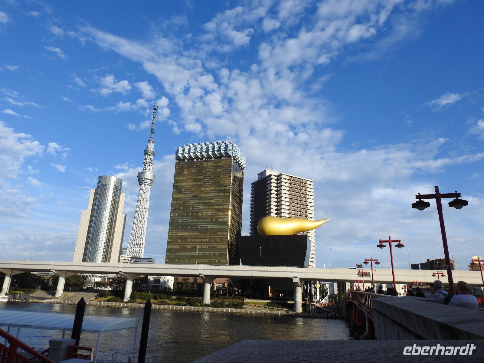 Vom Ropongi Hills Tower haben wir eine fantastische Aussicht. Außerdem reicht die Zeit, um von oben die Stadtlandschaft in aller Muße zu genießen, einen Kaffee zu trinken oder sogar Mittag zu essen. Übrigens ist Eiskaffee in Japan das, was die Bezeichnung sagt: Kaffee mit Eiswürfeln (und nicht mit Vanilleeis und Schlagsahne). Im Ginza Viertel begrüßen uns die Markenfirmen dieser Welt mit teuren Boutiquen. Im Nissan Gebäude kann man sein eignes Bild auf den Kaffee-Milchschaum projizieren lassen. Ein ungewöhnlicher Spaß. (400 Yen für heißen Kaffee, 500 für kalten).