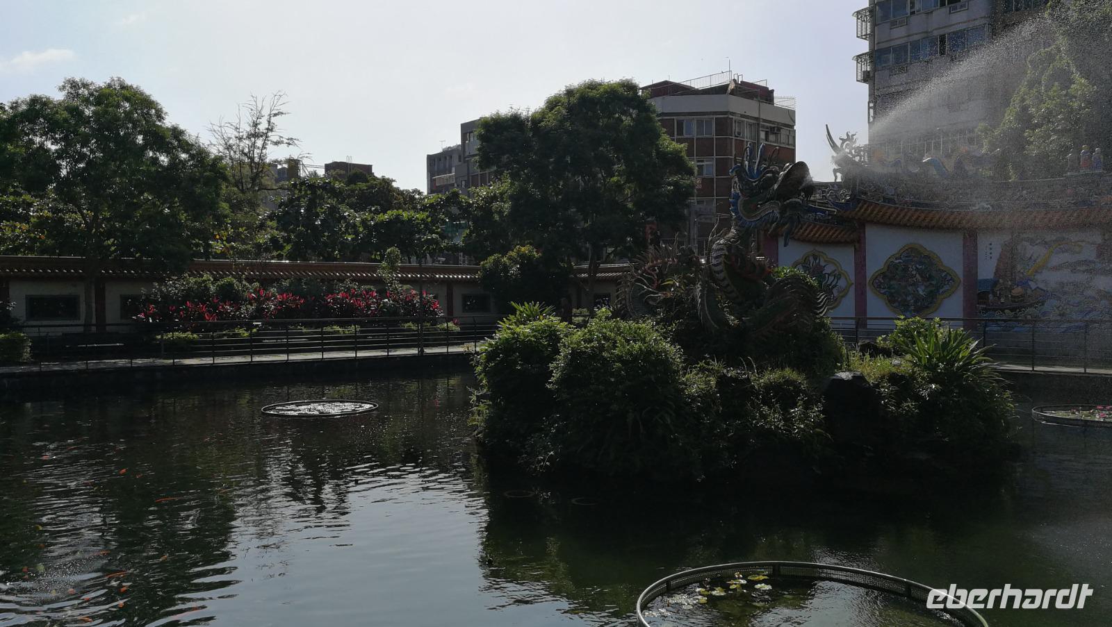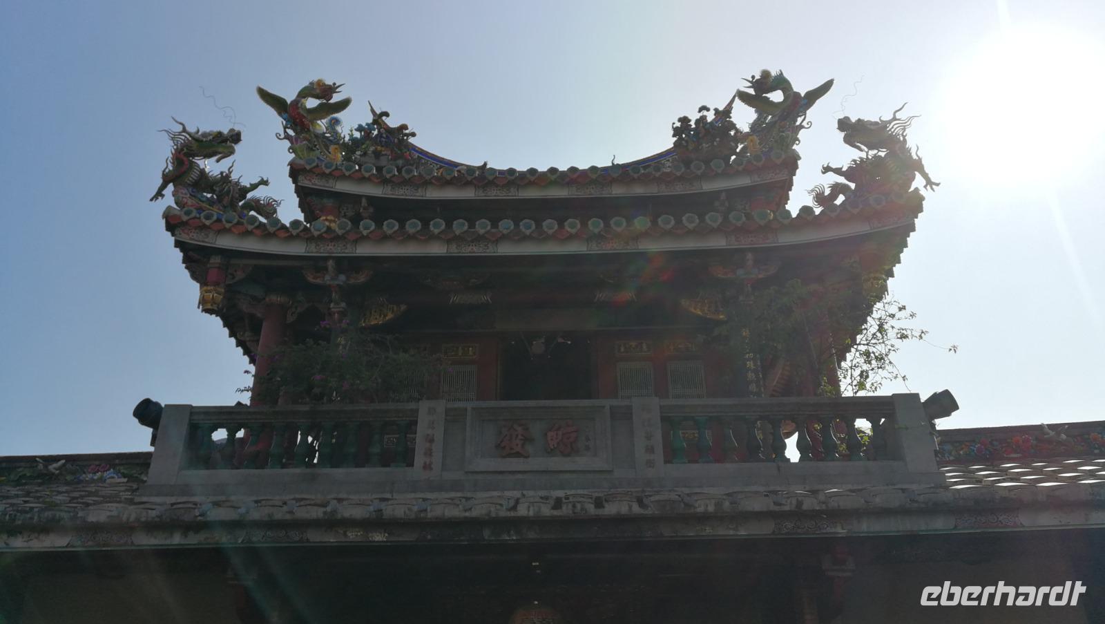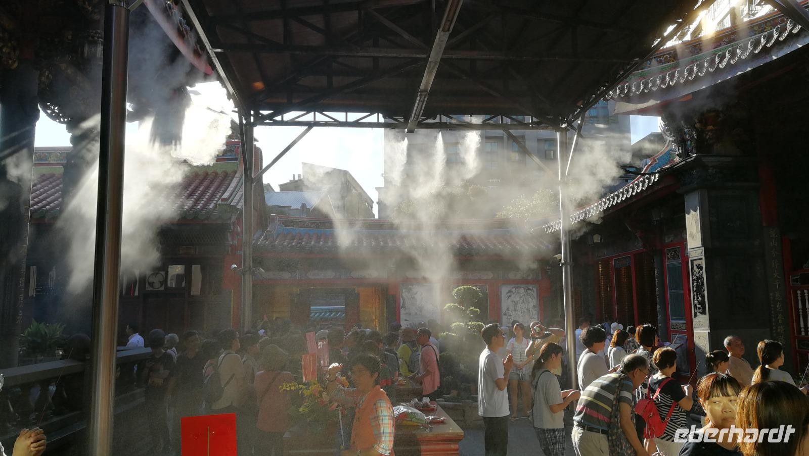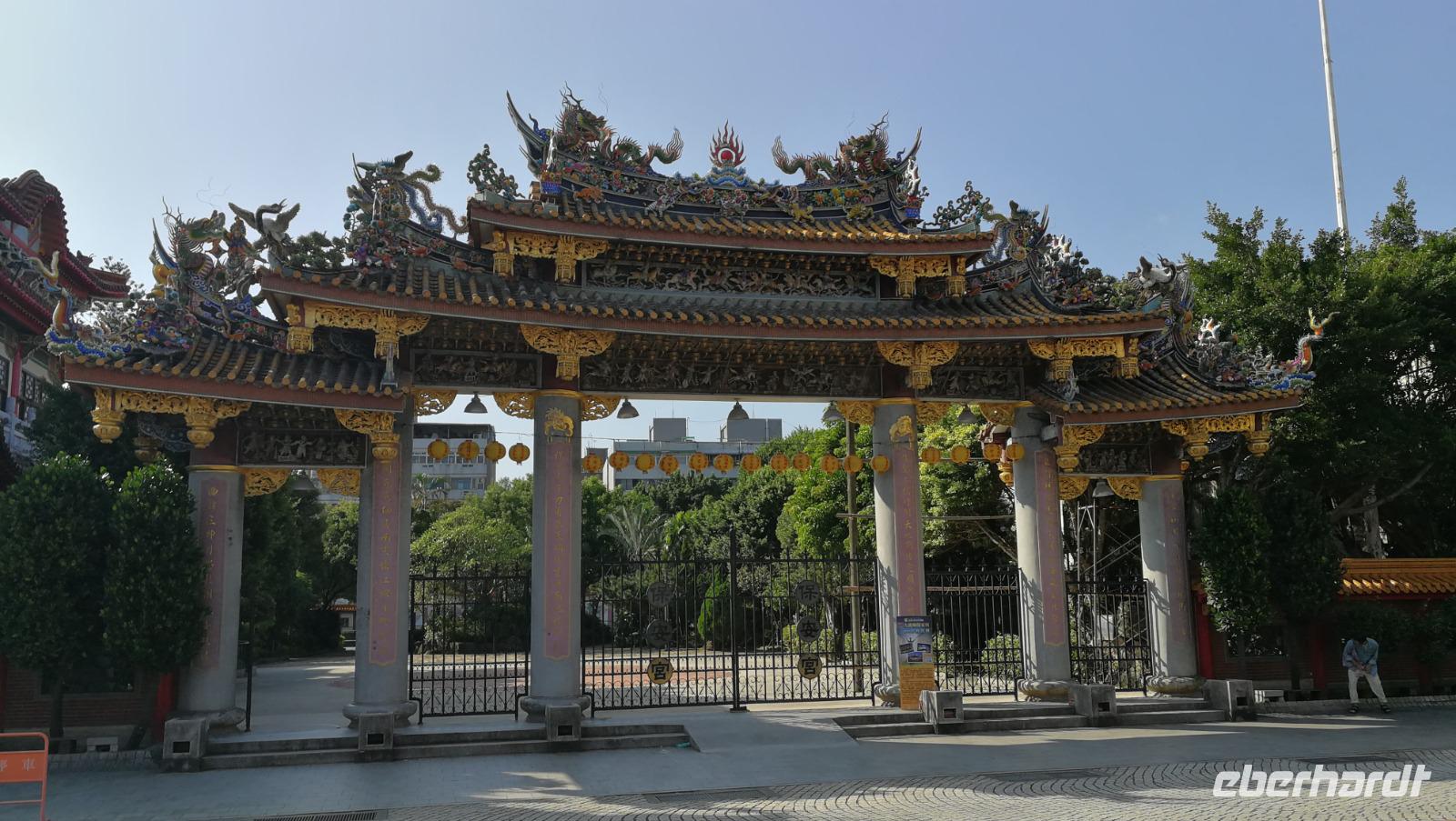 Unsere Reisegruppe traf sich vor dem Abflug nach Taipeh am Gate in Frankfurt und schon früh merkte man, dass über die nächsten Tage eine tolle Gruppendynamik entstehen wird. Aus allen Ecken Deutschlands hatten wir uns zusammengefunden und freuten uns auf die bevorstehende Zeit in Ostasien. Um 11:40 hob der Flieger ab und brachte uns nach ca. 12 Stunden Flugzeit wohlbehalten nach Taiwan, wo es zum Zeitpunkt der Landung früh am Morgen war. Nach den Einreiseprozeduren trafen wir auf unsere taiwanesische Reiseleiterin Syntia, die uns herzlich begrüßte. Auf der Fahrt in die Stadt stellte Sie uns den pazifischen Inselstaat näher vor. Auf einer Fläche so groß wie Baden-Württemberg leben hier ca. 24 Millionen Menschen - die Hauptstadt Taipeh selbst zählt davon ein Zehntel. Selbst im Oktober hat es hier noch immer 25-30°C - ein starker Kontrast zum nasskalten Deutschland aus dem wir am Morgen angereist waren. Nach der kurzen Fahrt kamen wir am Pao-an (sprich: Baoan) Tempel an. Dieser taoistische Tempel aus dem 18. Und 19. Jahrhundert liegt in der Altstadt, gehört zum UNESCO Weltkulturerbe und beeindruckte uns durch die farbenfrohe und reich verzierte Dekoration aus Porzellanfiguren und Goldverzierten Ornamenten. Syntia erklärte uns die taoistischen Gebetsriten: man richtet seine drängenden Fragen an die Gottheit seiner Wahl und formuliert eine einfache ja-nein Frage wie man weiter vorgehen soll. Eine Antwort erhält man durch das Fallenlassen von Gebetssteinen. Je nachdem, wie die Steine auf dem Boden zu liegen kommen befürwortet die Gottheit das Vorhaben oder rät einem davon ab und man formuliert eine neue Frage.