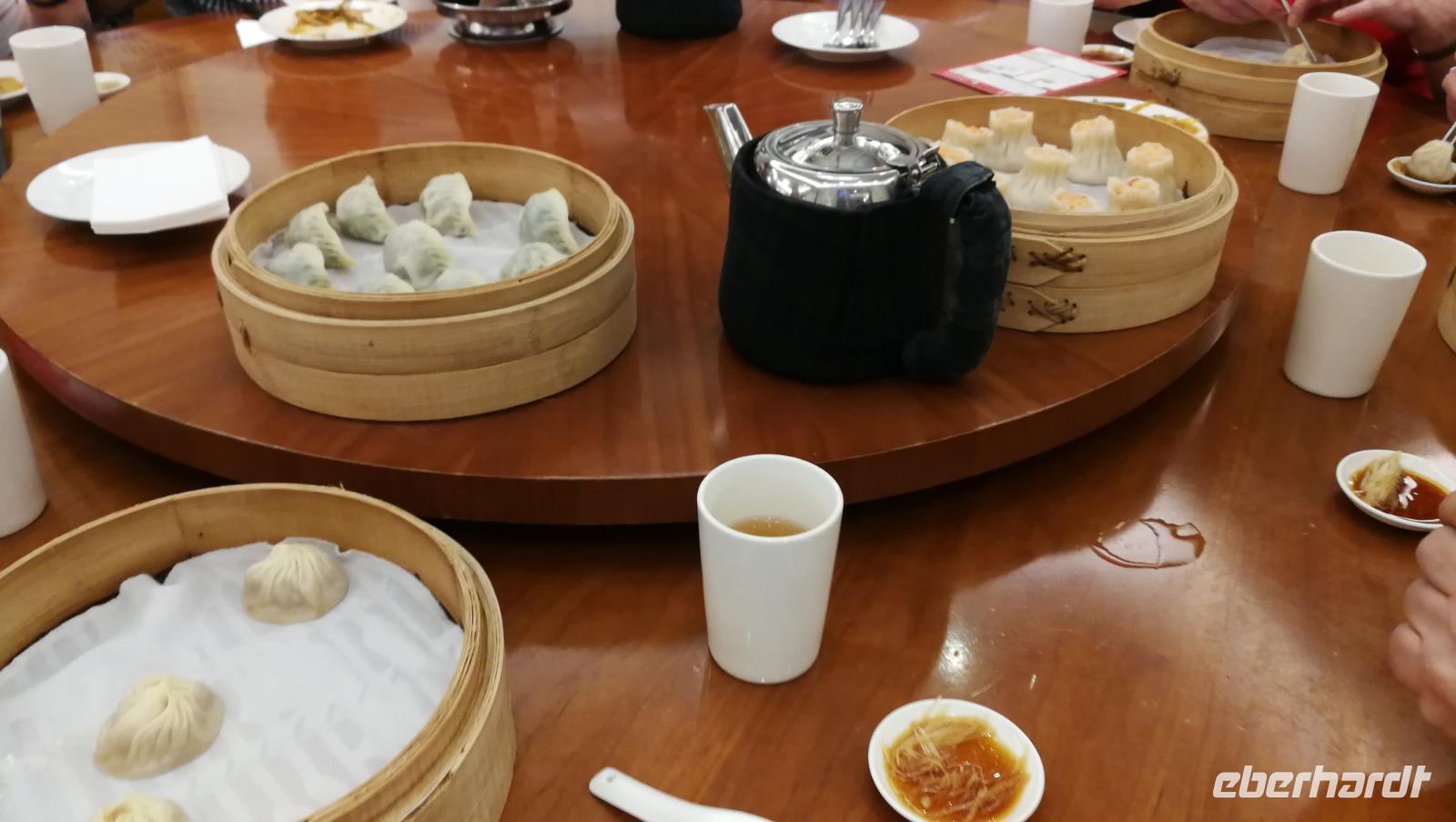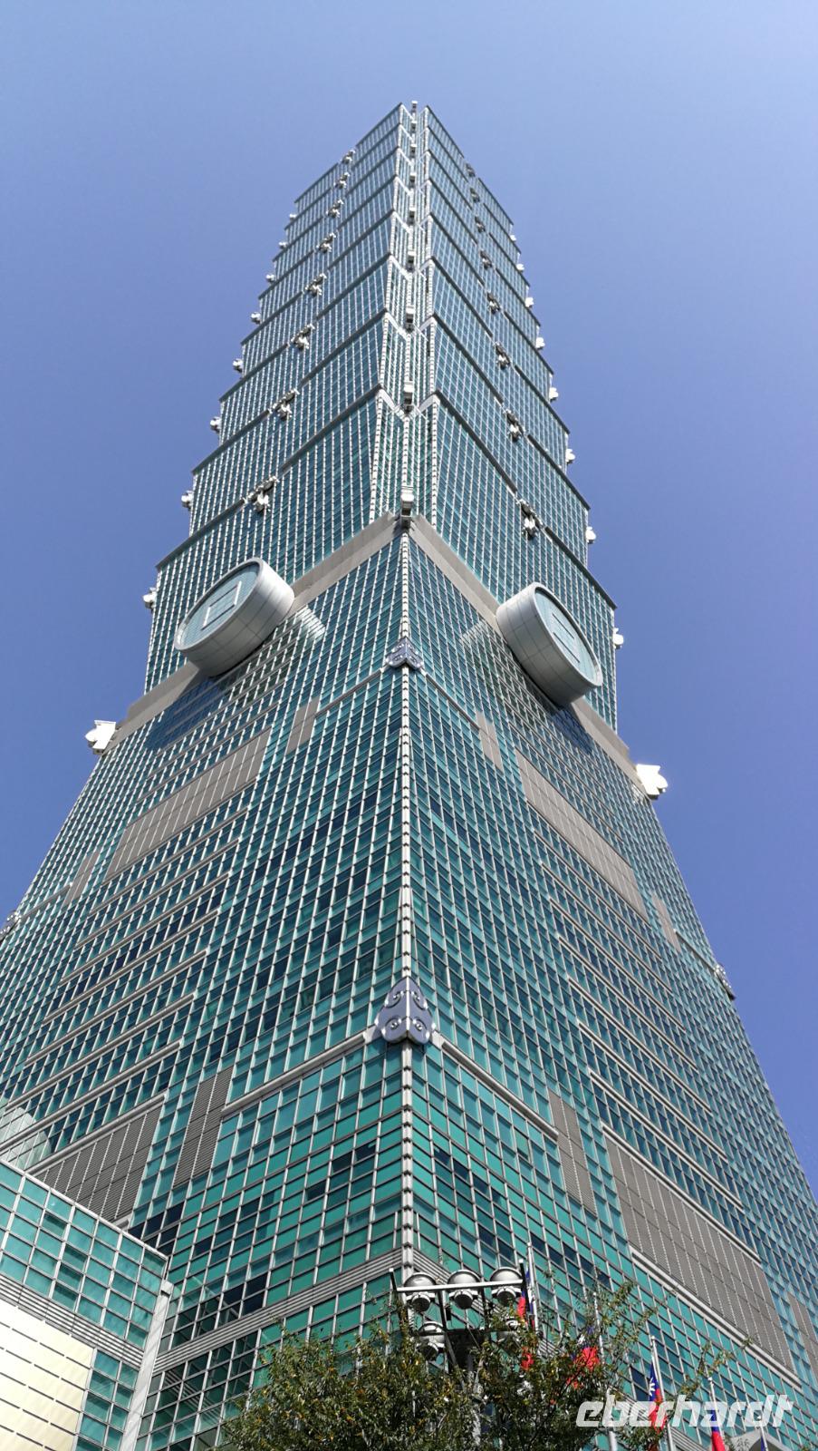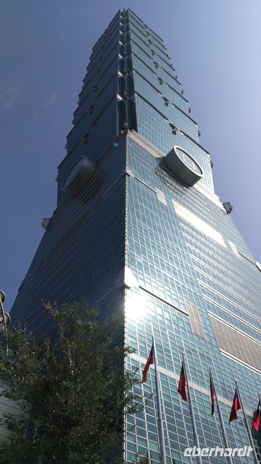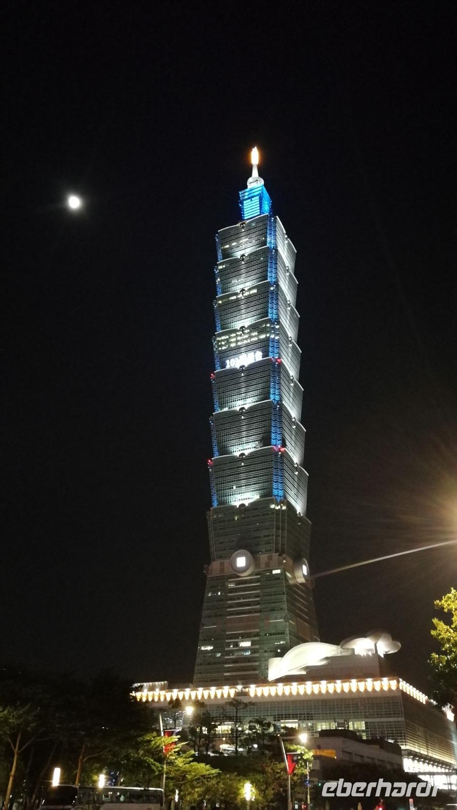 Nach dem Tempel erreichten wir den höchsten Turm des Landes und das weltberühmte Wahrzeichen der Stadt den Taipei 101. Dieser Turm mit 101 Stockwerken und 508 Meter Höhe war zwischen 2004 und 2007 der höchste Turm der Welt und verlor diesen Titel an den damals noch im Bau befindlichen Burj Khalifa. Wir fuhren mit dem schnellsten Aufzug der Welt auf den 89 Stock, wo wir den atemberaubenden Blick über die Stadt und die bergige Umgebung werfen konnten. Im Inneren des Turms kann man die frei hängende Stahlkugel betrachten, die die Schwingungen des Gebäudes durch Winde und Erdbeben ausgleicht und somit die Einsturzgefahr für den Turm verringert. Vom Turm aus konnten wir bereits die Sun Yat-Sen Gedächtnisstätte erblicken - unseren nächsten Stopp. Das Gebäude ist Sun Yat-Sen gewidmet: dem ersten Präsidenten und Begründer der Republik China. Bunte Blumen und riesige Nationalflaggen schmücken heute den Bau, denn es ist Nationalfeiertag in Taiwan. Wir bahnen uns einen Weg durch die Feierlichkeiten und politischen Kundgebungen hinein zur riesigen Statue des Präsidenten. Wir beobachten die feierliche Wachablösung und machen uns danach auf in unser Hotel zu beziehen. Am Abend kosten wir das erste Mal von der asiatischen Küche die uns die nächsten Tage immer wieder begleiten wird - der erste Eindruck ist sehr gut!