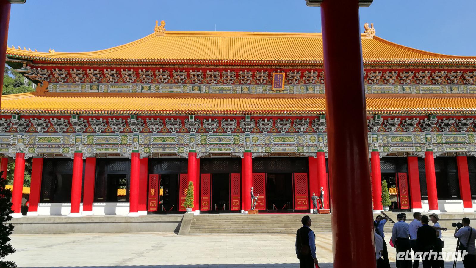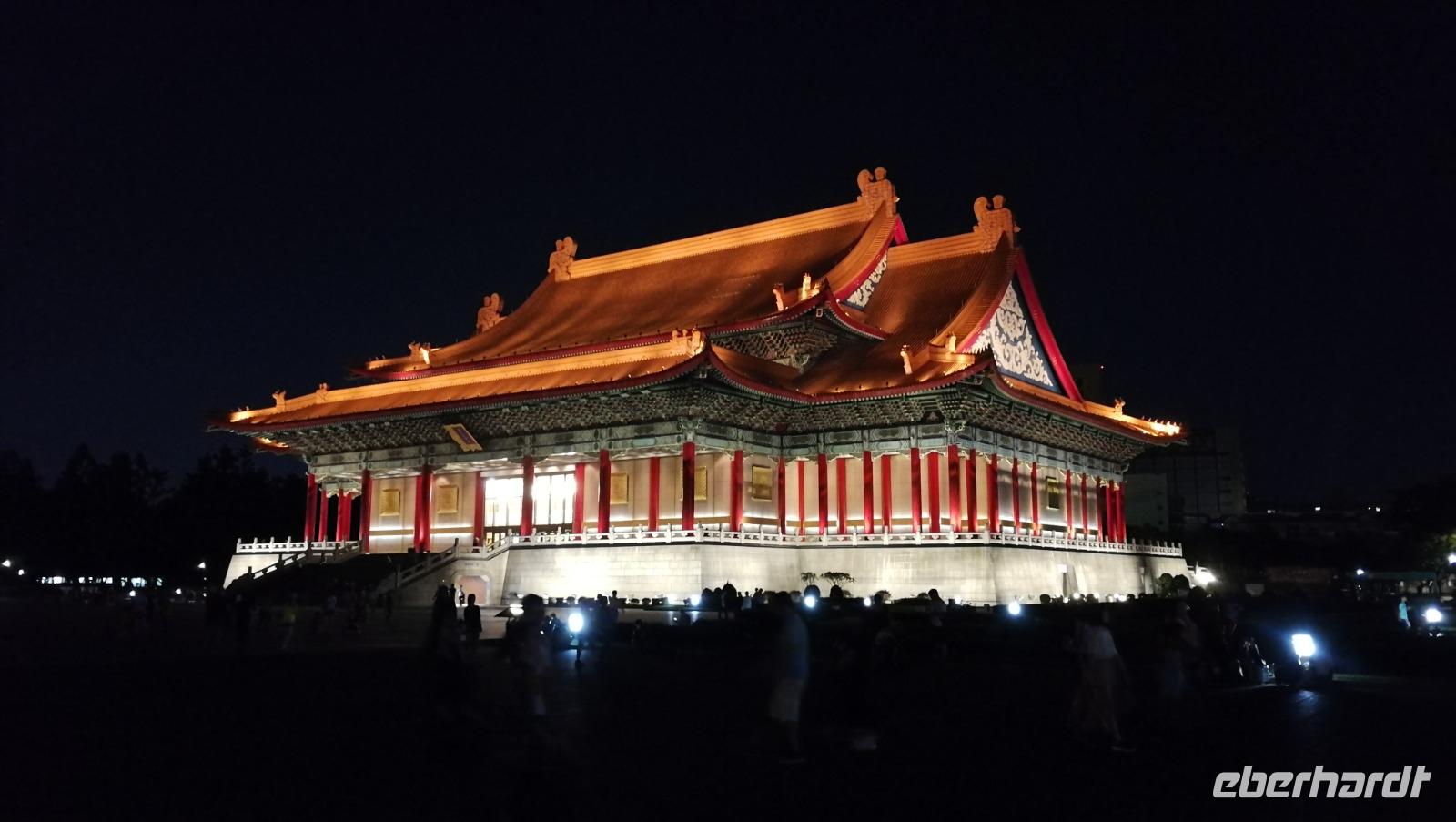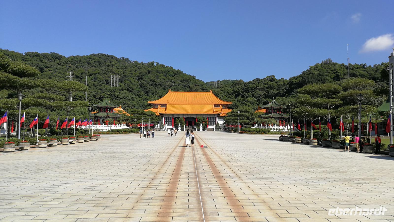 Am nächsten Morgen brechen wir auf zur Stadtrundfahrt durch Taipeh. Zunächst machen wir Halt am Märtyrerschrein. Dieser ursprünglich taoistische Tempel wurde von den Japanern während der Besatzungszeit errichtet und nach der Befreiung Taiwans zum Andenken der gefallenen Chinesen aus dem zweiten Weltkrieg sowie dem Bürgerkrieg gegen die Volksrepublik umgewidmet. Während wir über den weitläufigen Platz vor dem Schrein schlendern findet gerade auch die beeindruckende, zeremonielle Wachablösung statt. Wir fahren weiter zum nationalen Palastmuseum von Taiwan. Chiang Kai Shek ließ dieses Museum errichten, um die zahlreichen Kunstschätze ausstellen zu können, die er während der Flucht aus Festland-China mitnahm. Hier befinden sich heute über 600.000 wertvolle Artefakte der alten chinesischen Qing Kaiserdynastie. Synthia führt uns durch die Hallen und erklärt die Hintergründe zu den Schmuckstücken und Objekten aus Jade, Porzellan, Bronze sowie den vielen weiteren Kunstwerken die hier ausgestellt werden. Wir bekommen so einen einzigartigen Einblick in das Leben der alten Kaiserfamilien. Einen Einblick in das Leben des Nationalhelden Chiang Kai Shek selbst bekommen wir dann beim Besuch seines Denkmals mitten in Taipeh. Die beeindruckenden Gebäude im Stile der Tempel Ostasiens beherbergen ein Museum über sein Leben und Wirken sowie das Nationaltheater und weitere öffentliche Gebäude.