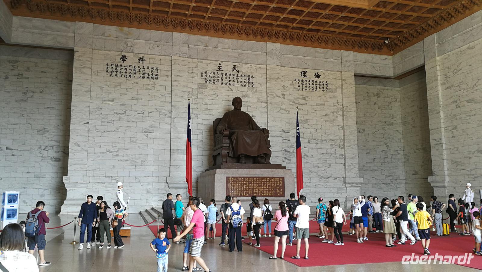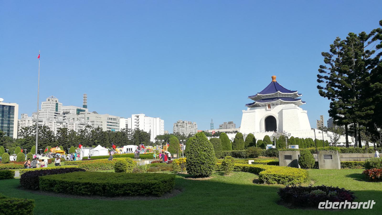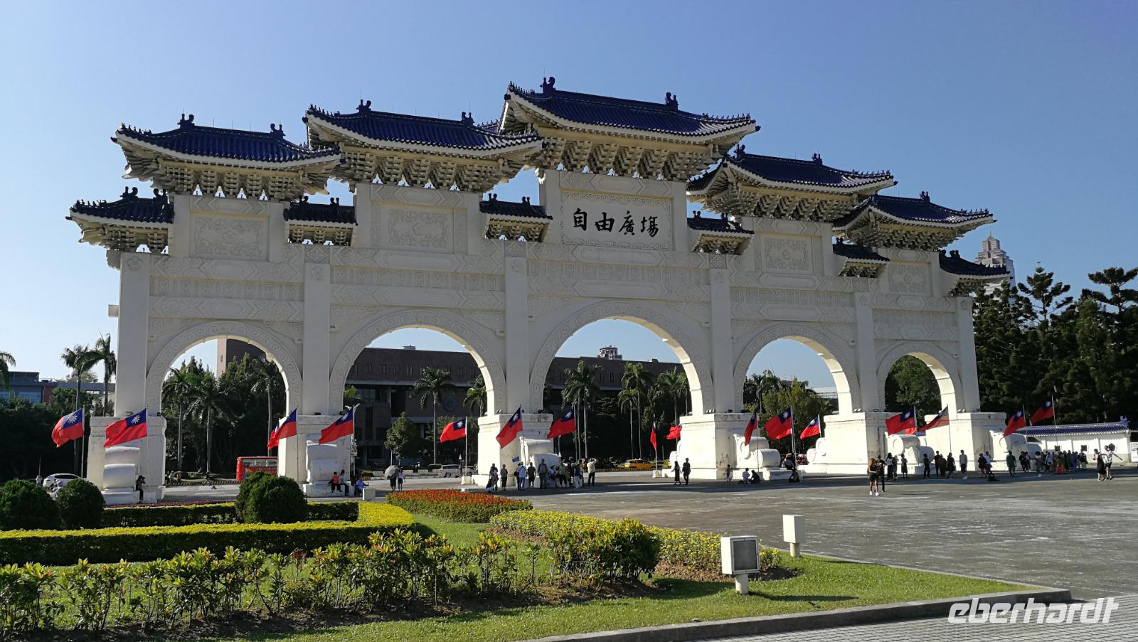 Am nächsten Morgen brechen wir auf zur Stadtrundfahrt durch Taipeh. Zunächst machen wir Halt am Märtyrerschrein. Dieser ursprünglich taoistische Tempel wurde von den Japanern während der Besatzungszeit errichtet und nach der Befreiung Taiwans zum Andenken der gefallenen Chinesen aus dem zweiten Weltkrieg sowie dem Bürgerkrieg gegen die Volksrepublik umgewidmet. Während wir über den weitläufigen Platz vor dem Schrein schlendern findet gerade auch die beeindruckende, zeremonielle Wachablösung statt. Wir fahren weiter zum nationalen Palastmuseum von Taiwan. Chiang Kai Shek ließ dieses Museum errichten, um die zahlreichen Kunstschätze ausstellen zu können, die er während der Flucht aus Festland-China mitnahm. Hier befinden sich heute über 600.000 wertvolle Artefakte der alten chinesischen Qing Kaiserdynastie. Synthia führt uns durch die Hallen und erklärt die Hintergründe zu den Schmuckstücken und Objekten aus Jade, Porzellan, Bronze sowie den vielen weiteren Kunstwerken die hier ausgestellt werden. Wir bekommen so einen einzigartigen Einblick in das Leben der alten Kaiserfamilien. Einen Einblick in das Leben des Nationalhelden Chiang Kai Shek selbst bekommen wir dann beim Besuch seines Denkmals mitten in Taipeh. Die beeindruckenden Gebäude im Stile der Tempel Ostasiens beherbergen ein Museum über sein Leben und Wirken sowie das Nationaltheater und weitere öffentliche Gebäude.