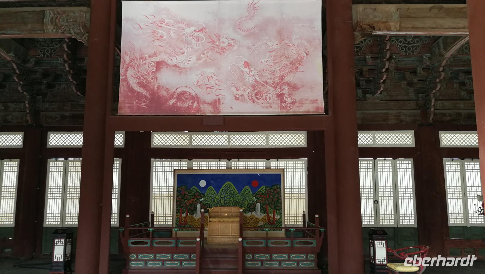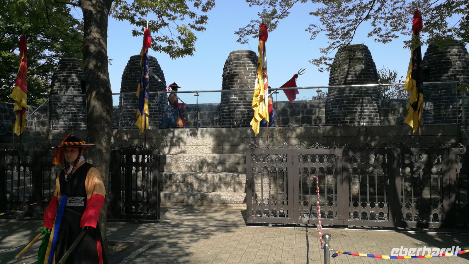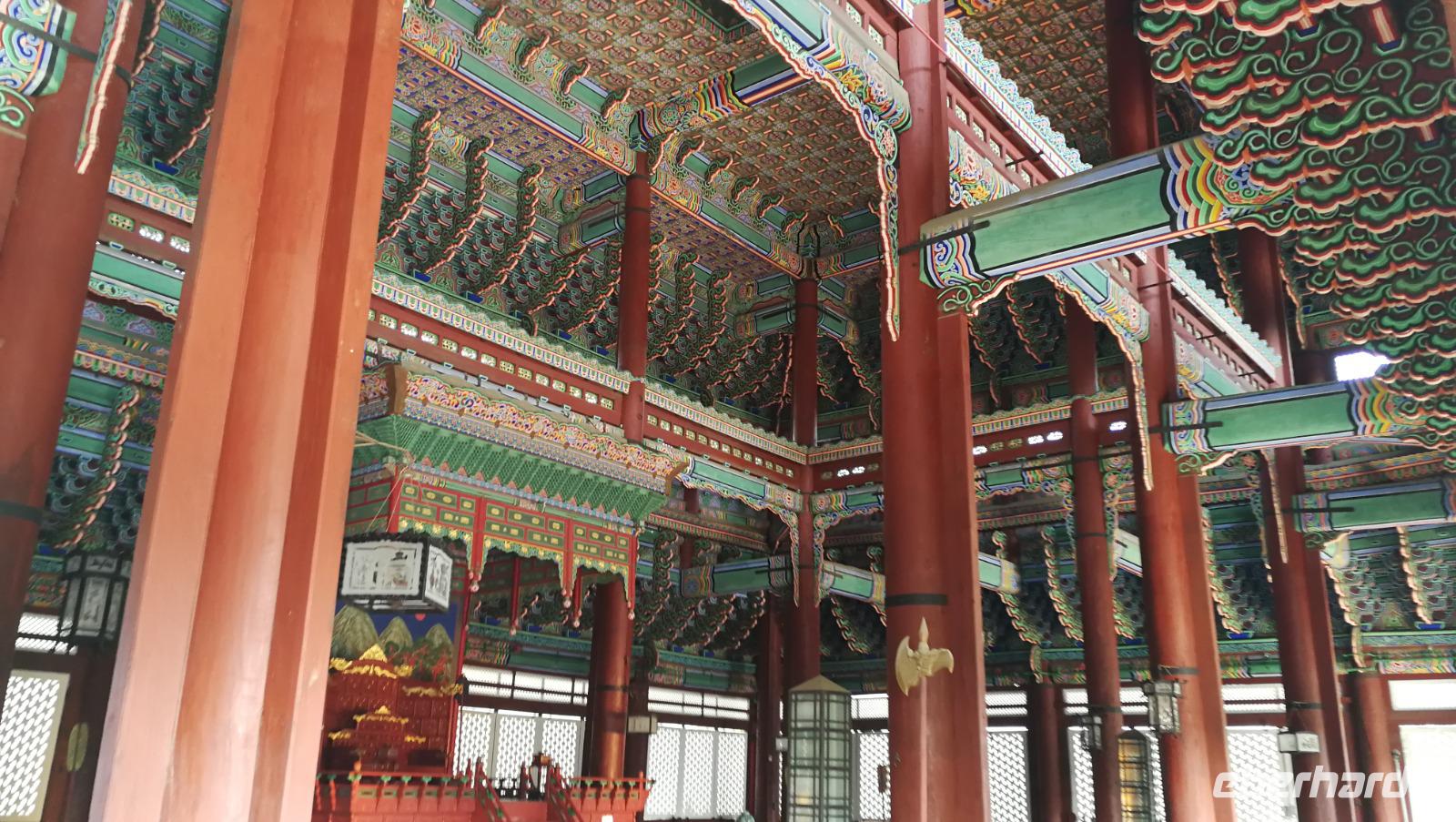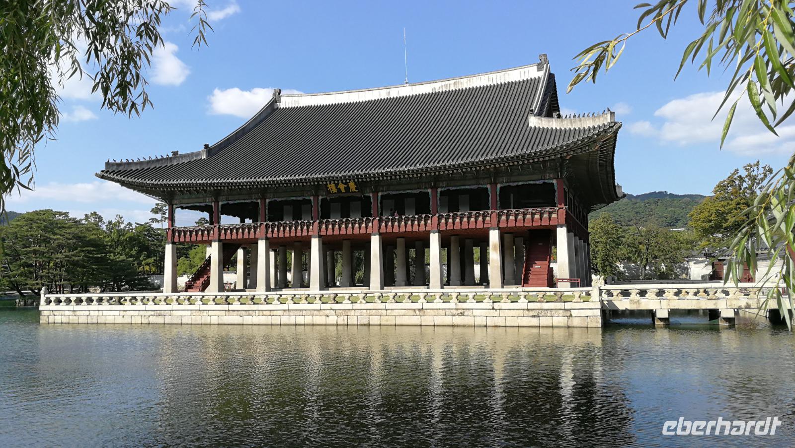 Um vier Uhr in der Früh klingelt für uns heute der Wecker - wir packen unsere Koffer und machen uns auf zum Flughafen. Dort verabschieden wir uns von Synthia, die uns ihre Heimat Taiwan mit Leidenschaft und viel Engagement vorgestellt hat. Nach gut drei Stunden Flug erreichen wir Seoul, wo wir unsere Reiseleiterin Son-Ya (oder Sonja) begrüßen, die uns während unseres Aufenthaltes in Südkorea begleiten wird. Nach einer kurzen Begrüßung tauschen wir die restlichen Taiwan-Dollar in koreanische Won und brechen auf in die Innenstadt von Seoul, wo wir den Königspalast besichtigen. Auf der riesigen, gut erhaltenen Palastanlage befinden sich die Audienzhalle sowie die Wohngemächer der Königsfamilie. Im Wissenschafts-Trakt entstanden die heutige koreanische Schrift sowie viele wertvolle Erkenntnisse und Schriftstücke aus der Astronomie und den Naturwissenschaften. Korea war aufgrund der Lage immer auch abhängig von den chinesischen Kaiserreichen und übernahm viele kulturelle und gesellschaftliche Einflüsse aus dem Reich der Mitte wie zum Beispiel die geschwungenen Dächer sowie die Ausrichtung der Gebäude nach Feng Shui. Als wir über das Palastgelände gehen fallen uns die zahlreichen Besucher in traditioneller koreanischer Kleidung auf - diese kann man sich leihen, oder von zuhause mitnehmen und bekommt kostenlosen Eintritt in das Gelände wenn man diese trägt.
