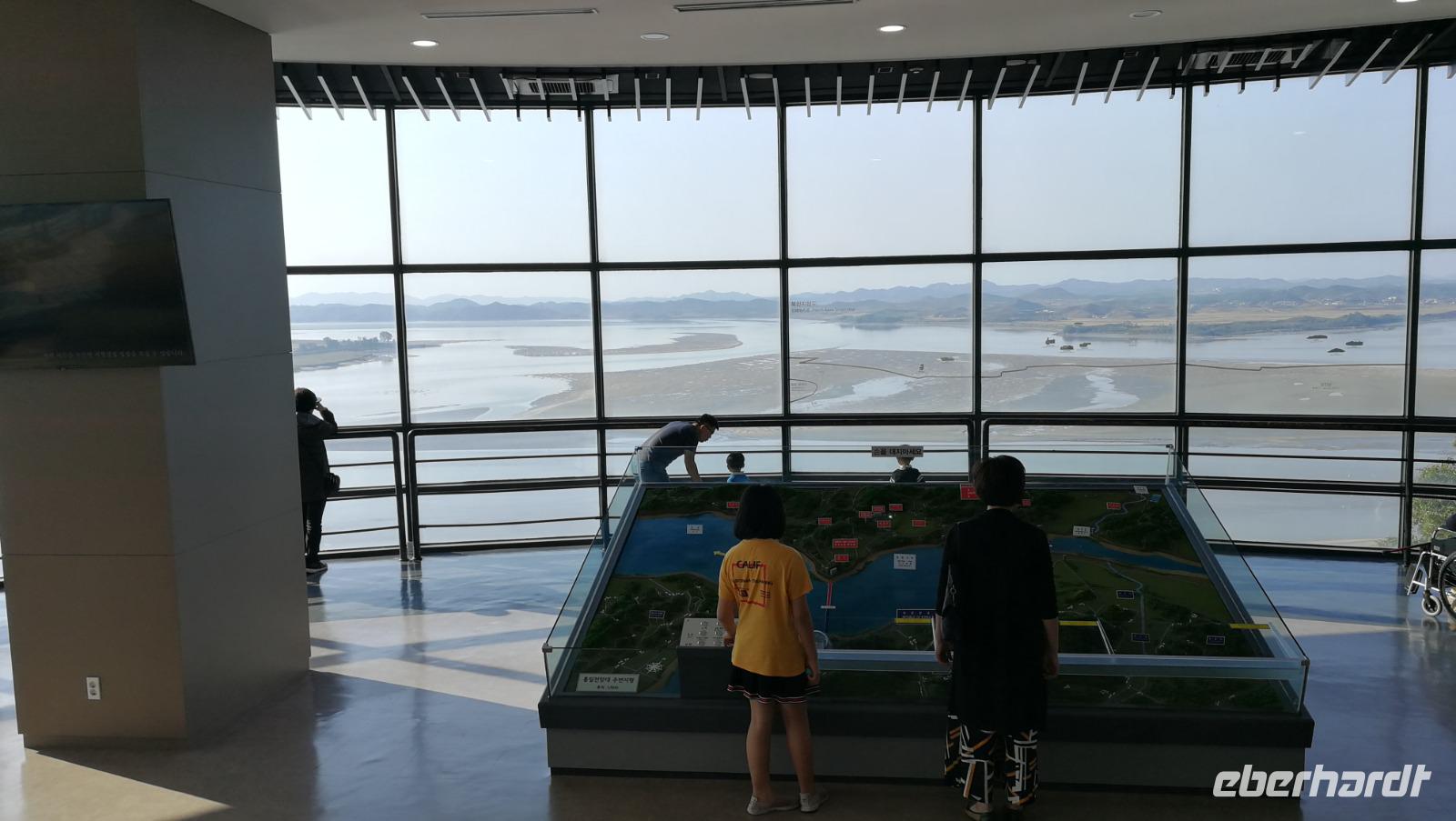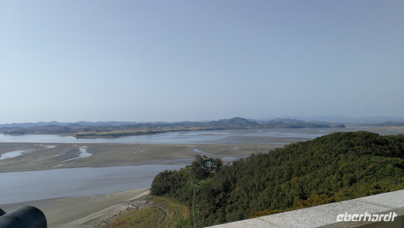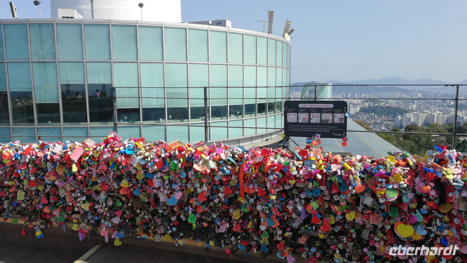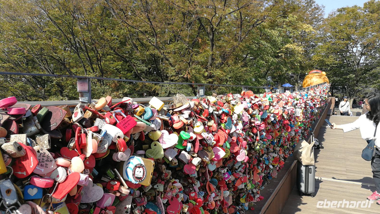 Während der Reise erreichte uns die Nachricht, dass die Demilitarisierte Zone zu Nordkorea unter Quarantäne steht - wegen eines Ausbruchs des afrikanischen Schweinefiebers können wir heute nicht wie geplant bis an die nordkoreanische Grenze fahren, sondern müssen das Programm etwas anpassen. Also machen wir uns auf zum Kriegsmuseum in Seoul, wo Ausstellungsstücke aus dem Koreakrieg die Brutalität des Konflikts aufzeigen und uns auch den Besuch der Grenzregion später am Abend vorbereiten. Zunächst fahren wir aber weiter zum N-Tower. Auf dem südlichen Berg in Seoul gelegen bietet dieser Aussichtsturm einen beeindruckenden Rundblick über Südkoreas Hauptstadt. Um den Turm herum befinden sich zahlreiche Cafés und Souvenirläden. Die Geländer sind gespickt mit Vorhängeschlössern, die von den Besuchern mit dem Wunsch nach Glück in der Liebe dort angebracht werden. Zum Mittagessen probieren wir Koreas berühmten Pfannkuchen aus Mung-Bohnen Teig. Die frittierten Röstis kommen super an und wir bestellen sogleich mehrere Geschmacksrichtungen ehe wir weiterziehen. Wir verlassen Seoul und erreichen nach kurzer Fahrt das Odusan Observatorium. Diese Aussichtsplattform liegt an der Grenze zu Nordkorea an der Mündung zweier Flüsse - des Grenzflusses Imjin sowie des Han-Flusses der durch Seoul fließt. Durch Fernrohre blicken wir über den Fluss auf den Nachbarstaat und können die Menschen dort bei der Feldarbeit oder beim alltäglichen Leben beobachten. Einige Kilometer weiter flussaufwärts befindet sich der Imjingak Friedenspark. Eine Gedenkstätte für aus dem Norden geflüchtete Koreaner, die hier ihrer zurückgelassenen Verwandten oder ihrer Kindheit in Nordkorea gedenken können. Wir besichtigen die Parkanlage und fühlen uns auf unheimliche aber faszinierende Weise an unsere eigene Geschichte erinnert.