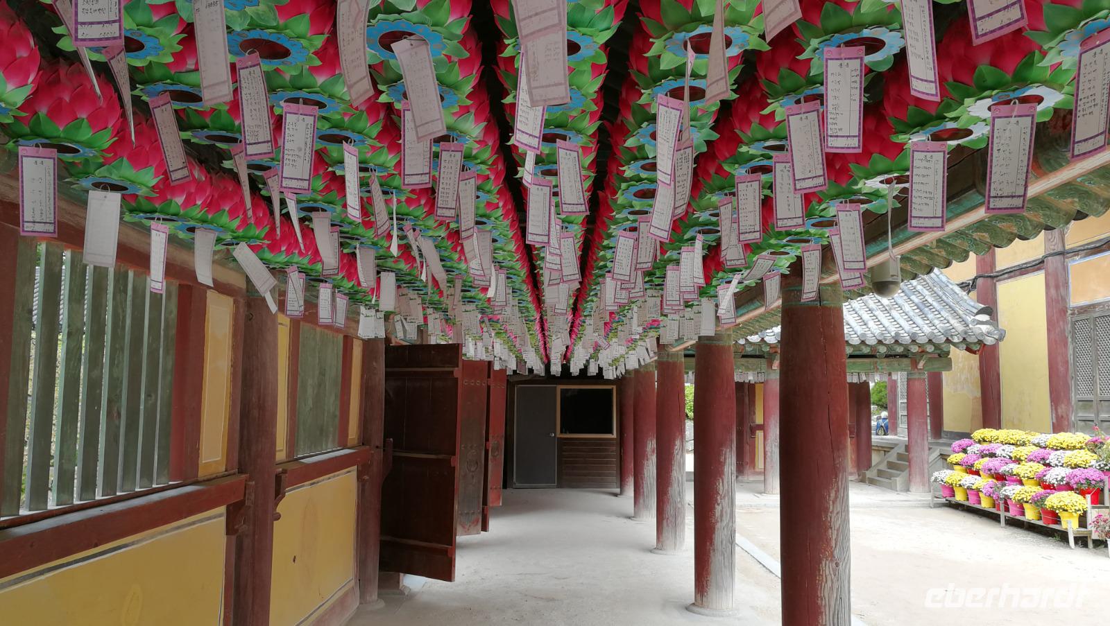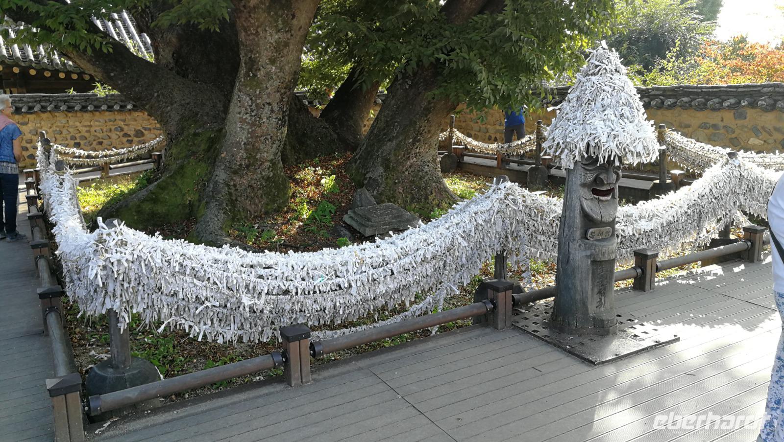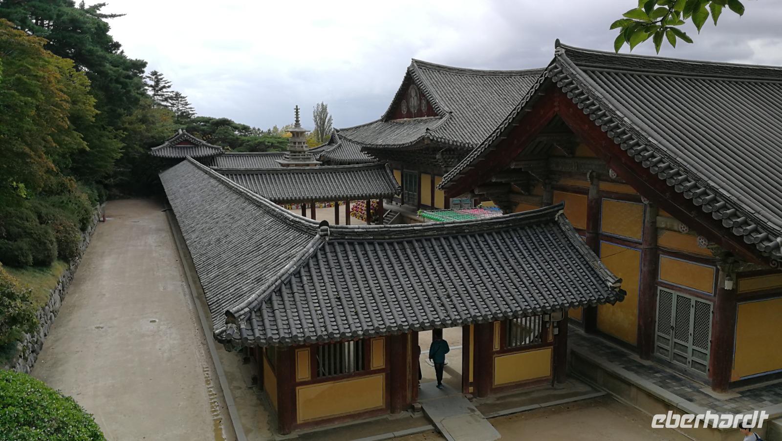 Aus der pulsierenden Millionenmetropole Seoul brechen wir heute auf in das traditionelle Korea. Wir machen einen Abstecher in das Hahoe Dorf - ein mittelalterliches Dorf, das aufgrund seiner Lage in einer Flussbiegung von äußeren Angriffen gut zu verteidigen war und somit in der ursprünglichen Form über Jahrhunderte erhalten bleiben konnte. Bei traditionellen Nudelgerichten stärken wir uns nach der Ankunft erst einmal und machen uns dann auf, in das Innere der Anlage. Hahoe ist bekannt für sein Maskentheater - wir nehmen in der kleinen Arena Platz und verfolgen das Schauspiel. Bei Gesang und Tanz wurde damals wie heute die gesellschaftliche Ordnung sowie die Moral der Menschen aufs Korn genommen. Im Dorf selbst gibt es zwei Arten von Häusern zu sehen: die des Landadels, welche robuster gebaut sind und die traditionellen mit Schindeln bedeckten Dächer aufweisen, sowie die Häuser der einfachen Leute, aus Lehm und mit Schilfdächern gebaut. Wir besichtigen die Innenhöfe und schlendern durch die Gassen des Dorfes während uns Sonja mehr über das damalige Leben der Bauern und adeligen erklärt. Überall finden sich kleine Läden die die traditionellen Masken aus dem Schauspiel darbieten. Nachdem wir das Dorf gemütlich durchschritten haben machen wir uns weiter auf den Weg nach Andong, wo wir unser Hotel beziehen können. Nach ein wenig Zeit zum Frisch machen brechen wir auf zum Abendessen - heute gibt es Pulkok. In einem Wok wird Rindfleisch gebraten und zusammen mit Gemüse und zahlreichen Beilagen zubereitet. Jeder fügt dem Fleisch hinzu was er möchte und stellt sich so seine eigene Mahlzeit zusammen. Mit vollem Magen fahren wir zurück ins Hotel und bereiten uns auf den nächsten Tag vor.