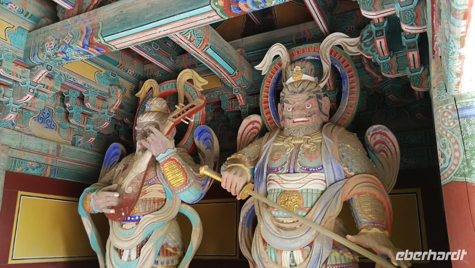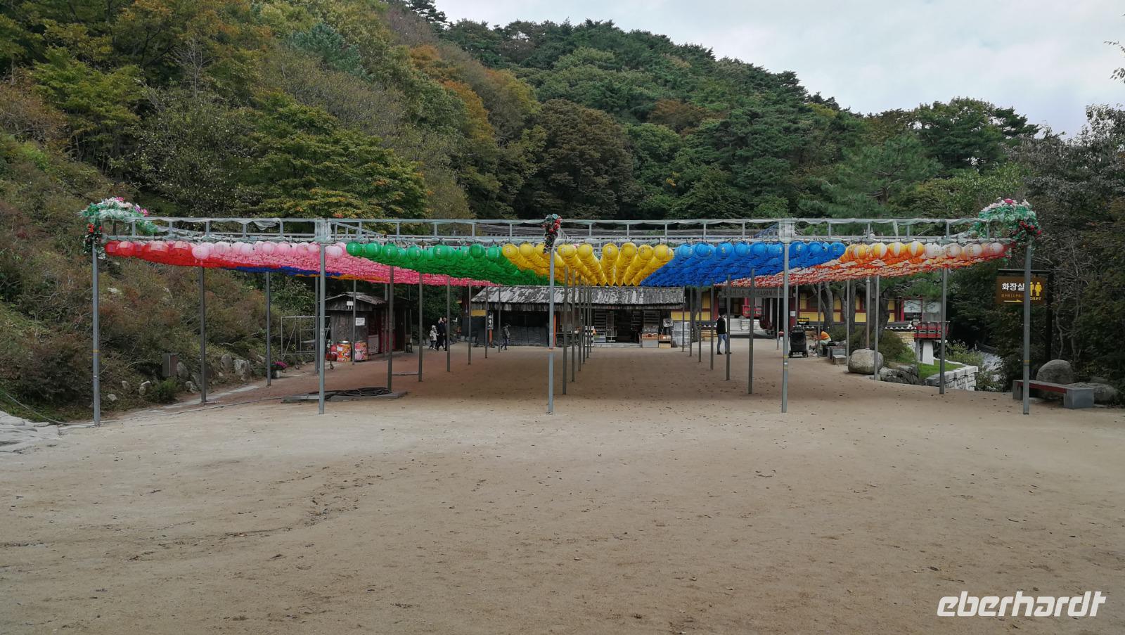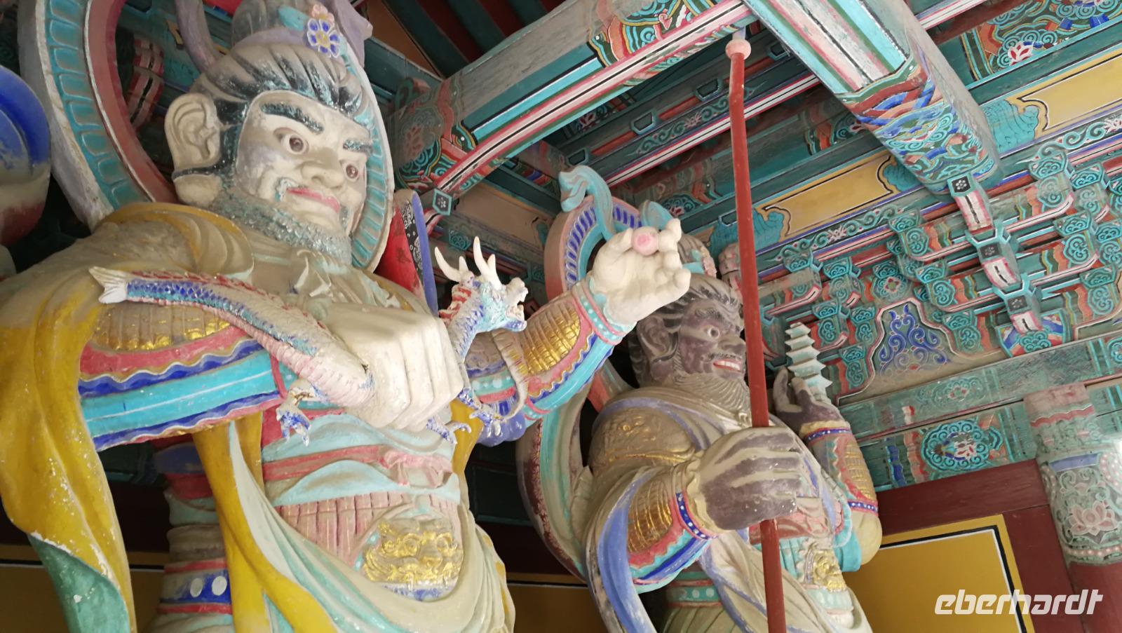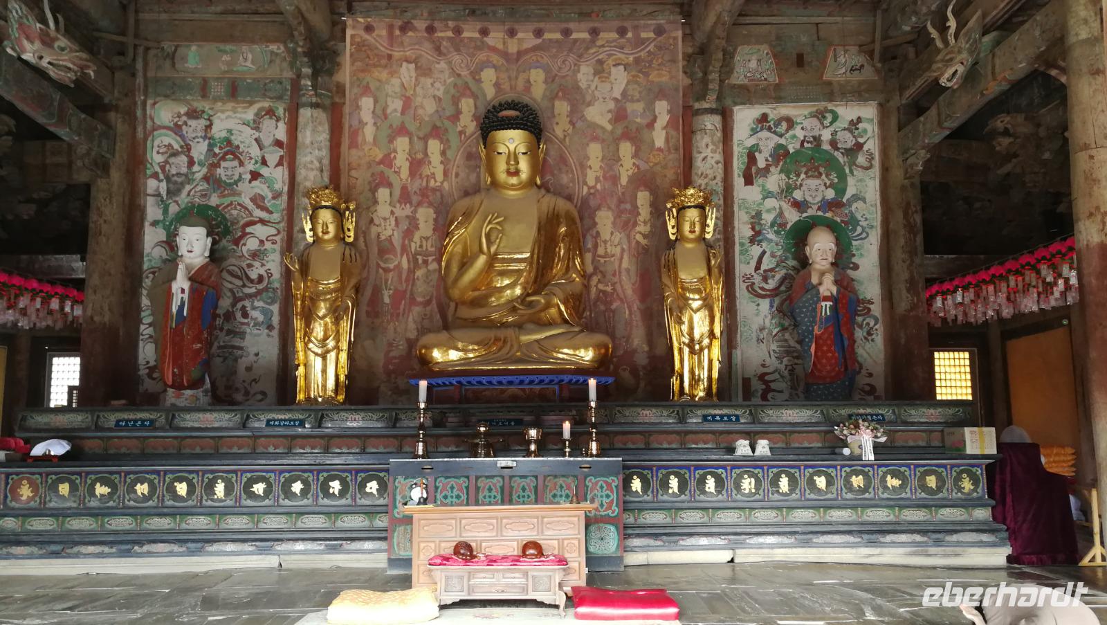 Aus der pulsierenden Millionenmetropole Seoul brechen wir heute auf in das traditionelle Korea. Wir machen einen Abstecher in das Hahoe Dorf - ein mittelalterliches Dorf, das aufgrund seiner Lage in einer Flussbiegung von äußeren Angriffen gut zu verteidigen war und somit in der ursprünglichen Form über Jahrhunderte erhalten bleiben konnte. Bei traditionellen Nudelgerichten stärken wir uns nach der Ankunft erst einmal und machen uns dann auf, in das Innere der Anlage. Hahoe ist bekannt für sein Maskentheater - wir nehmen in der kleinen Arena Platz und verfolgen das Schauspiel. Bei Gesang und Tanz wurde damals wie heute die gesellschaftliche Ordnung sowie die Moral der Menschen aufs Korn genommen. Im Dorf selbst gibt es zwei Arten von Häusern zu sehen: die des Landadels, welche robuster gebaut sind und die traditionellen mit Schindeln bedeckten Dächer aufweisen, sowie die Häuser der einfachen Leute, aus Lehm und mit Schilfdächern gebaut. Wir besichtigen die Innenhöfe und schlendern durch die Gassen des Dorfes während uns Sonja mehr über das damalige Leben der Bauern und adeligen erklärt. Überall finden sich kleine Läden die die traditionellen Masken aus dem Schauspiel darbieten. Nachdem wir das Dorf gemütlich durchschritten haben machen wir uns weiter auf den Weg nach Andong, wo wir unser Hotel beziehen können. Nach ein wenig Zeit zum Frisch machen brechen wir auf zum Abendessen - heute gibt es Pulkok. In einem Wok wird Rindfleisch gebraten und zusammen mit Gemüse und zahlreichen Beilagen zubereitet. Jeder fügt dem Fleisch hinzu was er möchte und stellt sich so seine eigene Mahlzeit zusammen. Mit vollem Magen fahren wir zurück ins Hotel und bereiten uns auf den nächsten Tag vor.