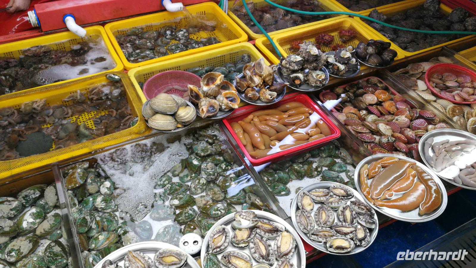 Um 9 Uhr machen wir uns heute auf um nach Busan zu fahren, der zweitgrößten Stadt Südkoreas. Die Hafenmetropole bietet knapp 4 Millionen Menschen ein Zuhause und stellt das Tor zur Welt für Koreas Autoindustrie dar. Die umlegenden Autohersteller trugen maßgeblich zum Aufschwung Busans als Fischerei und Exportstadt bei. Heute ist Busan eine der modernsten Städte Koreas und beeindruckt uns bei unserer Ankunft mit imposanten Hochhäusern und fantastischen Brückenkonstruktionen die sich über die Bucht spannen und zwischen Meer und Berge zwängen. Der erste Stopp für uns ist aber wieder der Natur gewidmet: wir fahren zur Halbinsel des Taejeong Dae Resort Parks - ein grüner Flecken mit Steilküsten und Leuchttürmen, die auf das Meer hinaus ragen. Mit der Bummelbahn bewältigen wir die hügeligen Wege und können dann den Blick auf das japanische Meer sowie die vorgelagerte japanische Insel Tsushima genießen. Beim Mittagessen in Busans brodelnder Innenstadt probieren wir eine weitere koreanische Köstlichkeit: Shabu Shabu. Für spezielle Geschmäcker ist dann der Besuch beim größten Fischmarkt der Stadt dem Jagalchi Markt. Der größte Andrang ist am frühen Nachmittag schon vorbei und so können wir gemütlich durch die Becken der Fischhändler spazieren und entdecken so manchen kuriosen Fang. Wir erreichen unser Hotel wo wir die Koffer aufs Zimmer bringen und dann jeder für sich nochmals über den zweiten großen Markt Busans gehen. Dort werden wir dann auch für das Abendessen fündig und gehen heute früh ins Bett denn morgen steht die zeitige Überfahrt nach Japan an.