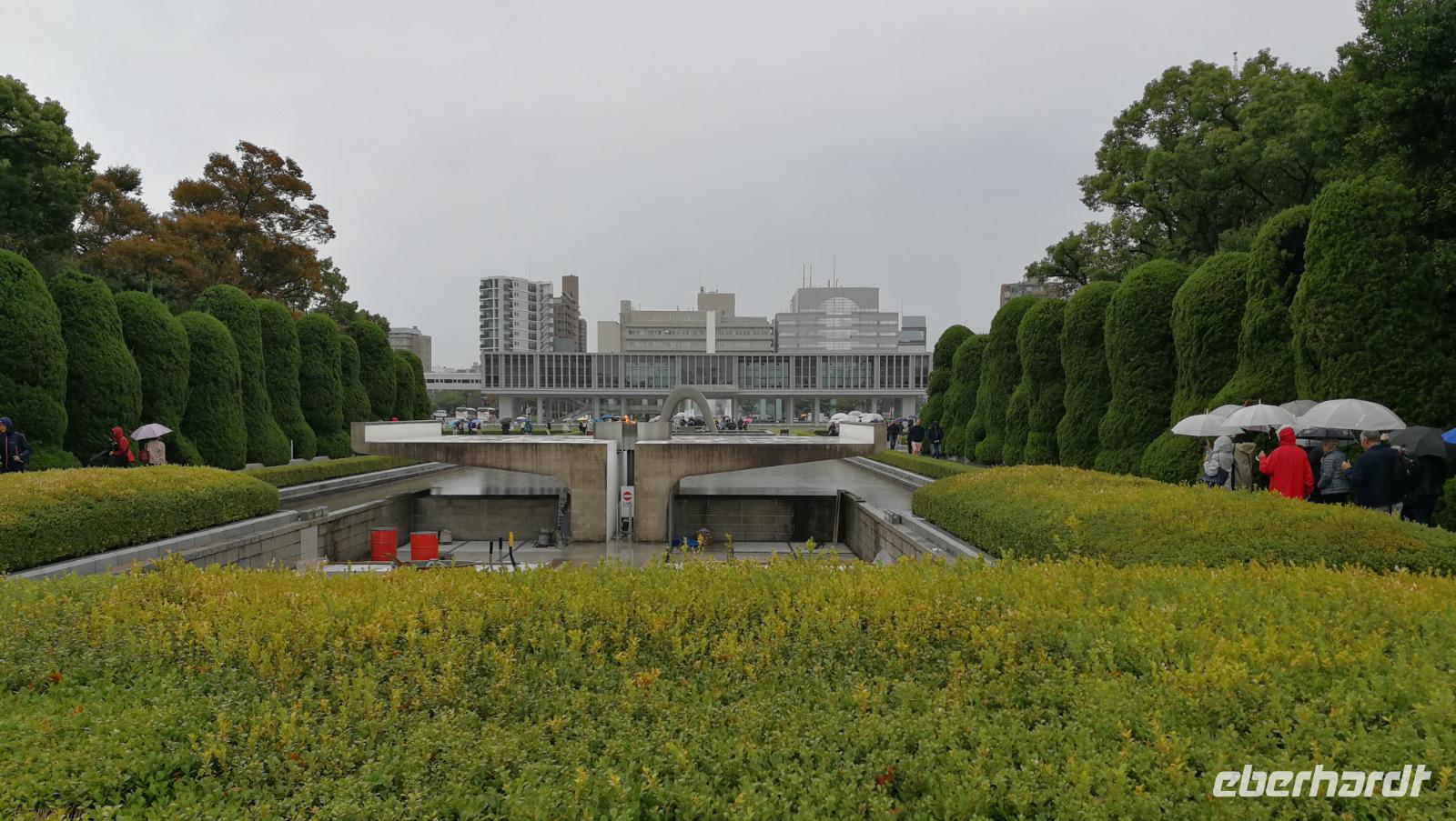 Ganz in der Nähe von Hiroshima liegt ein beeindruckender Schintoistischer Schrein, der durch sein halb im Wasser stehendes rotes Tor weltweit Berühmtheit erlangt hat: der Itsukushima Schrein. Heute besichtigen wir die Insel auf der sich der Schrein befindet und statten dem Weltkulturerbe einen Besuch ab. Dazu können wir mit der Bahn und der Fähre auf die Insel gelangen, wo uns zunächst freilaufende Rehe mit hungrigen und interessierten Augen empfangen. Hier auf der Insel werden die Tiere geduldet und haben sich über die Jahre an die zahlreichen menschlichen Besucher gewöhnt und jegliche Scheu abgelegt. Man kann sie streicheln und mit speziellen Keksen füttern. Unsere Gruppe macht sich nach der Landung auf den Weg zum nahe gelegenen Schrein vorbei an den Tieren und den vielen kleinen Läden die den Straßenrand säumen wo Leckereien und allerlei Souvenirs angeboten werden. Der Schrein selbst ist auf Stelzen in die Bucht gebaut während der Flut sieht es so aus als würde die gesamte Anlage im Wasser schwimmen. Ein bisschen traurig sind wir, als wir bemerken, dass das berühmte rote Tor in der Bucht momentan wegen Renovierungsarbeiten eingerüstet ist und nur schemenhaft zwischen den Abdeckungsplanen zu sehen ist. Doch der Schrein an sich ist beeindruckend für sich alleine und so schlendern wir durch die Gänge und über die Stege während wir Angelikas Ausführungen über den Schinto Glauben sowie die Gebetsriten zuhören. Zur Anlage gehört auch eine der ältesten Bühnen der Welt für das japanische No-Theater, einer besonderen Theaterform, die hier immer noch regelmäßig praktiziert und aufgeführt wird. Wir brechen auf zurück in Richtung Hafen und suchen unterwegs noch eine Kleinigkeit zu Essen, als wir auf die zahlreichen Bäckereien am Wegesrand stoßen, die hier eine besondere Süßigkeit herstellen: kleine aus Teig geformte Ahornblätter mit süßer, cremiger oder deftiger Füllung. Bei einer kleinen Pause probieren wir die verschiedenen Sorten und sind begeistert vom tollen Geschmack. Wir erreichen gut gestärkt den Hafen und fahren zurück nach Hiroshima, wo wir am Nachmittag ankommen. Trotz des einsetzenden Regens gehen wir nochmals über die Parkanlagen des Friedensparks und bestaunen ehrfürchtig die Denkmäler, die die Geschichte des Atombombenabwurfs nacherzählen. Abschließend besuchen wir auch das Friedensmuseum, das sich diesem Thema widmet und zahlreiche Geschichten von den Opfern des damaligen Ereignisses aufzeigt. Hier kann sich jeder so viel Zeit nehmen wie er möchte bevor sich die Gruppe am Abend erneut im Hotel trifft und sich gemeinsam auf den Weg macht zum Abendessen, wo die Eindrücke des Tages besprochen werden.