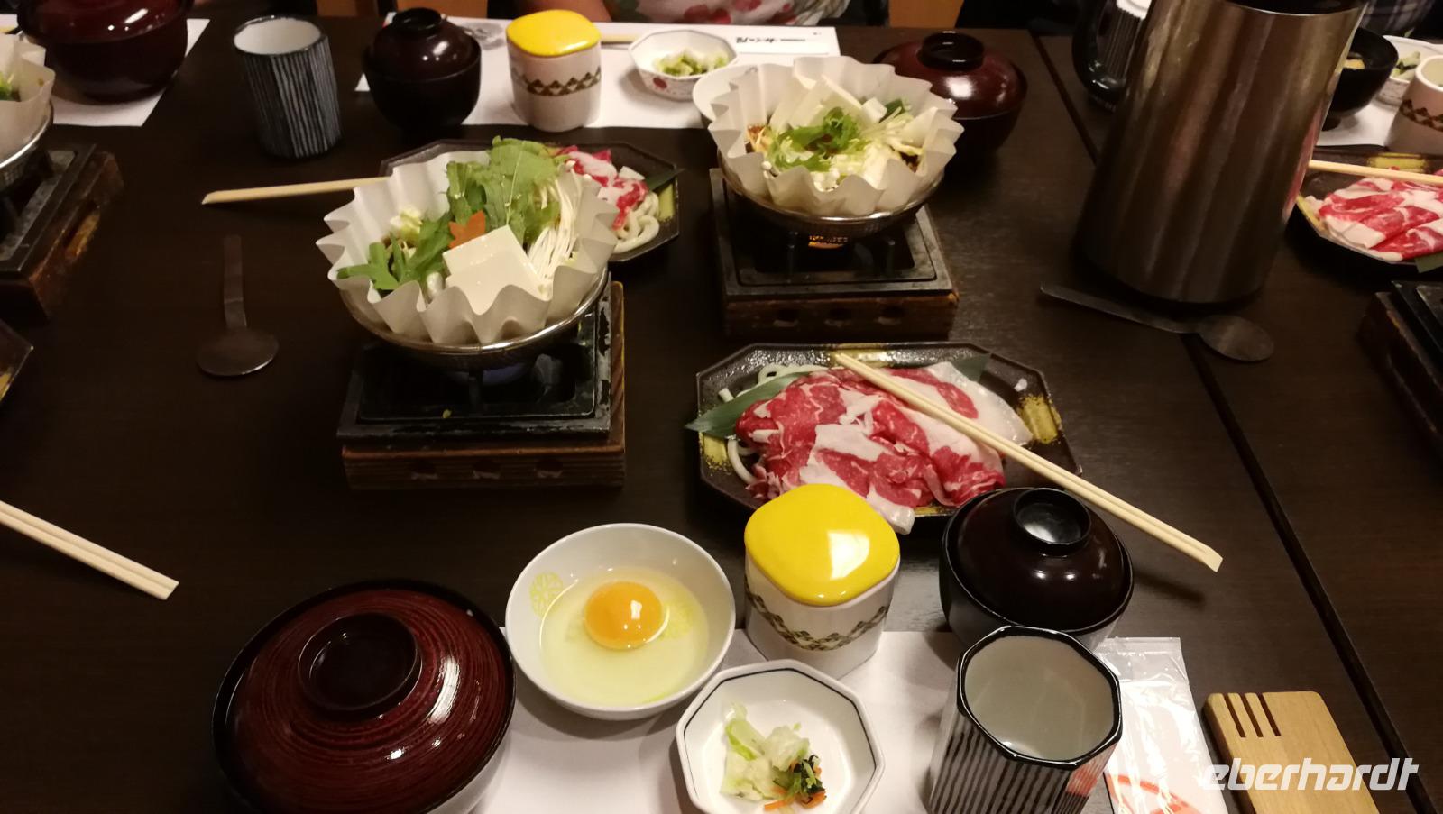 Heute verlassen wir Hiroshima und brechen auf in Richtung Himeji wo wir die Burg des weißen Kranichs besichtigen wollen. Dazu treffen wir uns in der Früh vorm Hotel und fahren mit dem Shinkansen nach Himeji, wo wir gegen 10 Uhr ankommen. Die Burg ist vom Bahnhof aus direkt zu erkennen und nach einem gemütlichen Spaziergang erreichen wir die Burg keine 30 Minuten später. Ein majestätischer Anblick bietet sich unserer Reisegruppe - das Weis der Burgmauern strahlt wie beim ersten Tag und der imposante Bau überragt die umliegende Park- und Burganlage ehrergiebig. Die Gruppe macht sich auf die Burg zu erklimmen und über zahlreiche beeindruckende Nebenhöfe und vorgelagerte Zwischenstufen haben wir unser Ziel das Innere der Burg dann schlussendlich erreicht. Wir tauchten ein in die Welt der japanischen Shogune und Militärherrscher, die mit den Burgen Ihre Machtpositionen untermauerten und sich in jahrhunderte langen Kriegen um die Vorherrschaft über Japan stritten. Zurück am Bahnhof fuhren wir mit unserem Gepäck nach Kyoto, die alte Hauptstadt des japanischen Kaiserreiches und später der militärischen Herrscher der Shogune. Wir kommen erneut bei starkem Regen an, sodass wir uns dazu entschließen den Ausläufern des Taifuns zu entgehen und keinen Spaziergang durch die Straßen mehr machen. Am Abend treffen wir uns erneut zum gemeinsamen Essen und genießen Sukiyaki - die japanische Variante des Eintopfs wo wir nach unseren Wünschen Gemüse, Fleisch und Pilze im Sud kochen und zusammen mit Reis und Suppe verzehren.