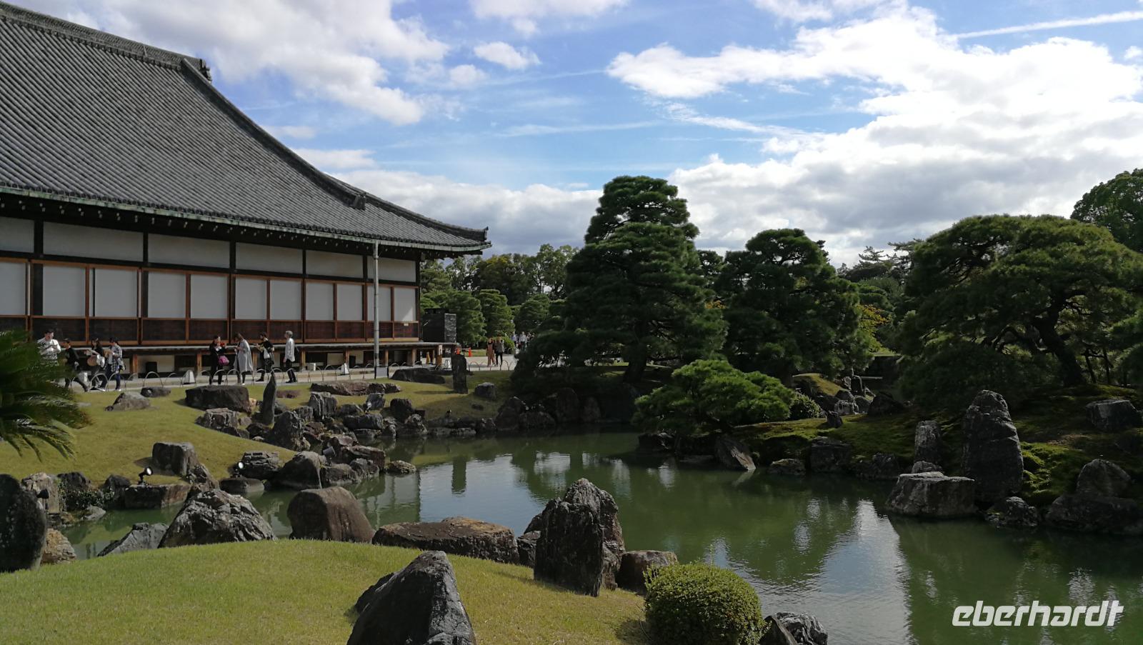 Unsere Gruppe trifft sich heute zur Besichtigung der alten japanischen Hauptstadt Kyoto. Zahlreiche Kunstschätze und historische Bauten machen diese Stadt zu einem besonderen Erlebnis. SO besonders sogar, dass die Stadt im zweiten Weltkrieg von den Amerikanern weitestgehend verschont blieb, weil diese um die kulturelle und historische Bedeutung der Stadt wussten und sie nicht zerstören wollten. Mit unseren Transferfahrzeugen bewegen wir uns heute durch die Stadt und machen zum ersten Mal am Ryoanji Tempel halt. Dieser Tempel aus dem Mittelalter besticht durch seine erstaunlichen Gartenanlagen. So wurde um das Hauptgebäude eine beschauliche kleine Anlage um einen pittoresken Teich angelegt - das richtige Kunstwerk befindet sich jedoch im Inneren des Heiligtums: ein minutiös angelegter Zen Steingarten. Auf einem Beet aus fein gerechtem Kies liegen in genauestens geplanter Anordnung verschieden große Steinfelsen. Die Schlichtheit und Ruhe der Anordnung lädt zur Besinnung und Meditation ein und dient als Vorbild für Zen Gärten auf der ganzen Welt. Von Schlichtheit und Bescheidenheit ist man im buddhistischen Kinkakuji weit entfernt. Der nächste Stopp unserer Stadtrundfahrt befindet sich nur wenige Meter vom Ryoanji Tempel entfernt und ist ebenfalls ein Tempel - jedoch ist hier das Hauptmerkmal prunkvoll und sofort zu erblicken. Das Gebäude des Tempels ist nämlich mit Gold verkleidet und bietet durch die Gestaltung der Anlage an einem Teich mit umliegenden Gärten einen beeindruckenden Anblick. Wir schlendern durch die Parkanlage die den Tempel umrundet und treffen uns wieder bei unseren Transferfahrzeugen. Unsere Tour führt uns zum weltlichen Zentrum der Kaiser- und Shogunzeit der Nijo-Jo Burganlage. Die Anlage diente ziemlich schnell nach der Vereinigung Japans rein repräsentativen Zwecken und so wurden hier kunstvolle Elemente eingearbeitet, die die Macht und den Reichtum des Herrscherhauses verdeutlichen sollten. Angefangen beim kunstvoll ausgearbeiteten Eingangstor mit gold verzierten Giebeln bis hin zu den aufwendig bemalten Papierwänden der einzelnen Räume die jeweils einem naturnahen Thema gewidmet sind. Die Räume wurden zum Empfang der einzelnen Lehnsherren und Vasallen genutzt und erfüllten die Funktion die Macht des Kaisers und später des Shoguns optisch zu untermauern. Wir schlendern auf der Suche nach einem guten Restaurant über den pulsierenden Straßenmarkt in Kyoto, wo wir auch alsbald fündig werden und lassen den Tag danach gemütlich ausklingen.